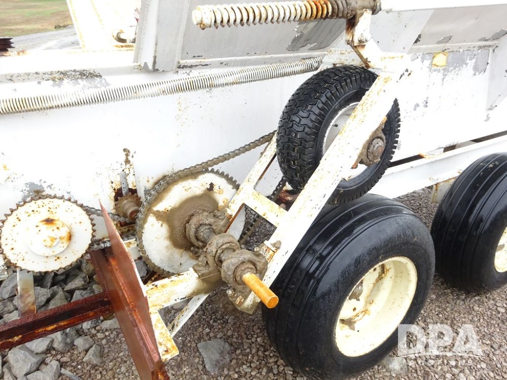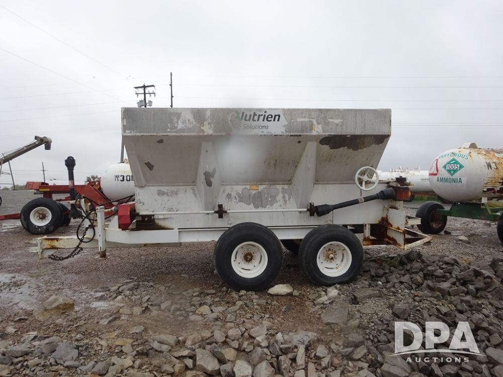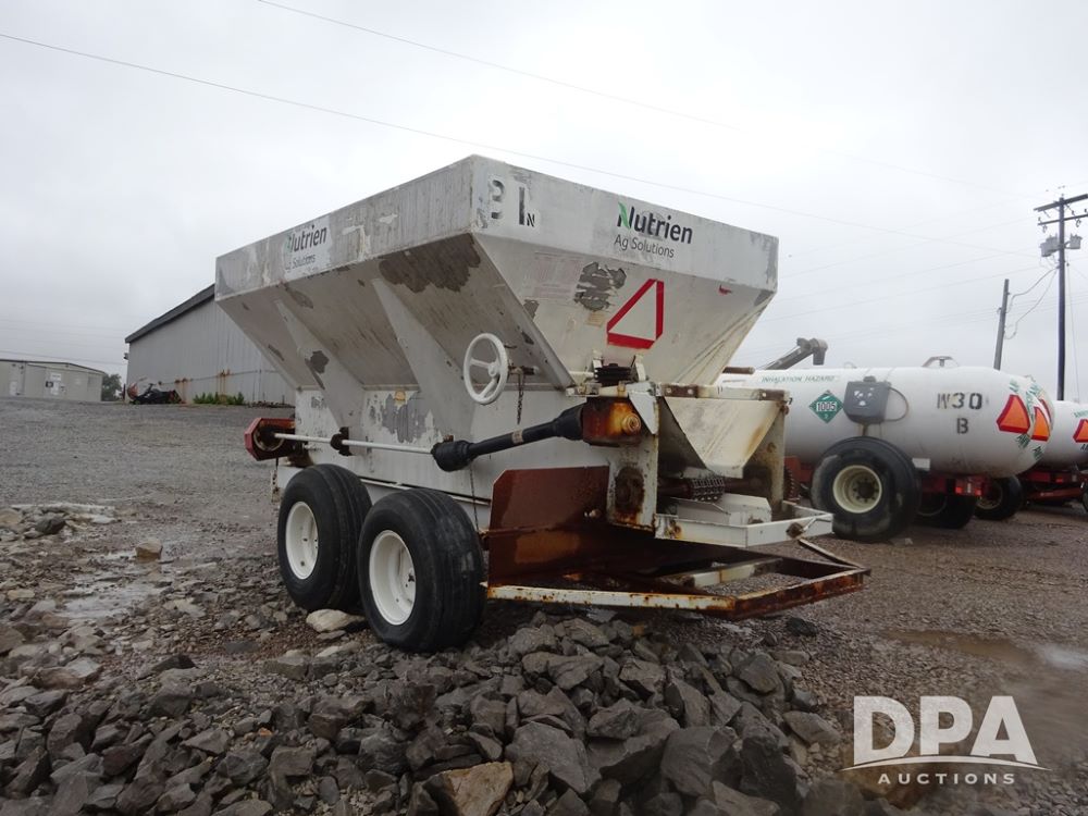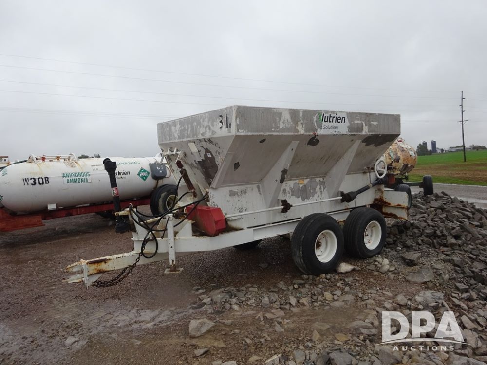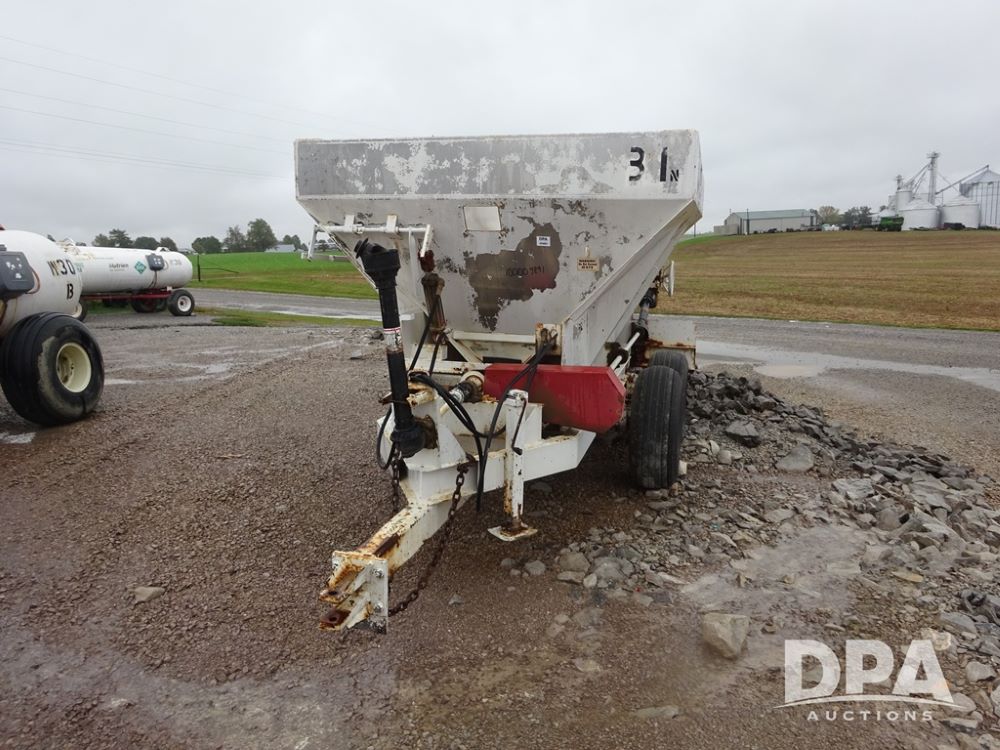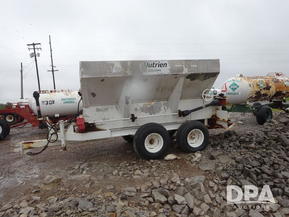 Dry Spreader (PZ14011, Unit 100009891, #W31), 5 ton stainless steel dry spreader, no spinners, PTO, tandem axle, 11L-15 flotation tires.
