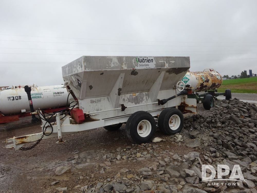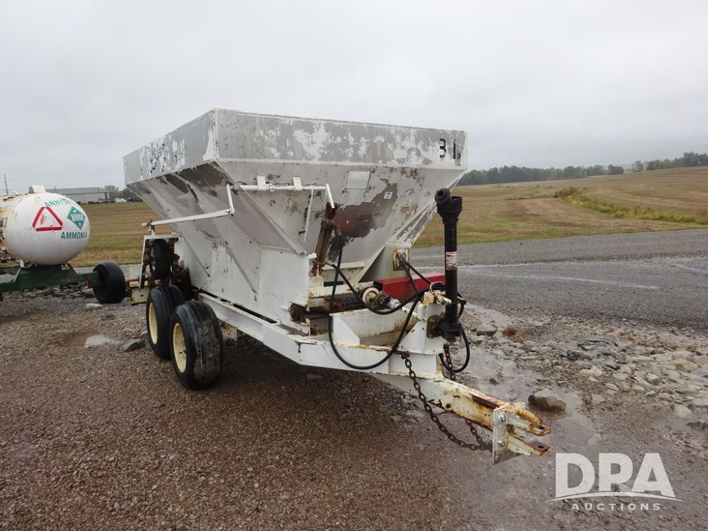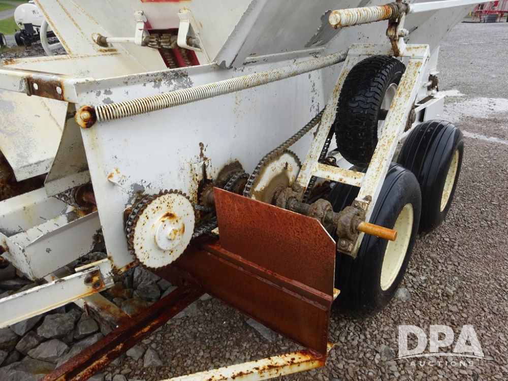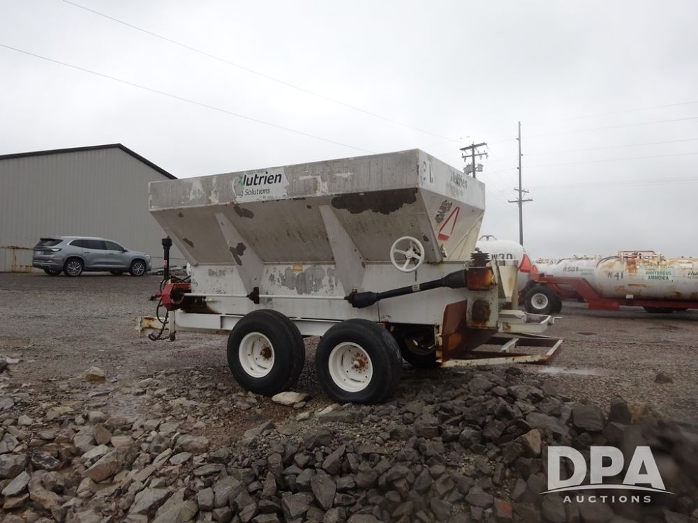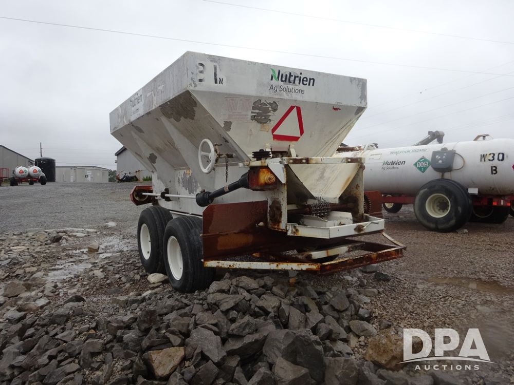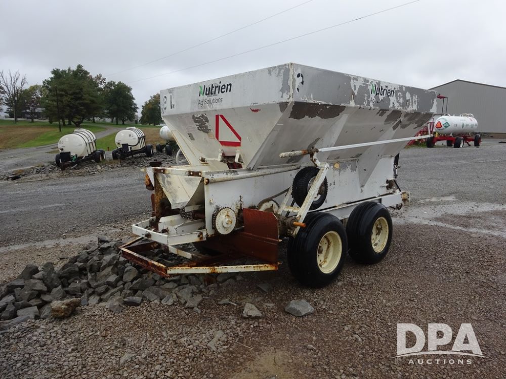 Dry Spreader (PZ14011, Unit 100009891, #W31), 5 ton stainless steel dry spreader, no spinners, PTO, tandem axle, 11L-15 flotation tires.