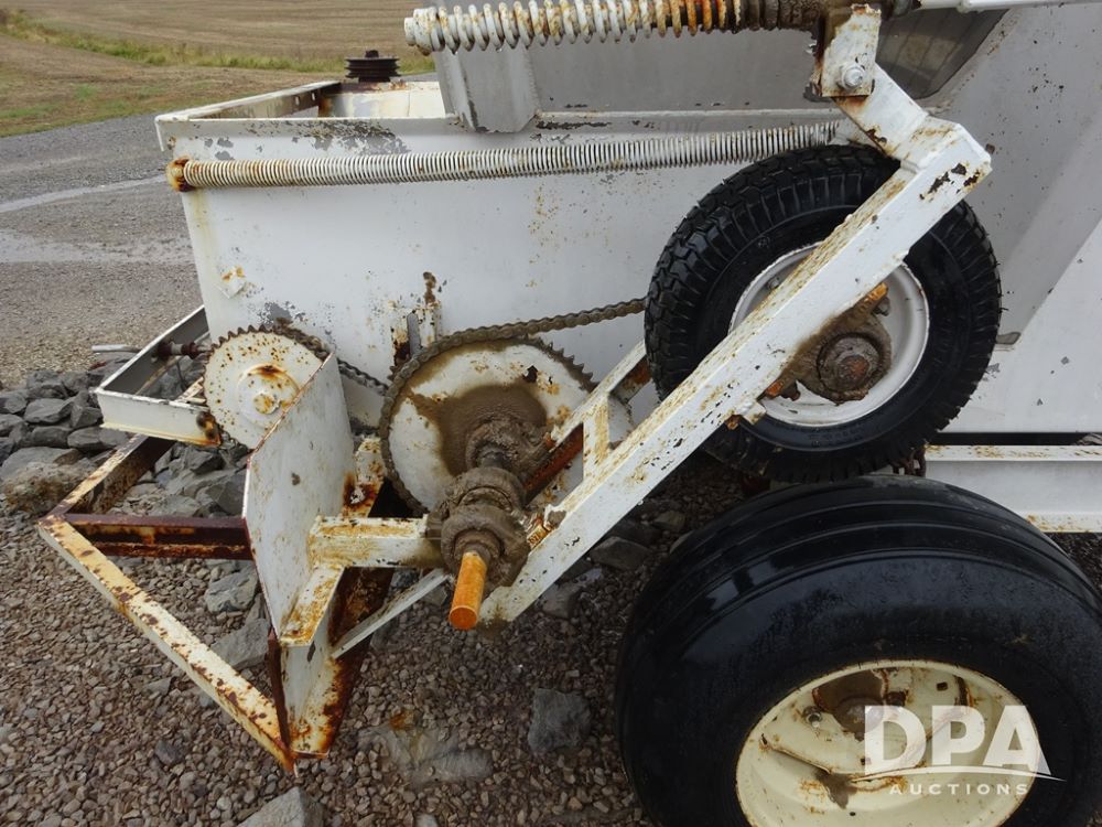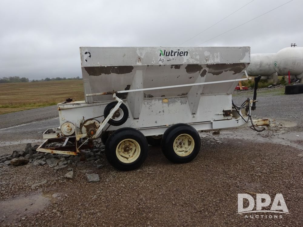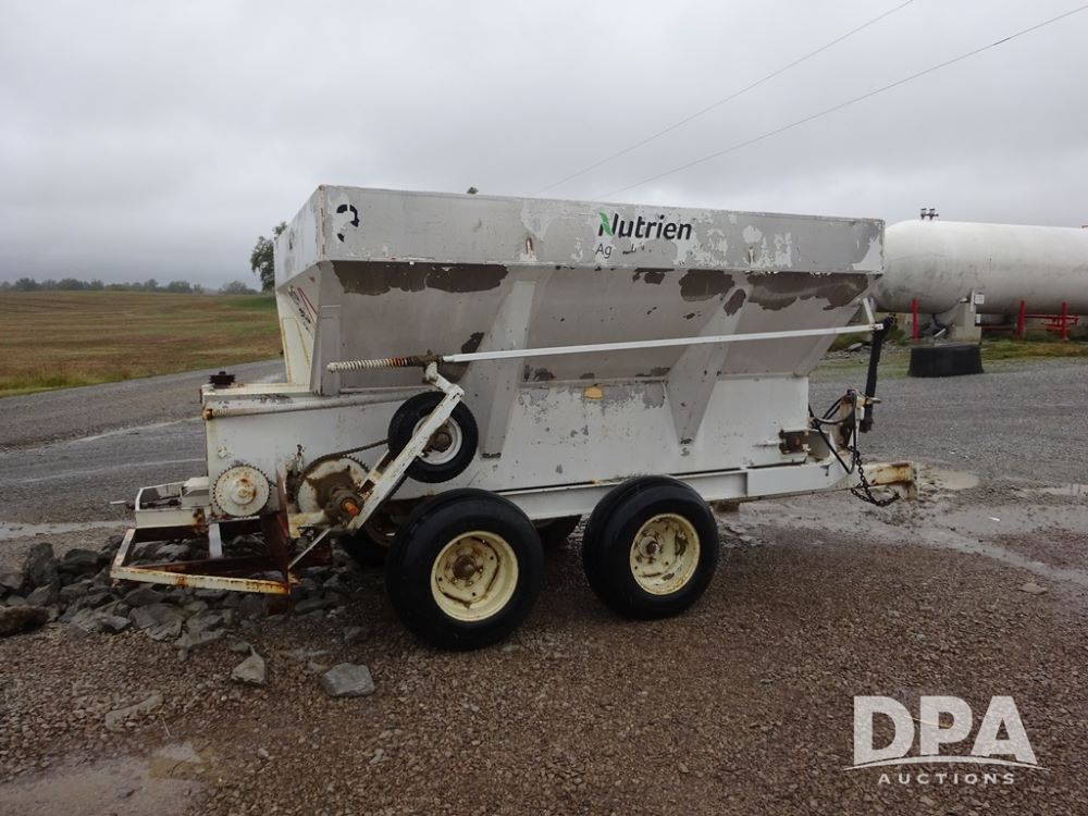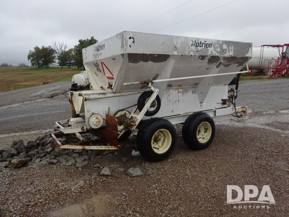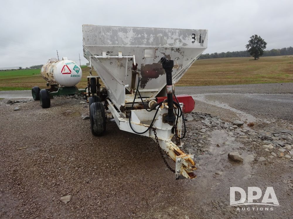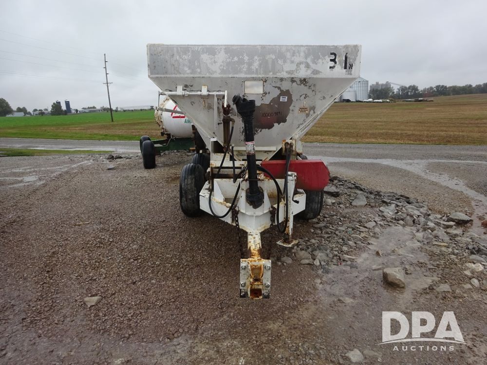 Dry Spreader (PZ14011, Unit 100009891, #W31), 5 ton stainless steel dry spreader, no spinners, PTO, tandem axle, 11L-15 flotation tires.