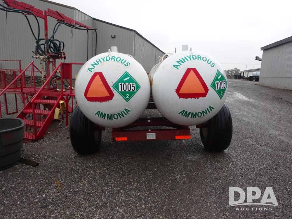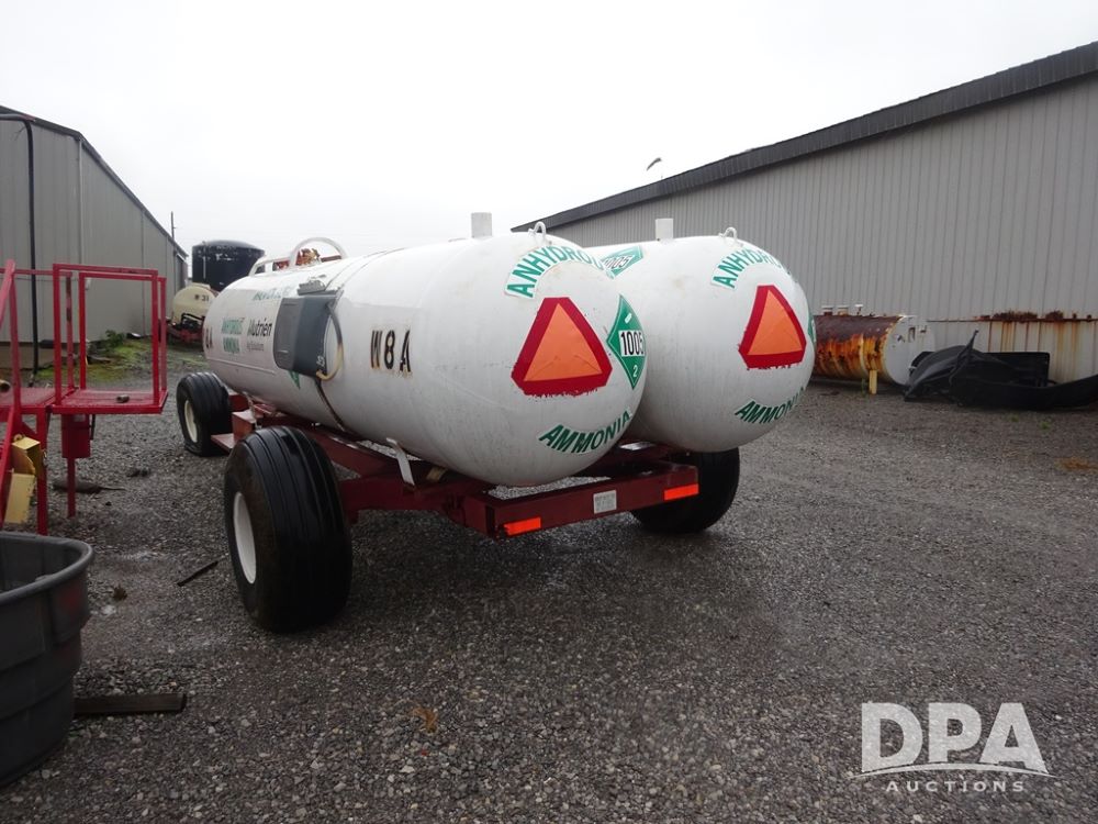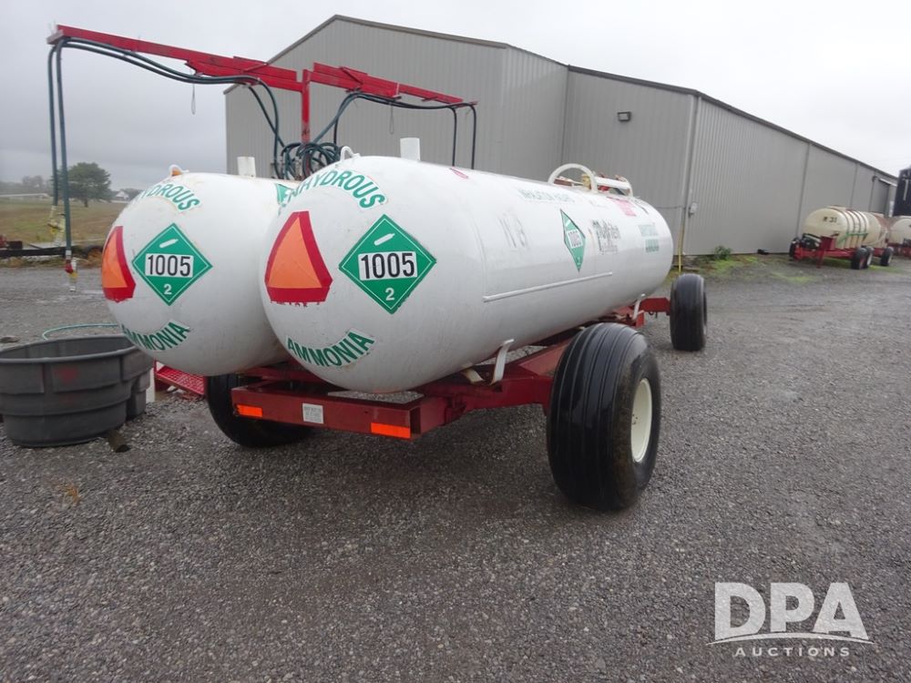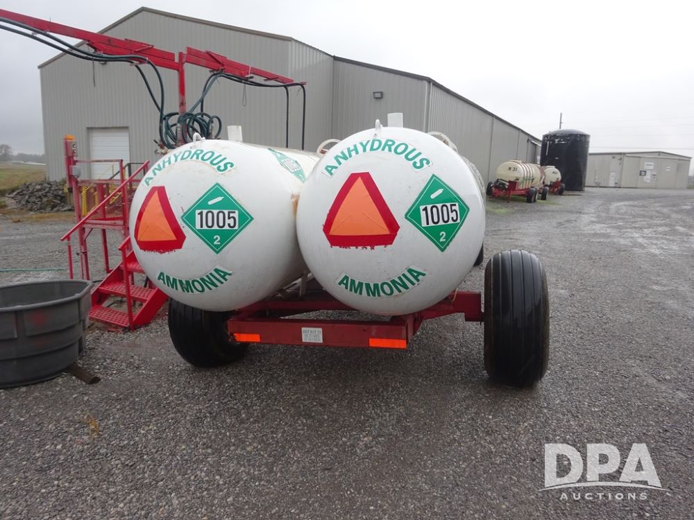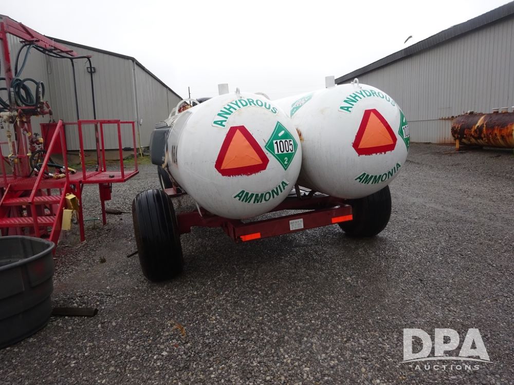 Double NH3 Nurse Tanks (PZ14012, Unit 54337, Tank W8), Double 1000 gallon NH3 nurse tanks, top front fill, no data plates, VTP 1-19, Dalton WNDT 1000 5th wheel running gear, side step, 16.5L-16.1SL flotation tires.