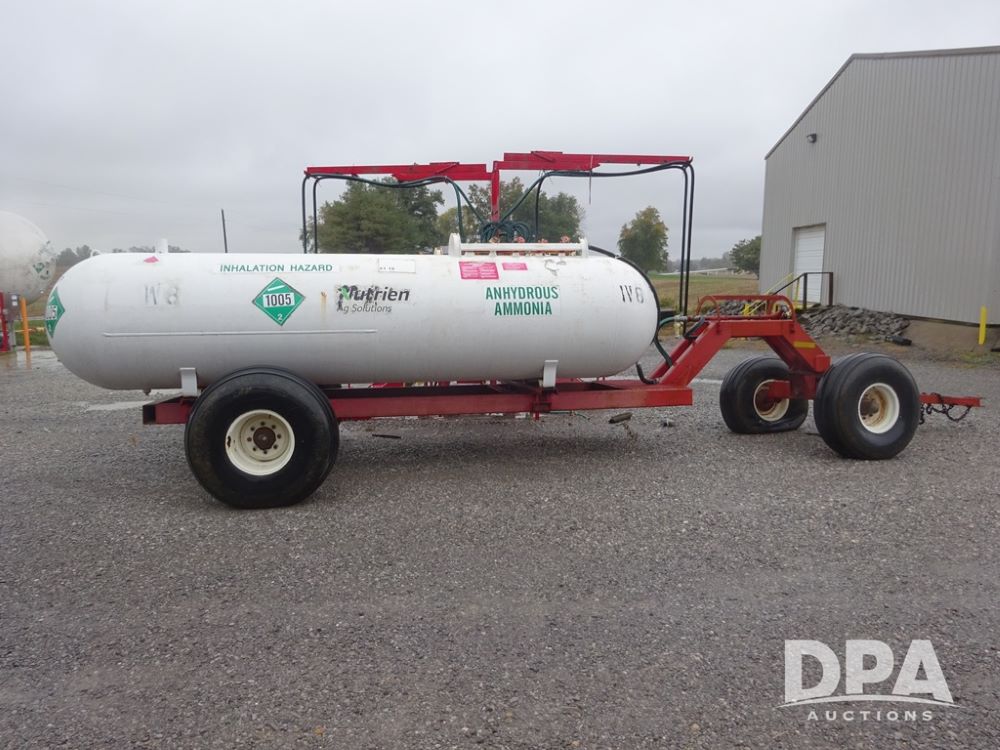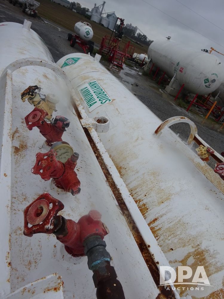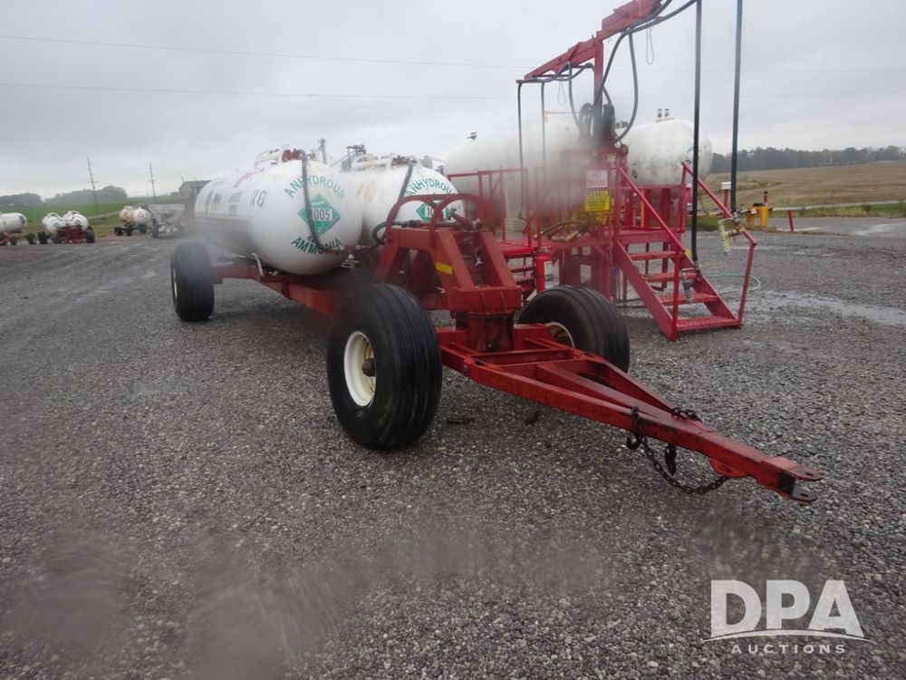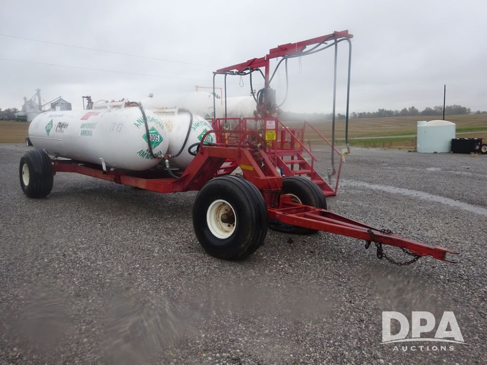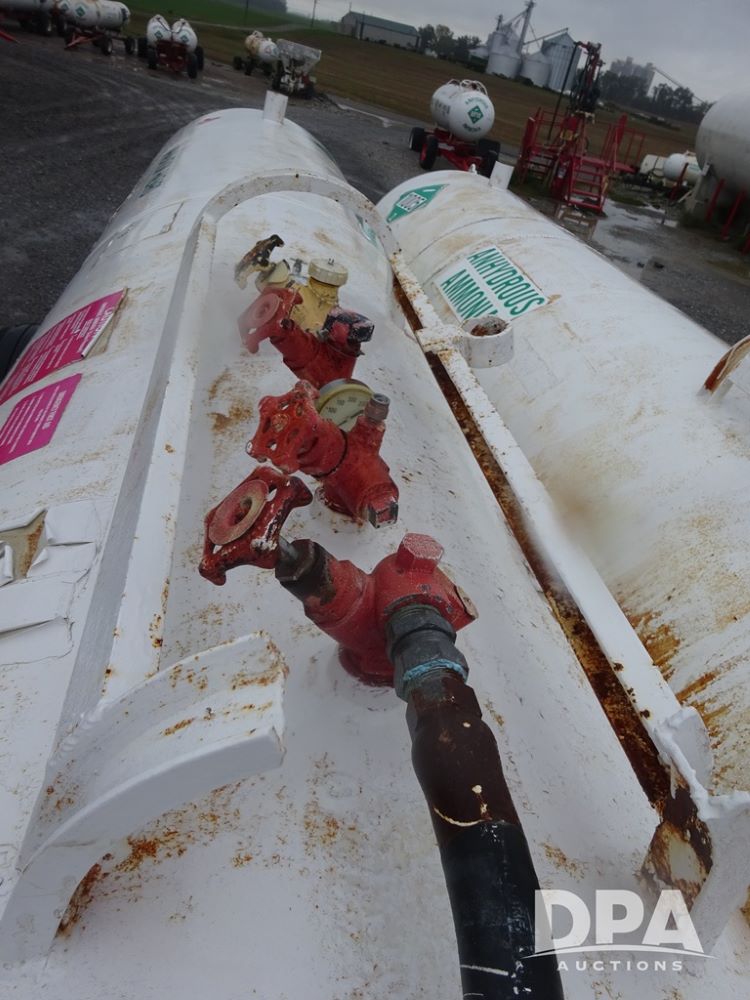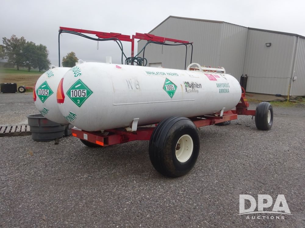 Double NH3 Nurse Tanks (PZ14012, Unit 54337, Tank W8), Double 1000 gallon NH3 nurse tanks, top front fill, no data plates, VTP 1-19, Dalton WNDT 1000 5th wheel running gear, side step, 16.5L-16.1SL flotation tires.
