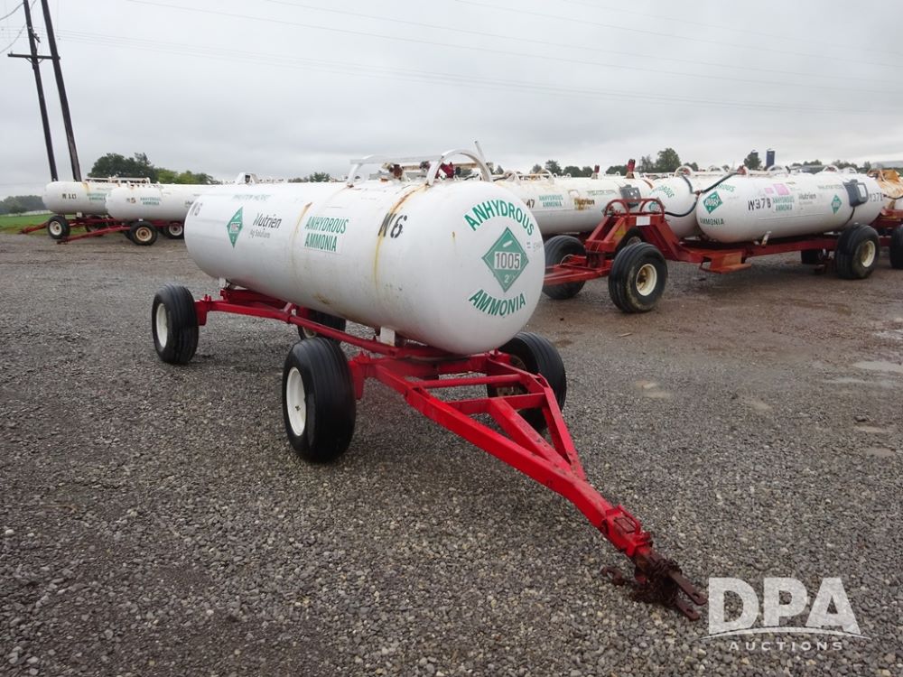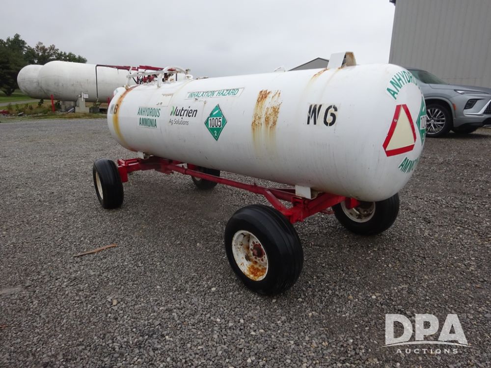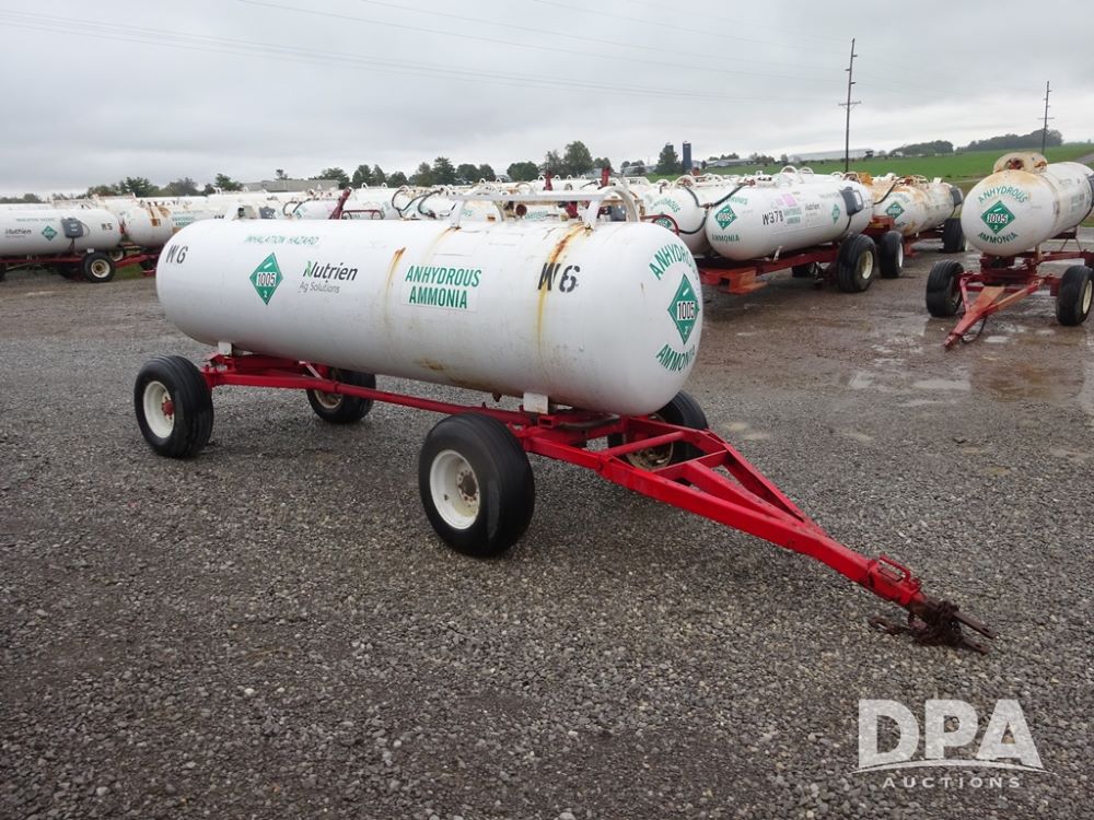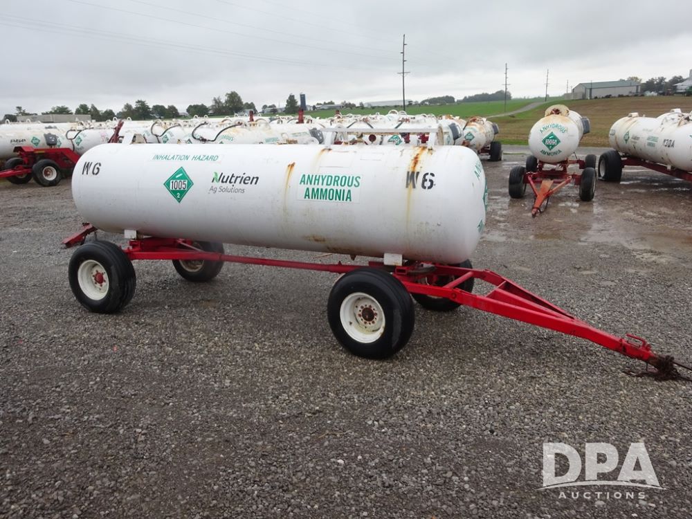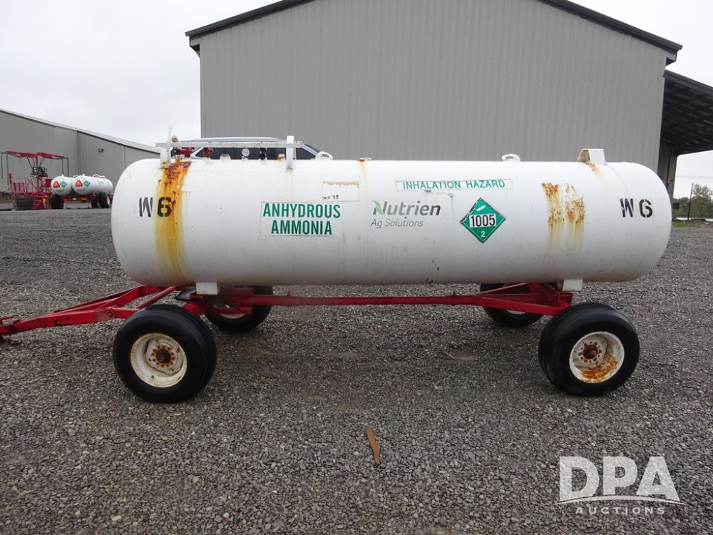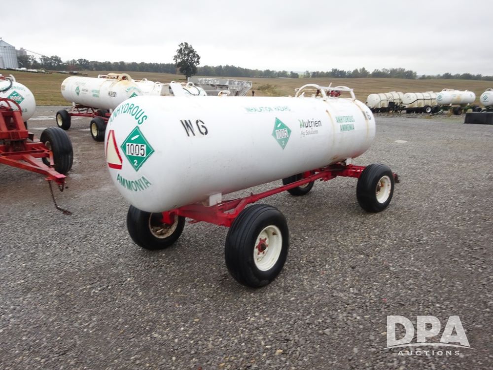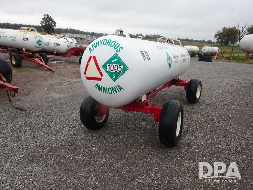 NH3 Nurse Tank (PZ14017, Unit 54353, Tank W6), 1000 gallon NH3 nurse tank, top front fill, data plate, VTP 1-19, 5th wheel adjustable running gear, 11L-15 flotation tires.