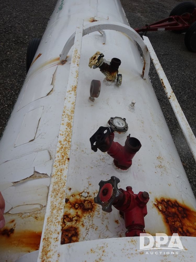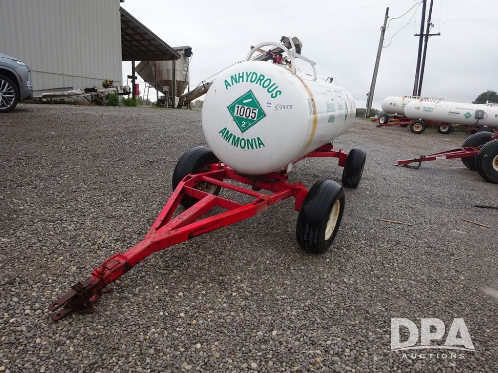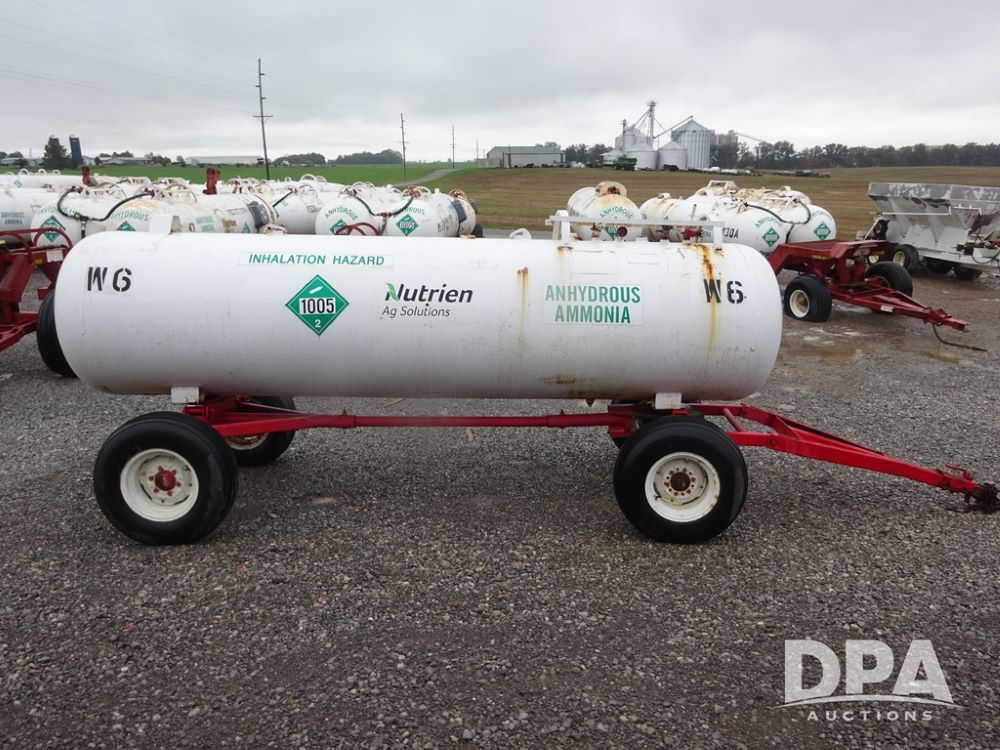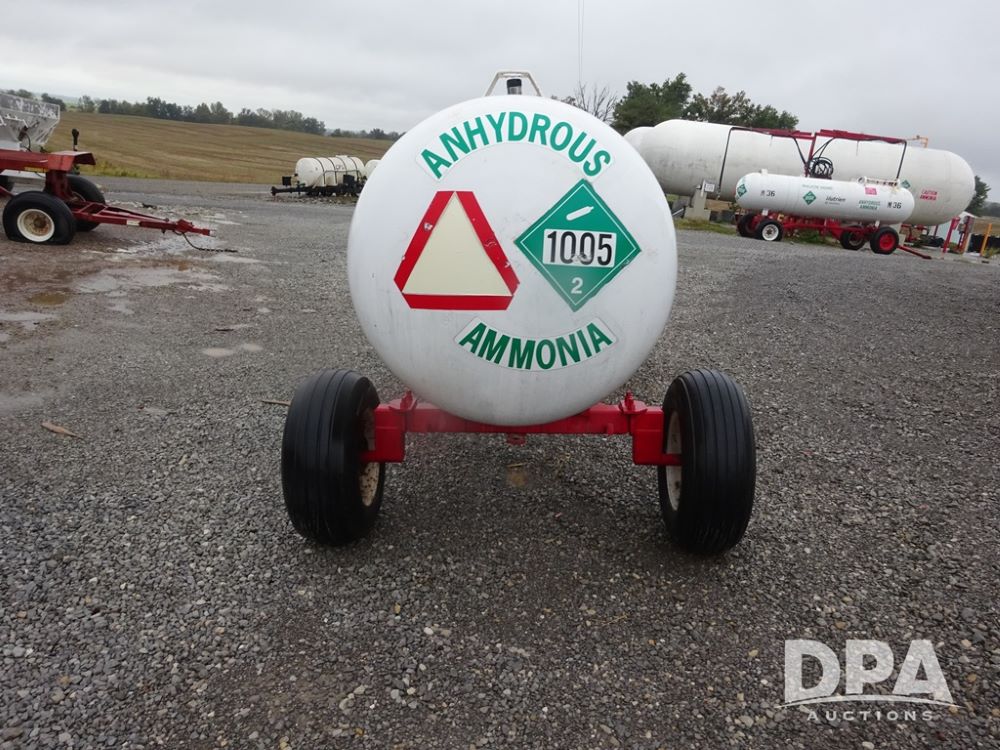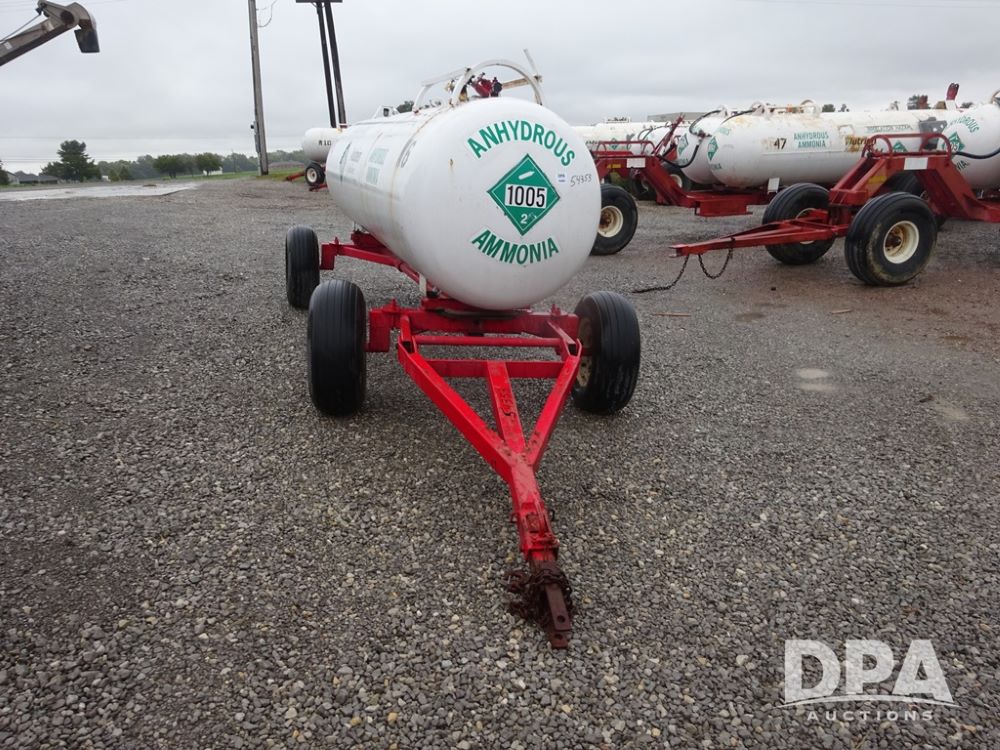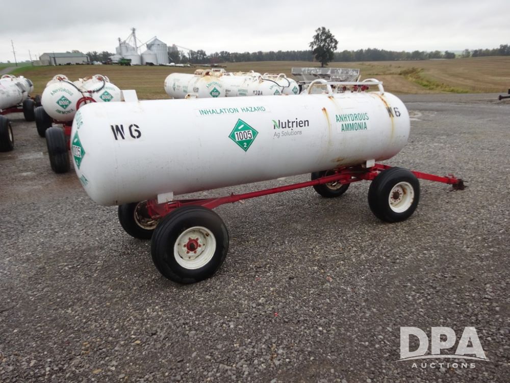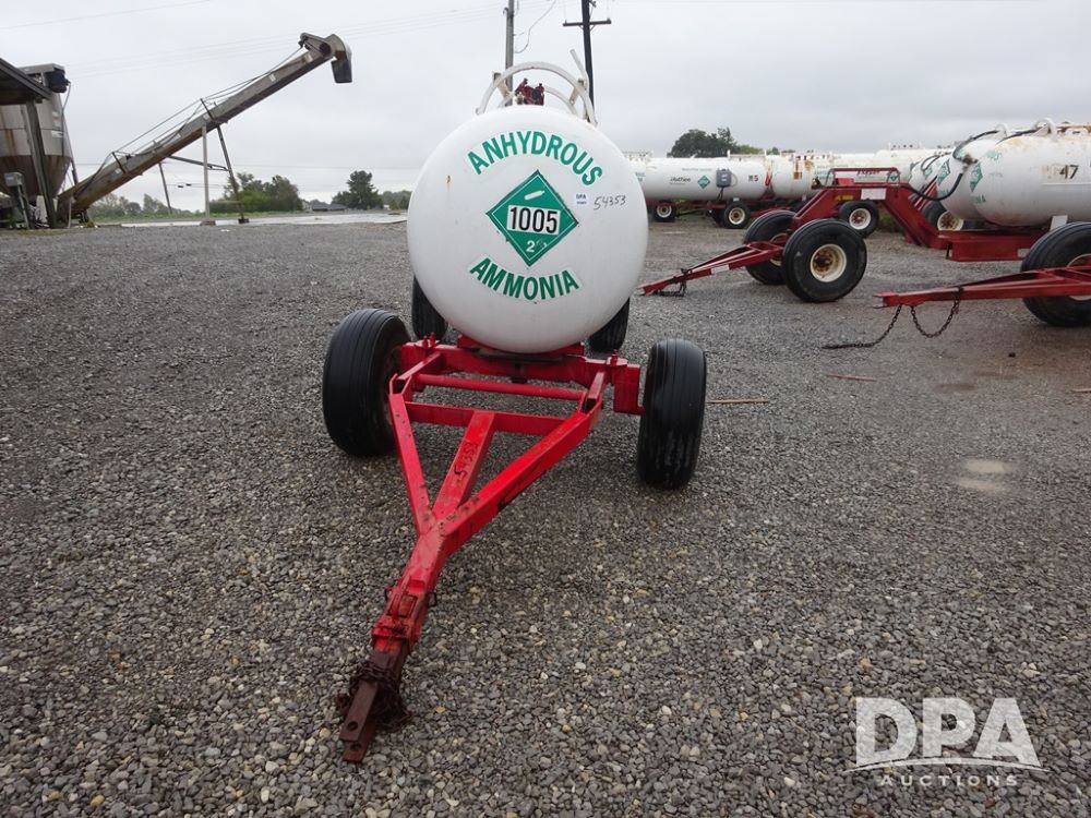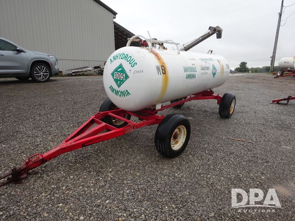 NH3 Nurse Tank (PZ14017, Unit 54353, Tank W6), 1000 gallon NH3 nurse tank, top front fill, data plate, VTP 1-19, 5th wheel adjustable running gear, 11L-15 flotation tires.