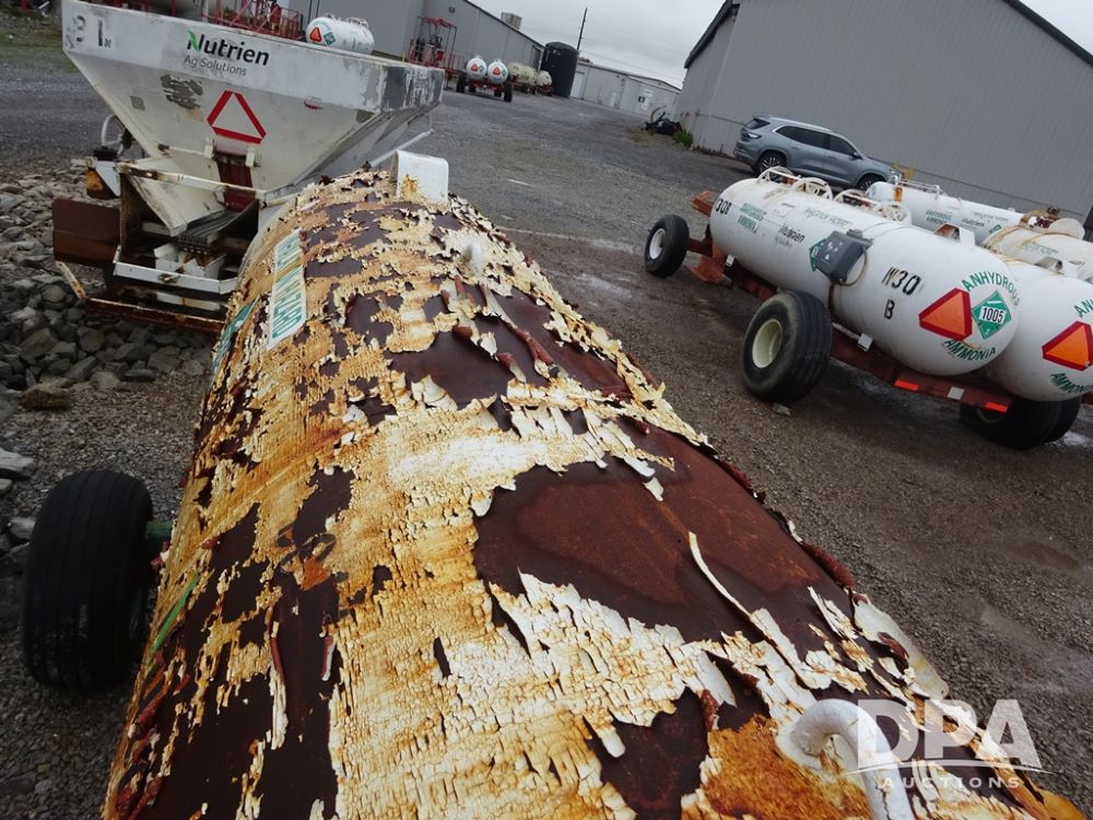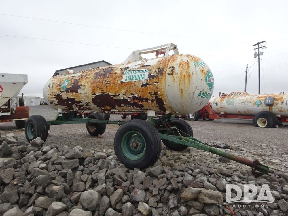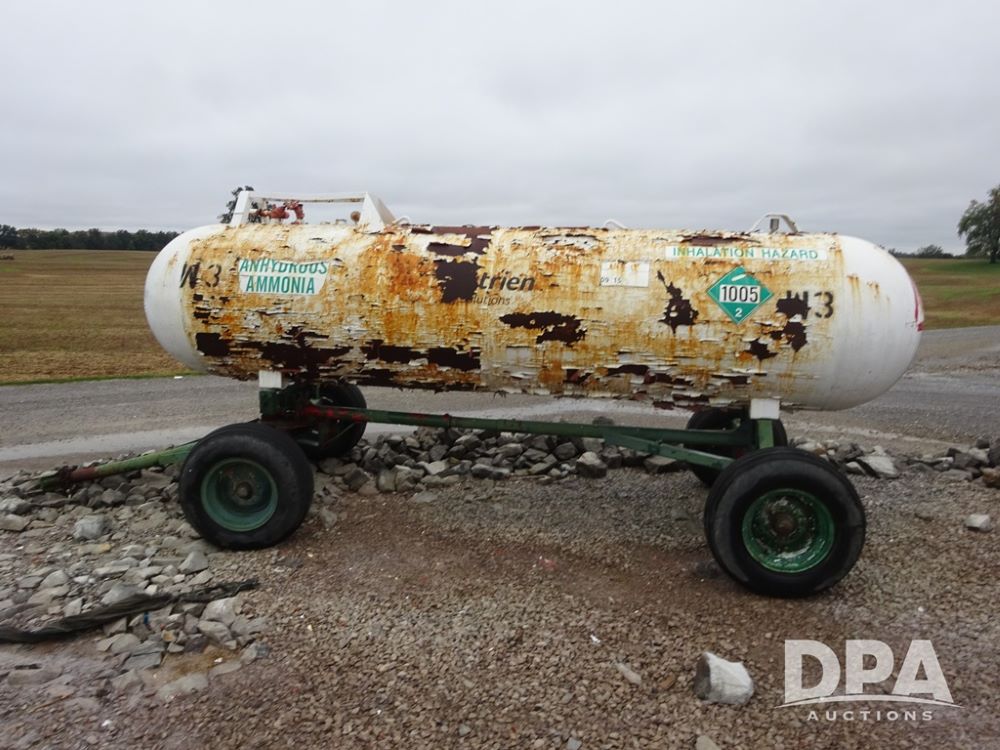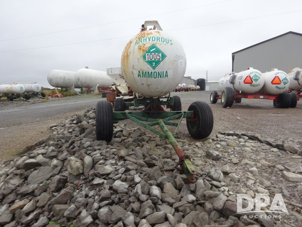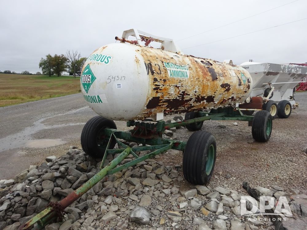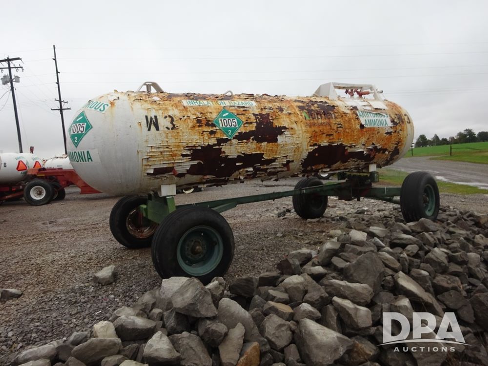 NH3 Nurse Tank (PZ14018, Unit 54317, Tank W3), 1000 gallon NH3 nurse tank, top front fill, data plate, VTP 9-15, 5th wheel running gear, 11L-15 flotation tires.