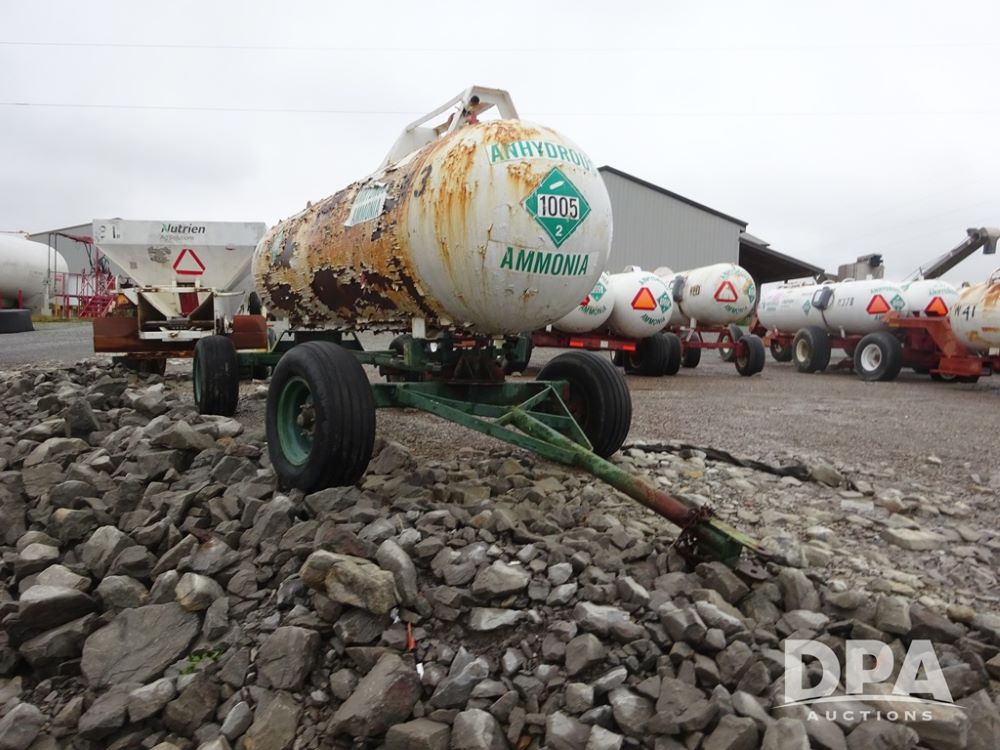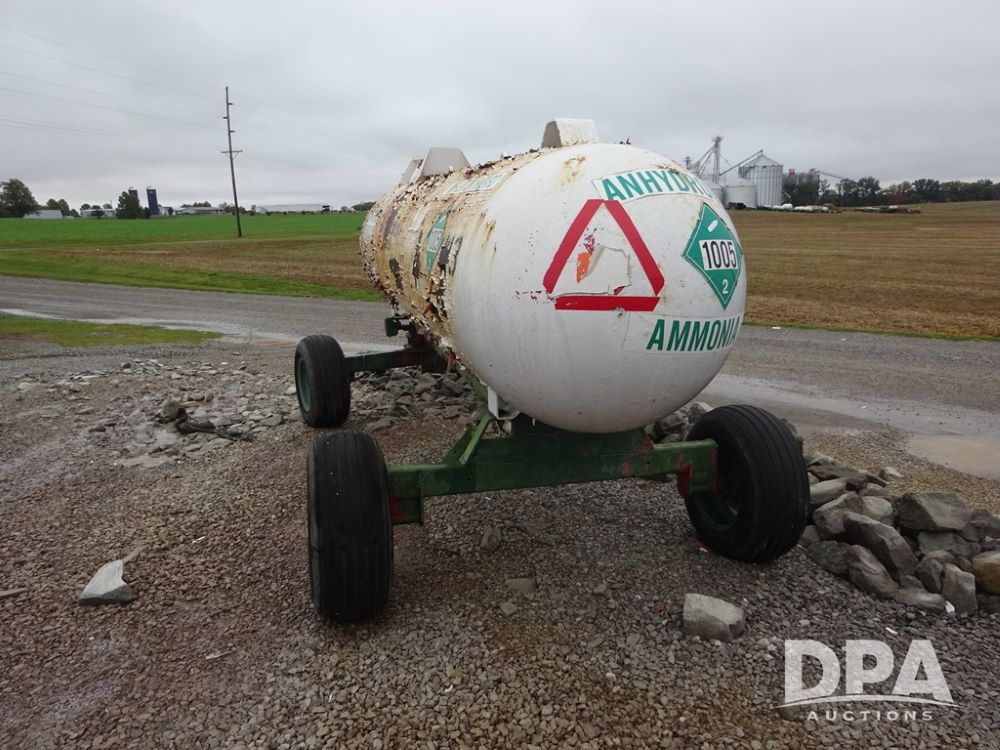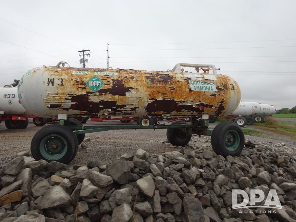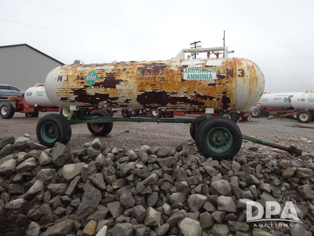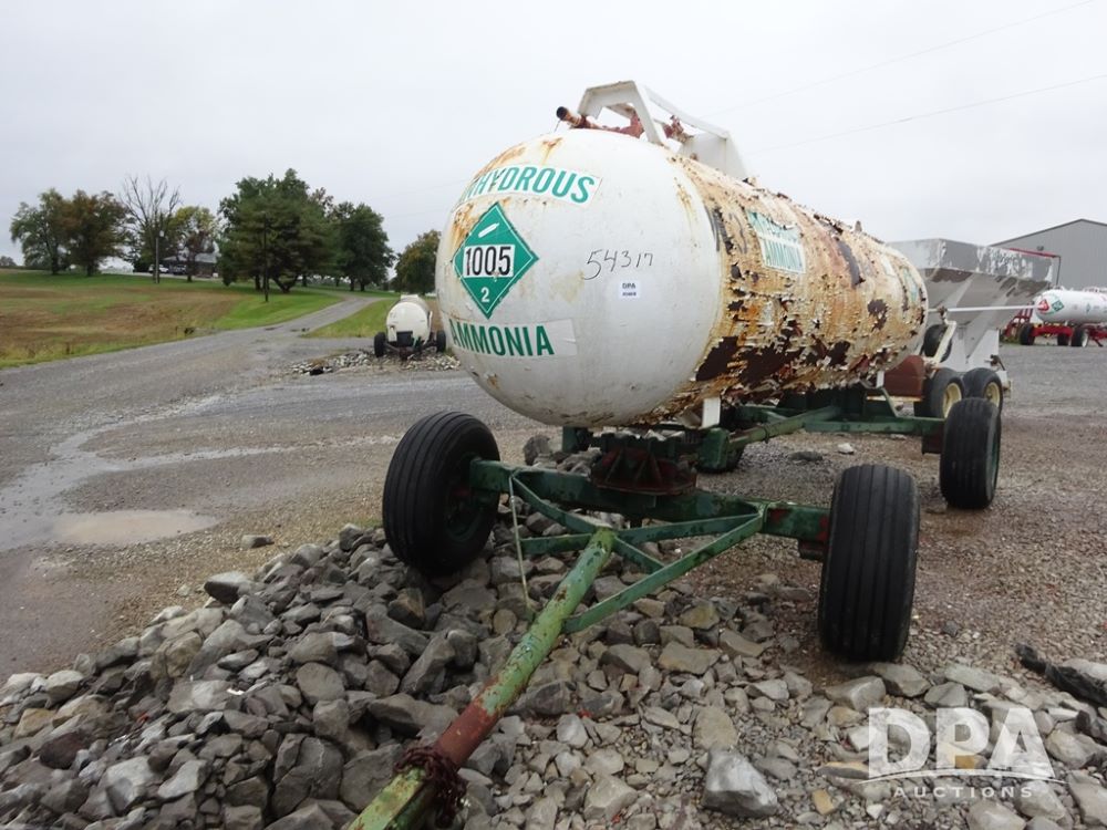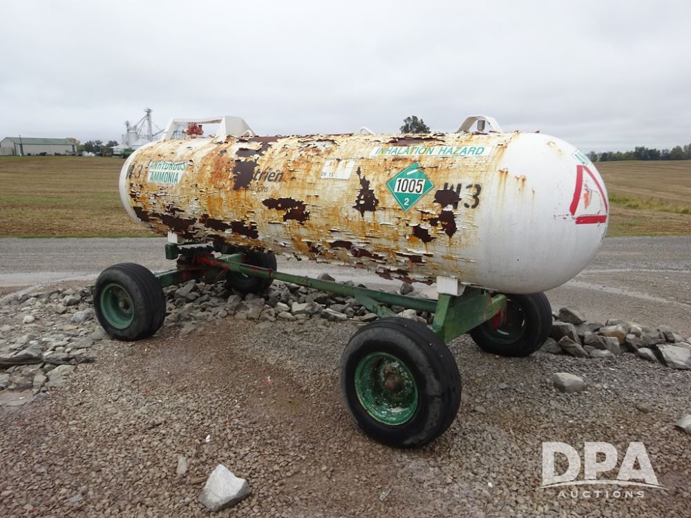 NH3 Nurse Tank (PZ14018, Unit 54317, Tank W3), 1000 gallon NH3 nurse tank, top front fill, data plate, VTP 9-15, 5th wheel running gear, 11L-15 flotation tires.