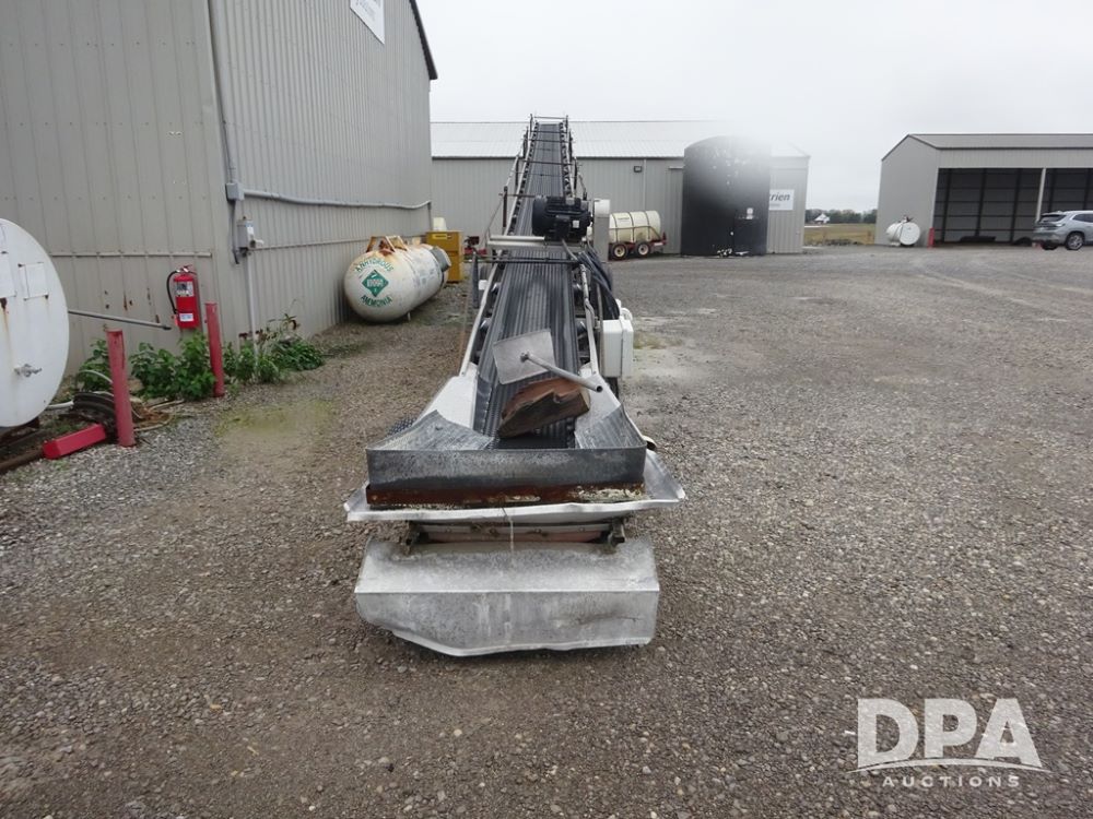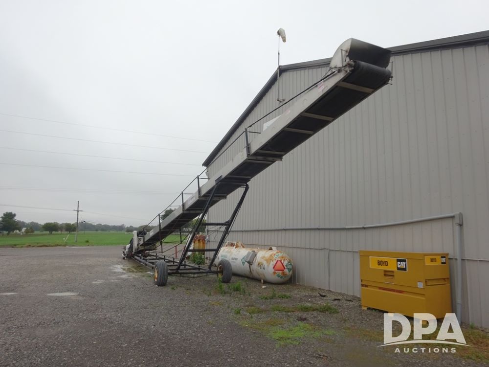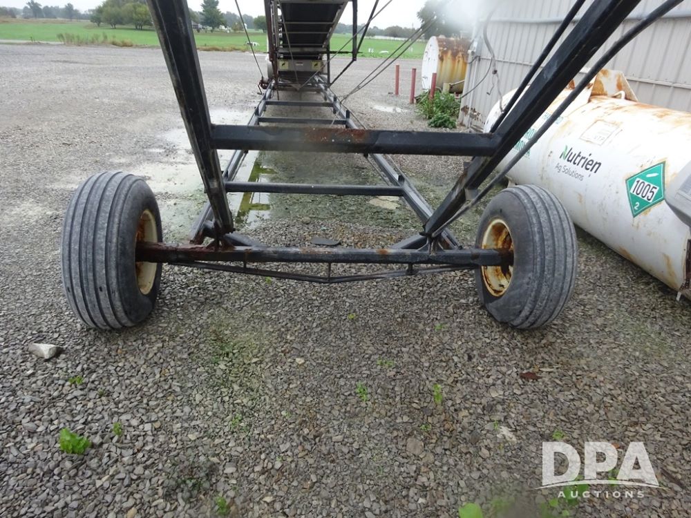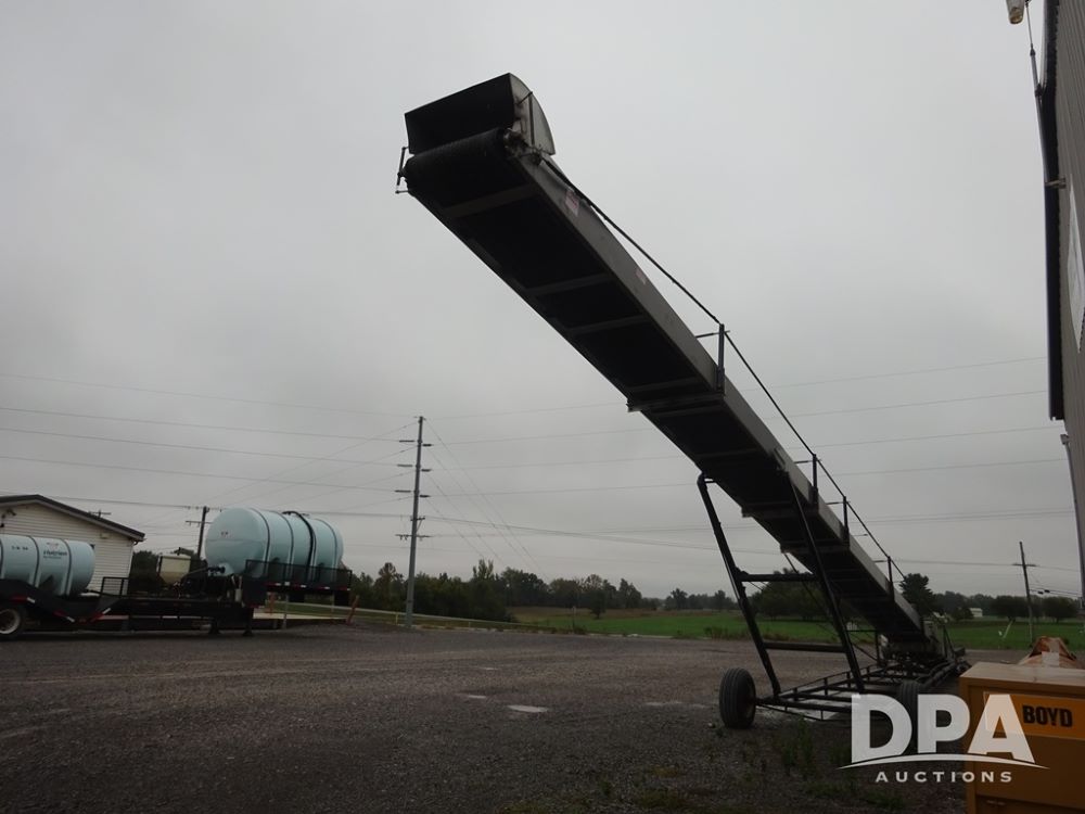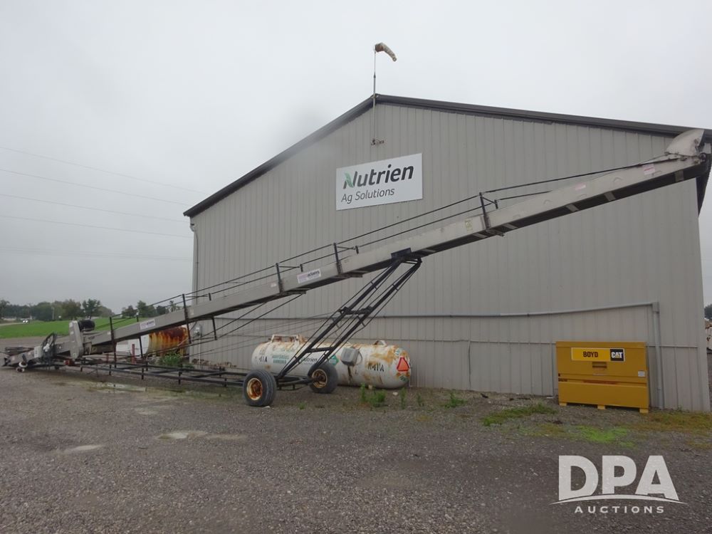 Adams Dry Fertilizer Conveyor (PZ14050, Unit 101993), Adams model PORT 24-65-6019 stainless steel belt conveyor, Baldor 15 hp electric motor, cord, control box, portable, 11L-15 flotation tires.