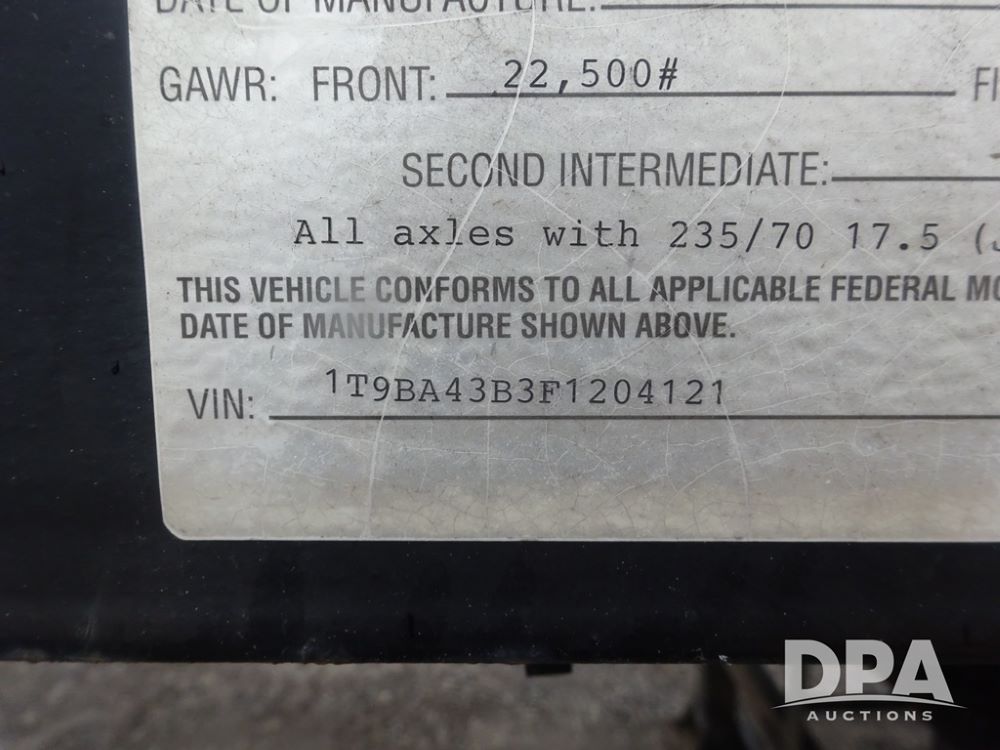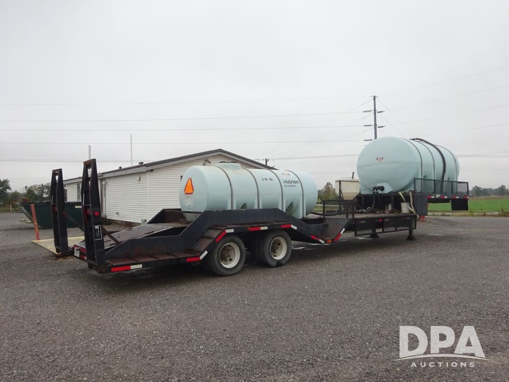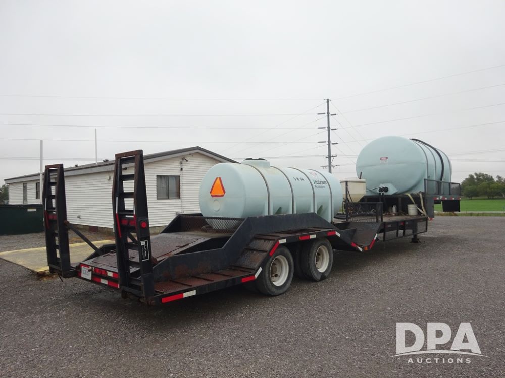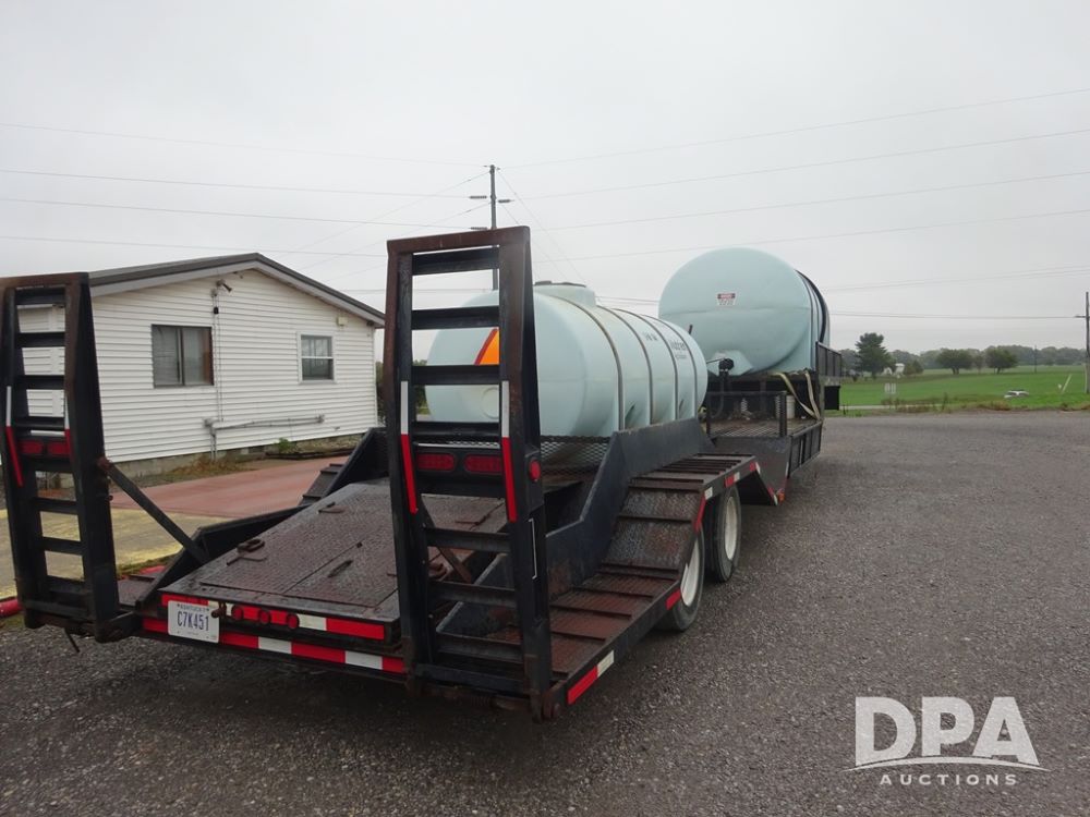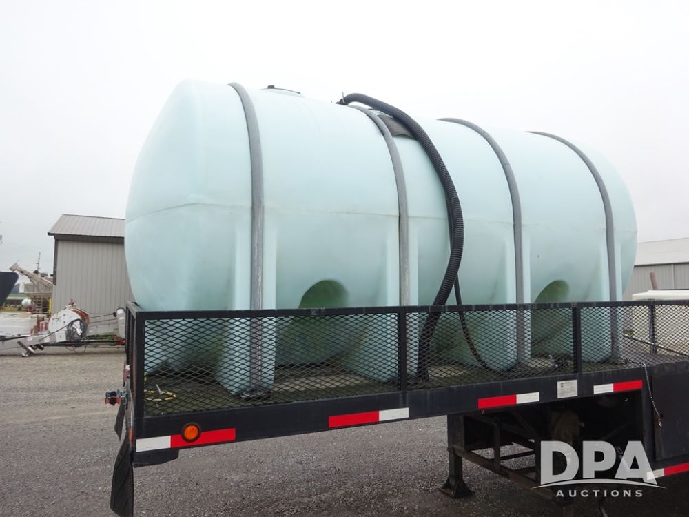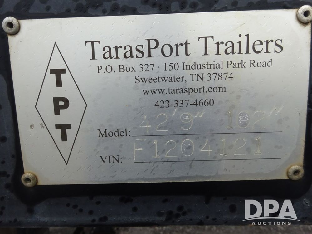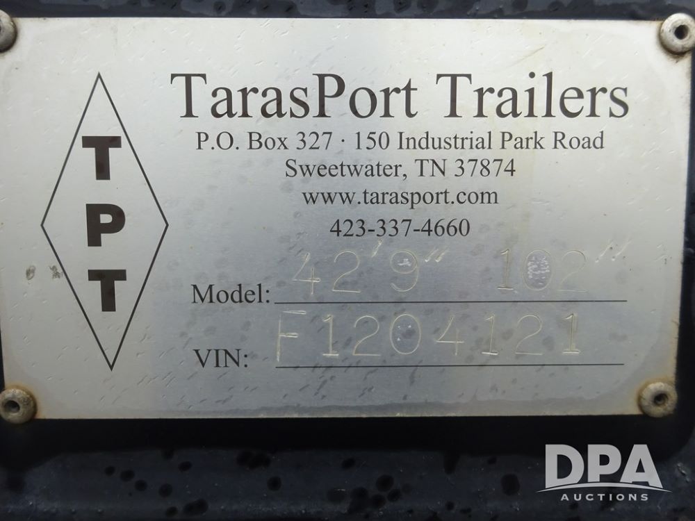 2015 TarasPort Liquid Sprayer Trailer (PZ14052, Unit 109067), 2015 TarasPort model 42'9" - 102" liquid sprayer trailer, 80,000 # GVWR, 1000 gallon poly liquid tank, 3000 gallon poly liquid tank, 55 gallon poly chemical inductor, Honda GX160 gas engine, pump, fold down sides, 5' manual fold down ramps, tandem axle, spring suspension, 235/75R17.5 tires.