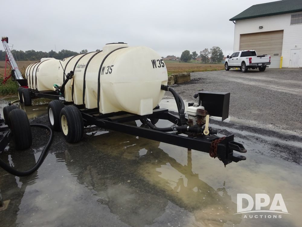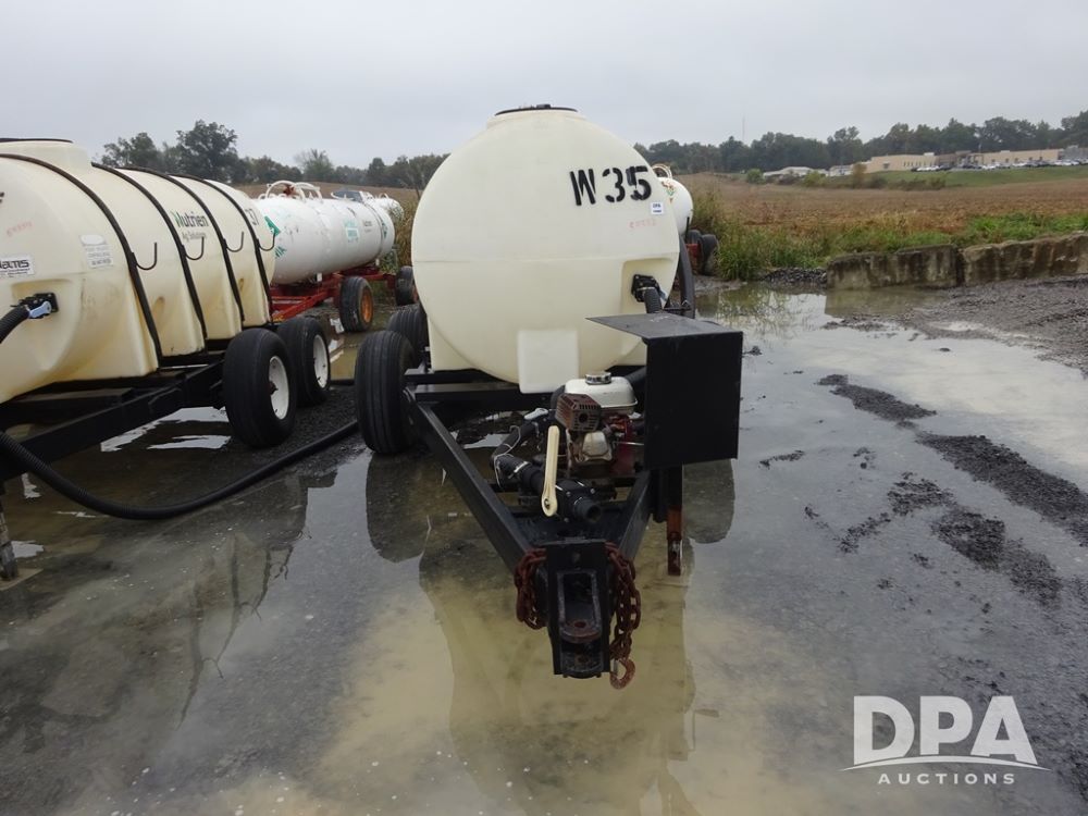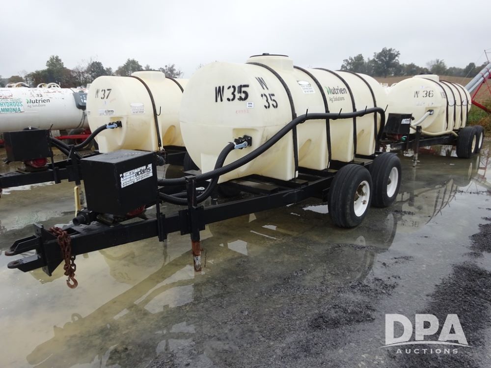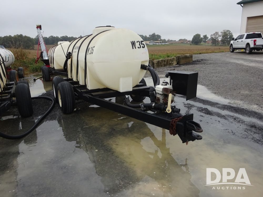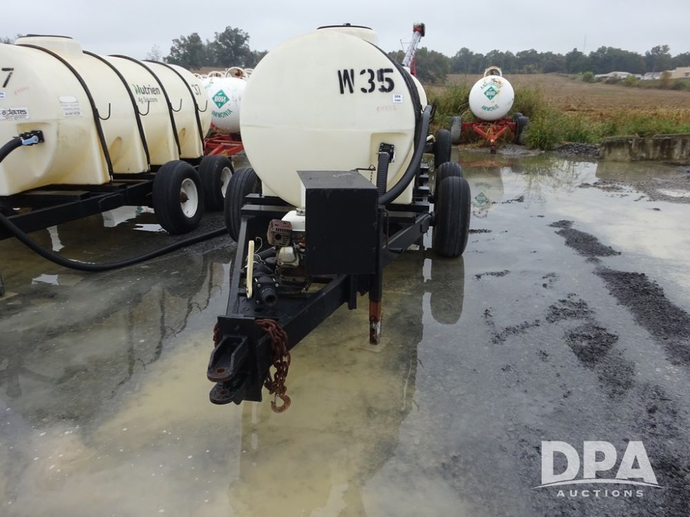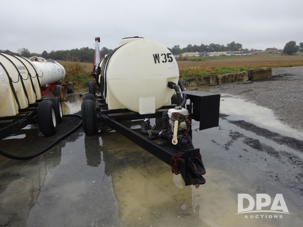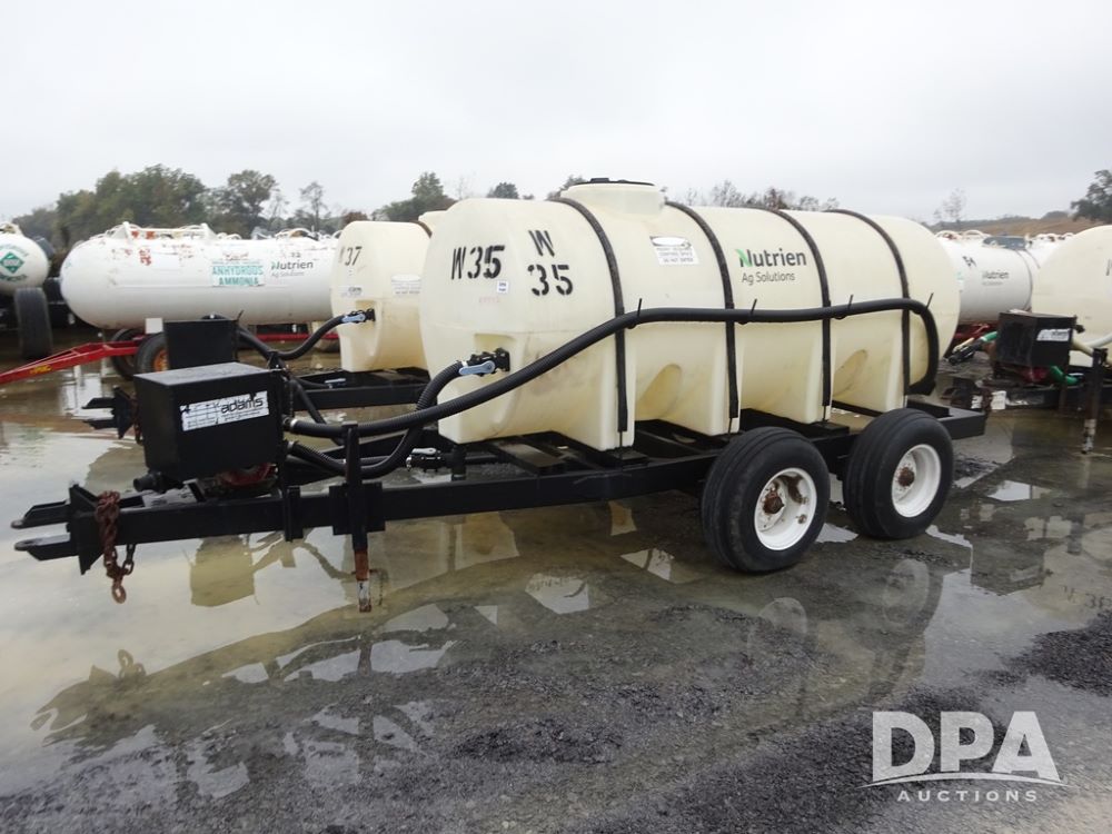 Adams Liquid Nurse Trailer (PZ14062, Unit 54332, Tank W35), Adams 1000 gallon poly liquid nurse trailer, gas engine, pump, tandem axle gear, 11L-15 flotation tires.