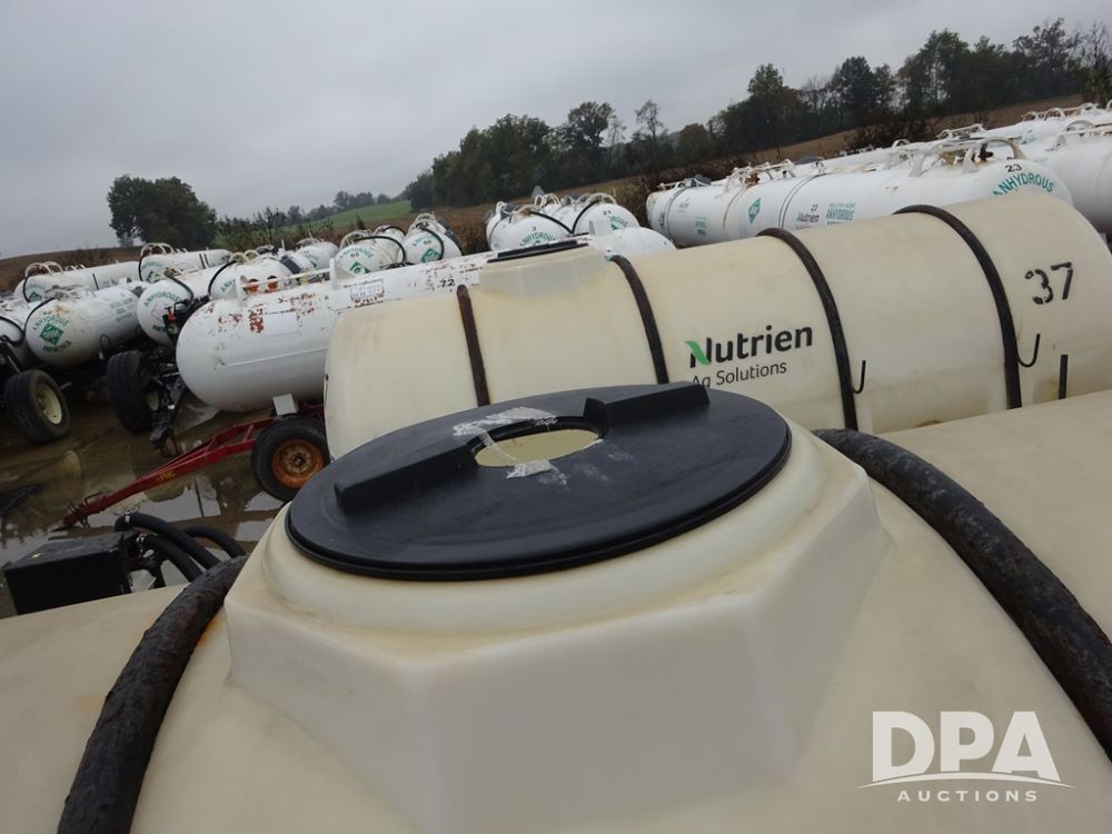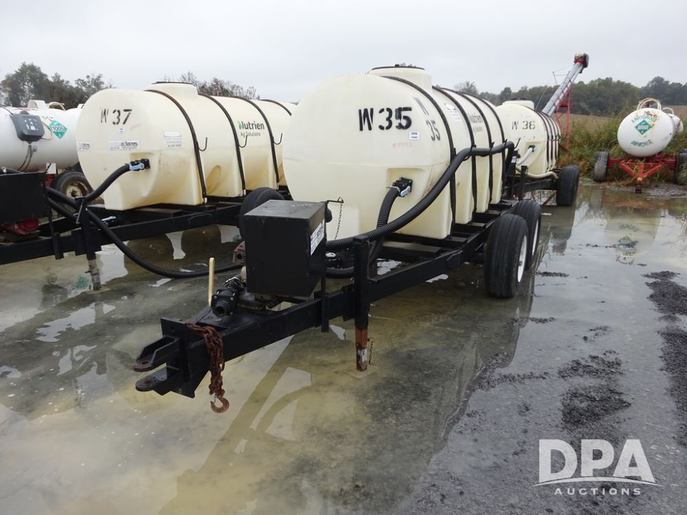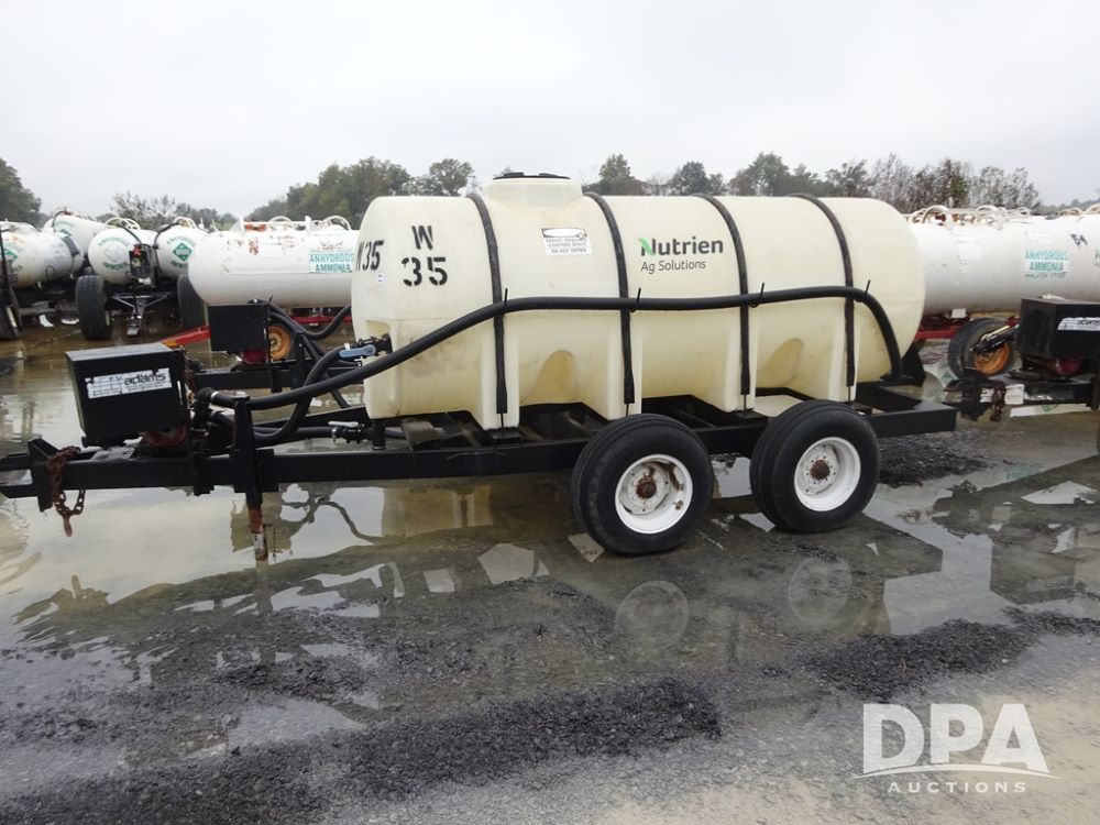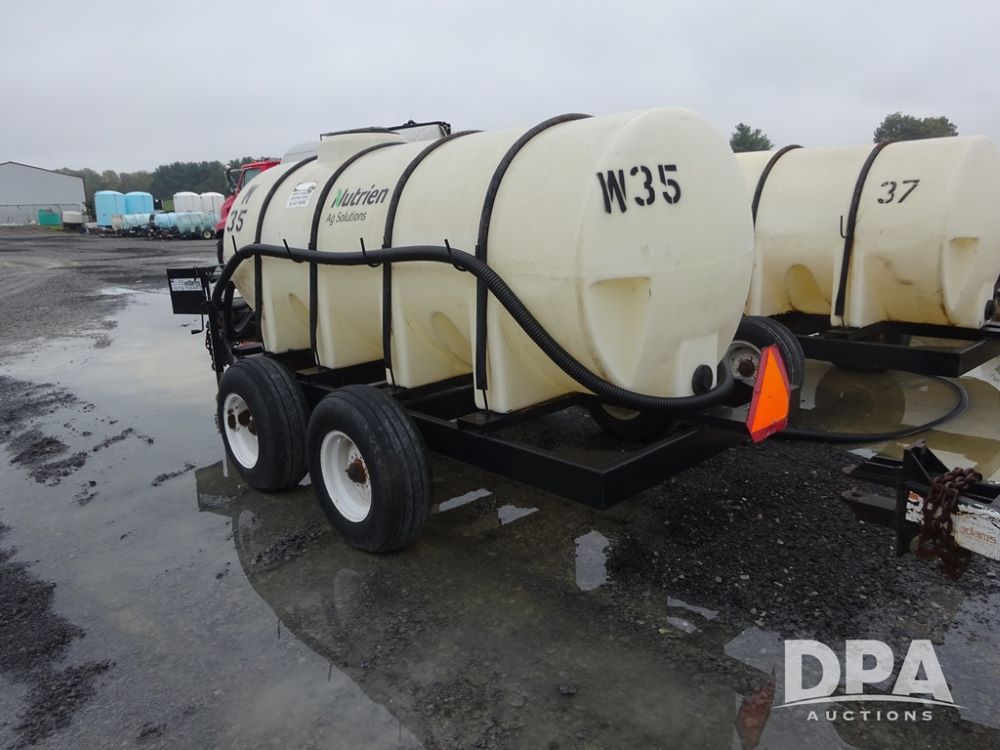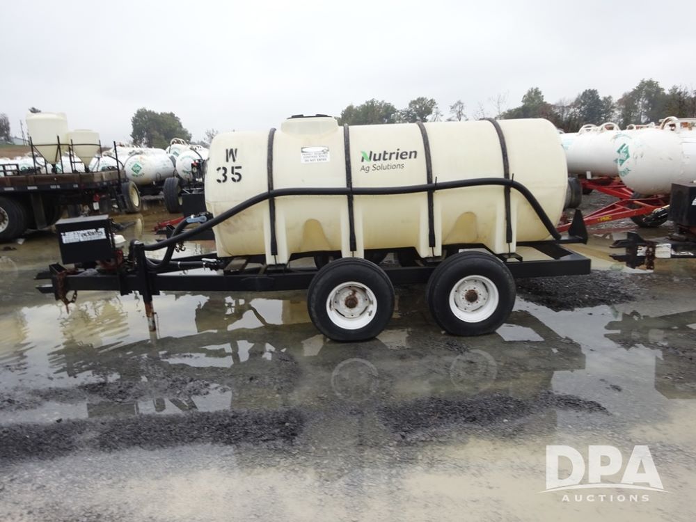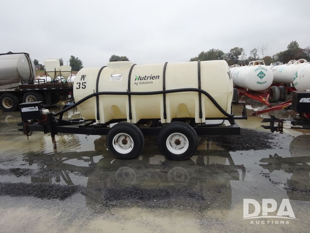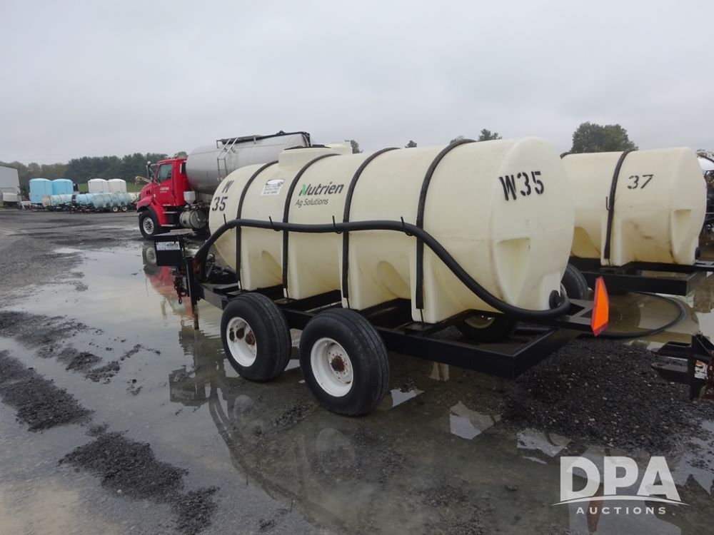 Adams Liquid Nurse Trailer (PZ14062, Unit 54332, Tank W35), Adams 1000 gallon poly liquid nurse trailer, gas engine, pump, tandem axle gear, 11L-15 flotation tires.