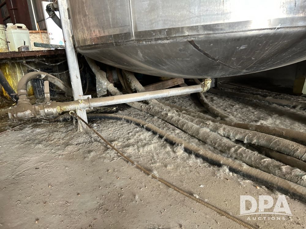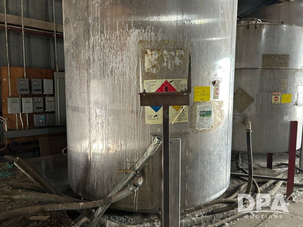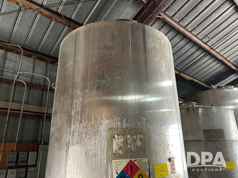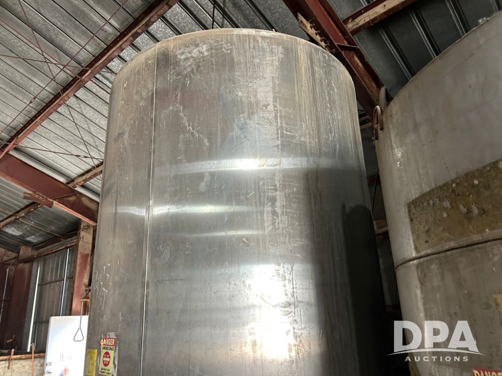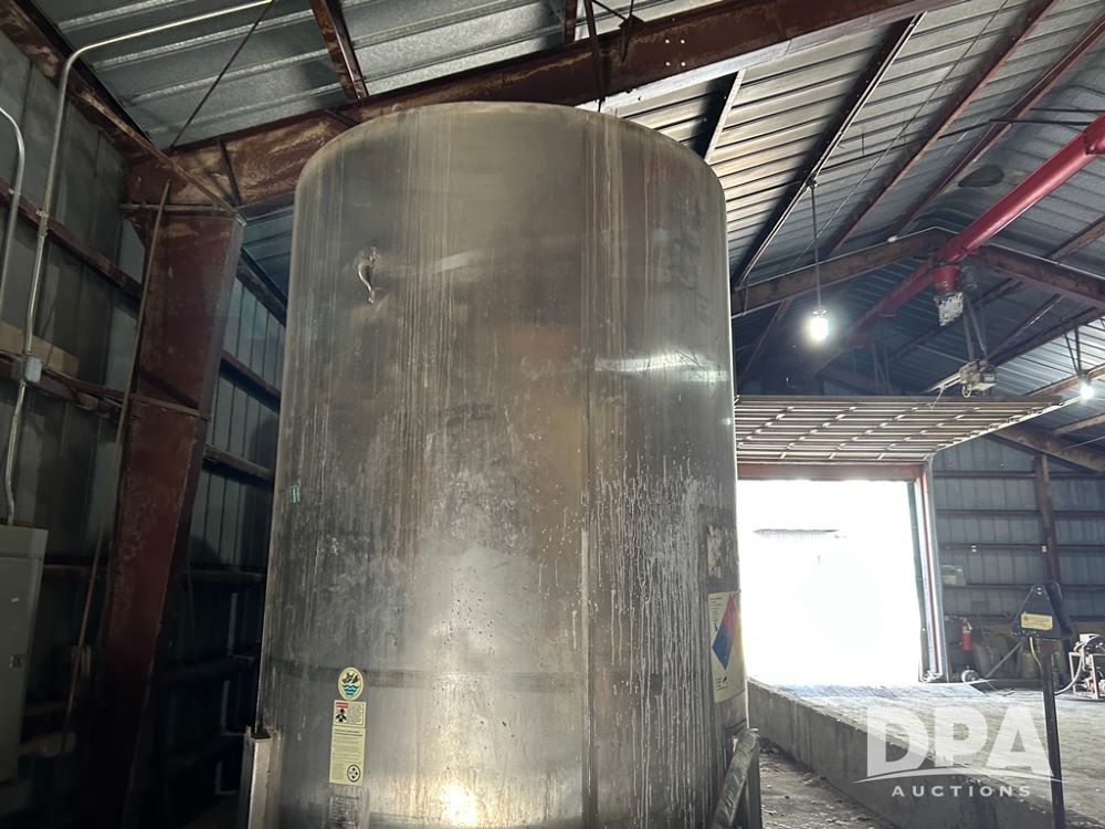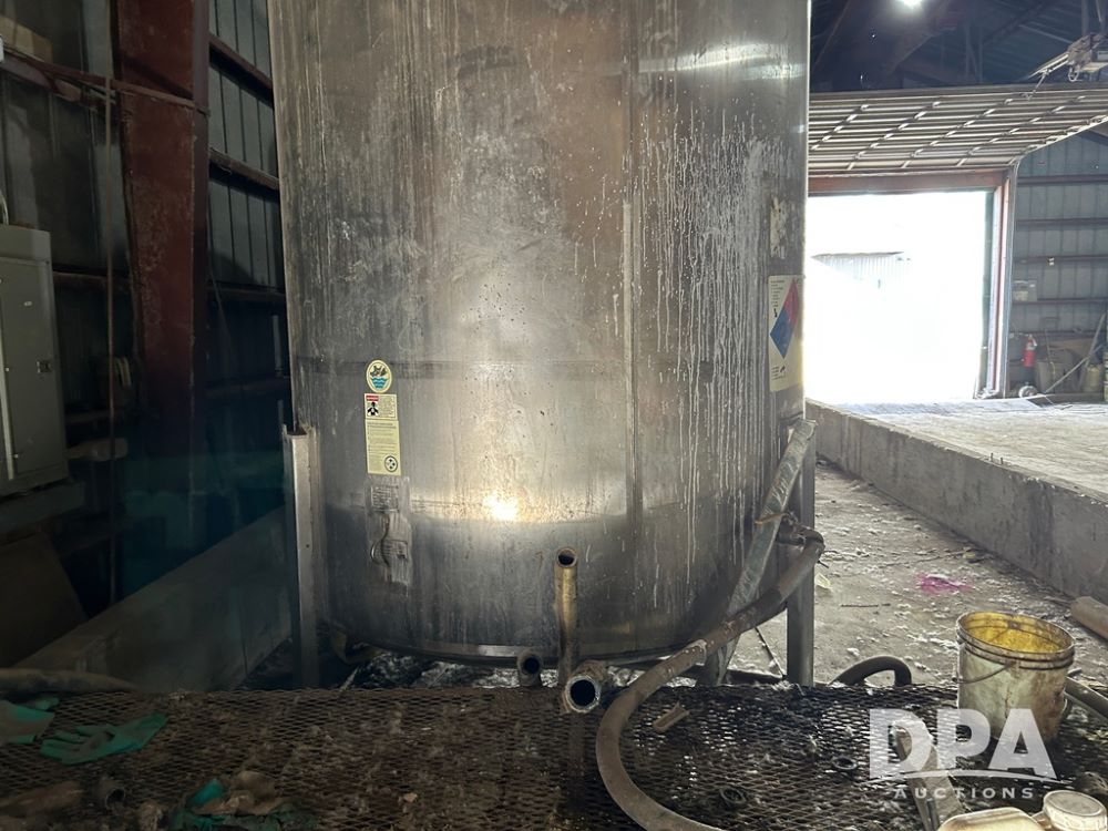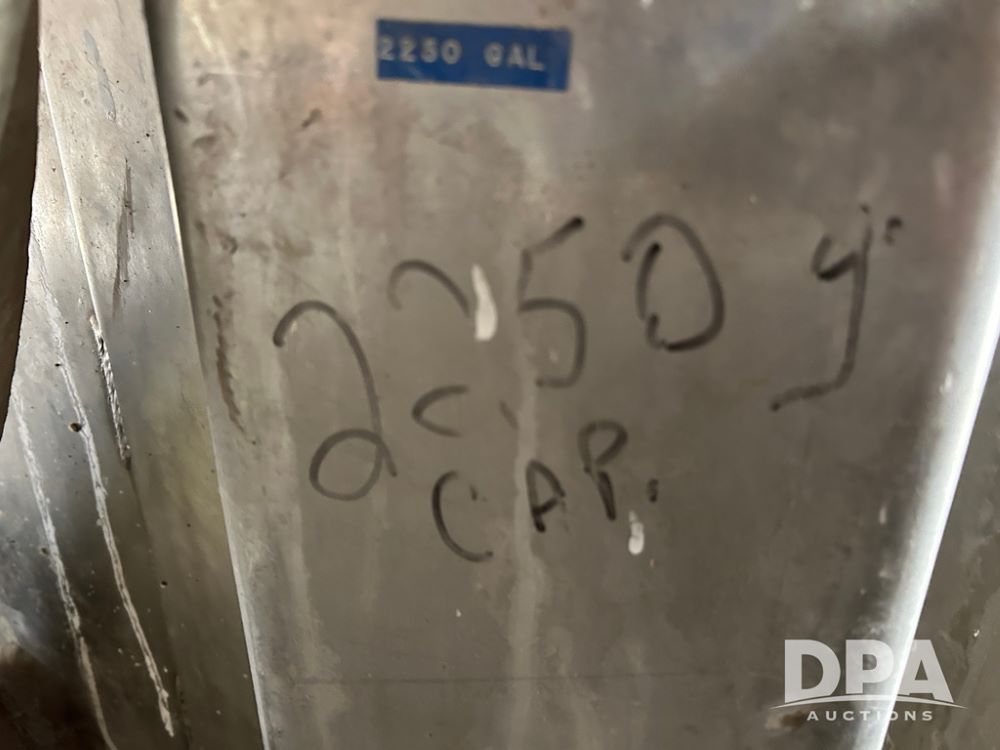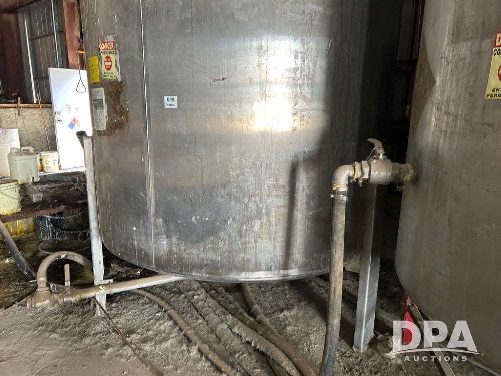Stainless Steel Liquid Tank (CP1233), 2,250 gallon vertical dish bottom stainless steel liquid tank, stainless steel stands, valve.