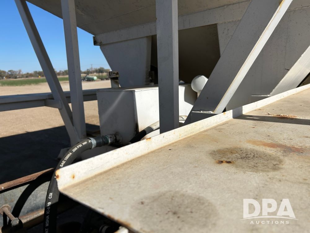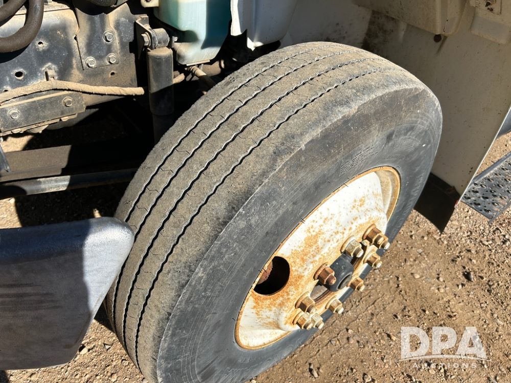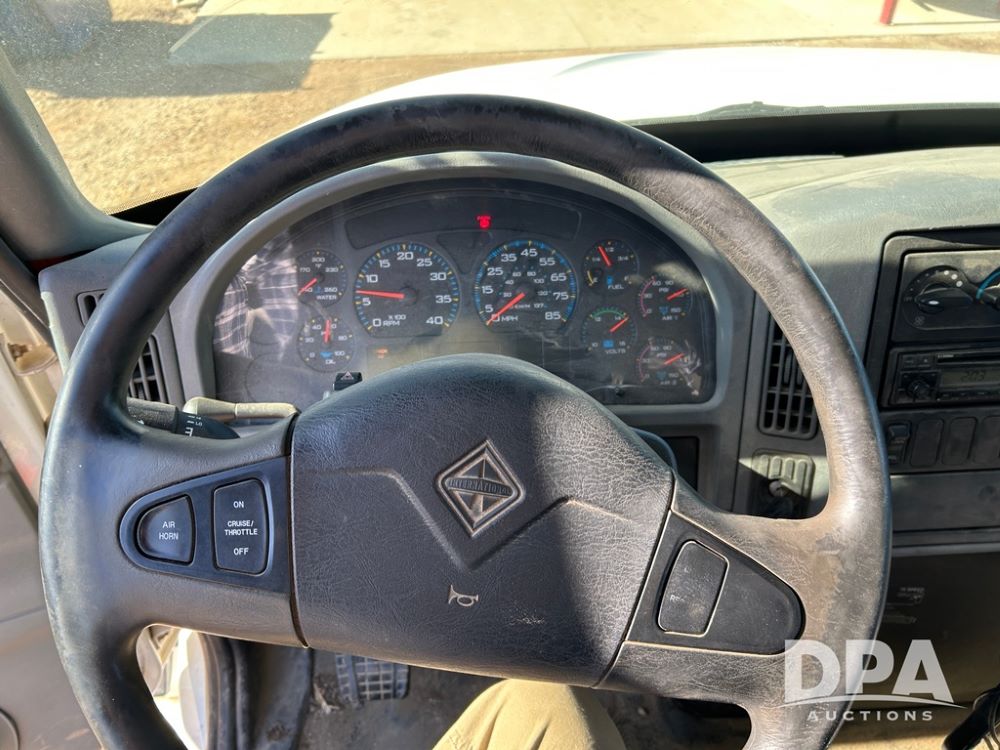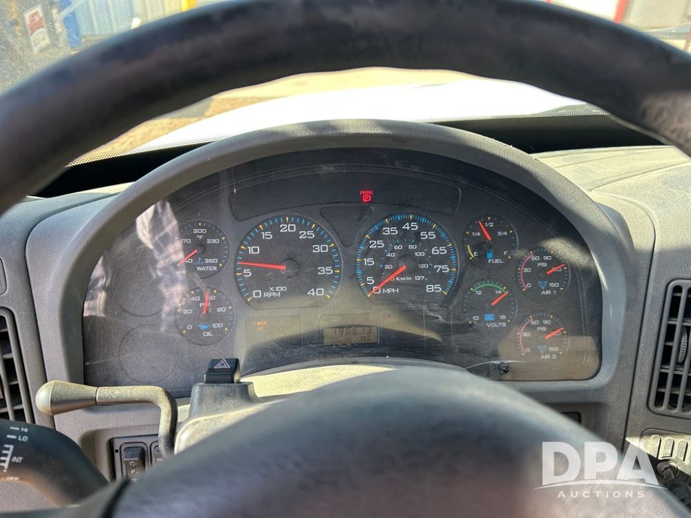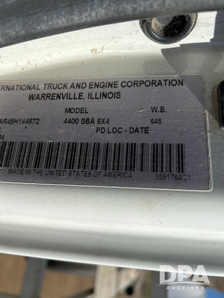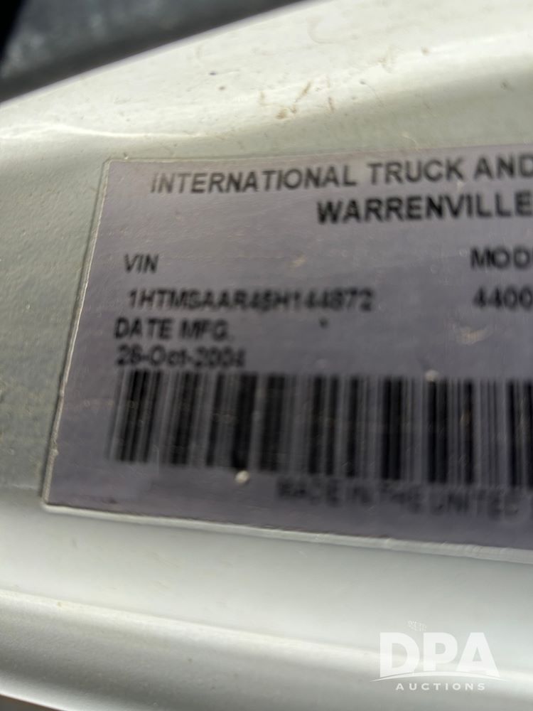 2005 IHC 4400 Dry Tender Truck (CP1274, Unit AG706), DT466 diesel engine, Eaton Fuller 10 speed transmission, air conditioning, heat, Am/Fm CD radio, cruise control, tandem axle, full screw, air ride suspension, 16 ton dry tender box, rear discharge auger, all hydraulic, roll over tarp, 295/75R22.5 tires, shows 198,613 miles.