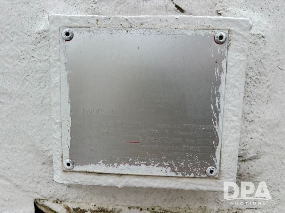 1992 Palmer Fiberglass Liquid Storage Tank (GP11939, Tank 6), 1992 Palmer Mfg. & Tank Model FWVST fiberglass vertical liquid storage tank, 12' diameter, 20' height, approx. 16,800 gallon capacity, flat bottom, manhole cover.