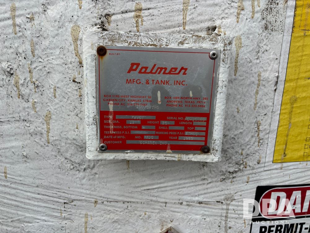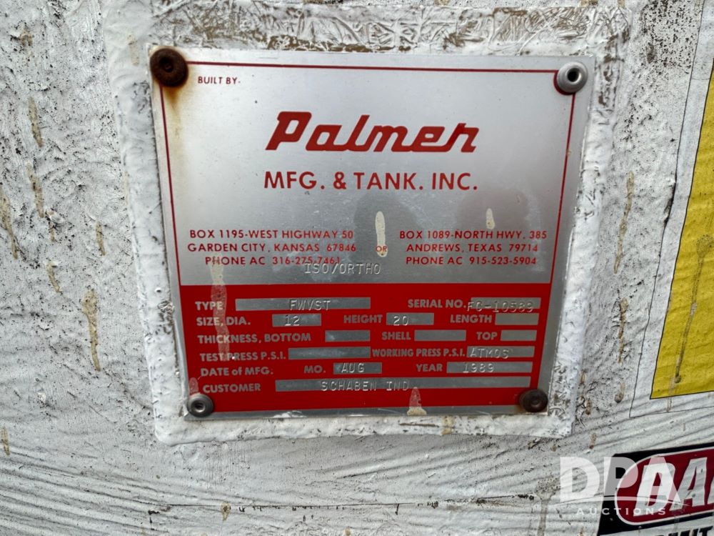 Notes: This tank must be removed by March 2, 2026, NO EXCEPTIONS. Dismantle, removal, loading and transportation is at the sole expense, risk and liability of the buyer. Seller WILL NOT have equipment for removal.