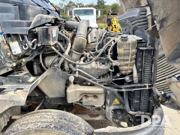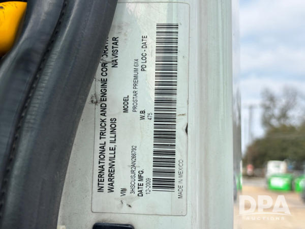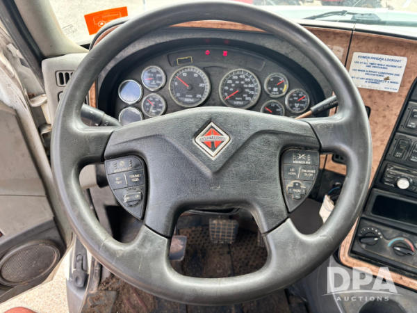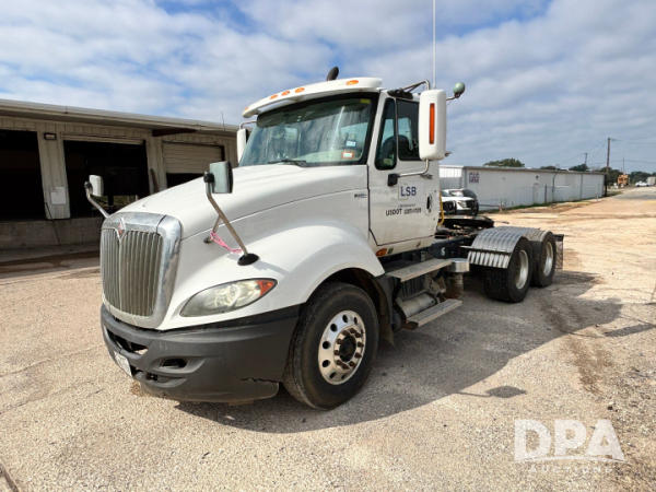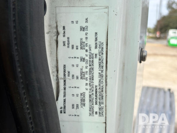 2010 International ProStar Premium Day Cab Truck (GP11769, Unit 700-95), Maxxforce 13 diesel engine, Eaton Fuller 13 speed transmission, heat, Am/Fm radio, power windows and locks, cruise control, tandem axle, air ride suspension, 5th wheel plate, single fuel tank, single exhaust, 295/75R22.5 front tires, 445/50R22.5 super single rear tires, engine heater, GVWR 50,350 pounds, shows 530,786 miles.