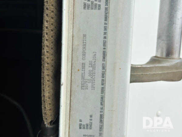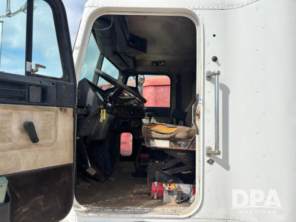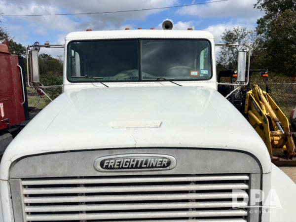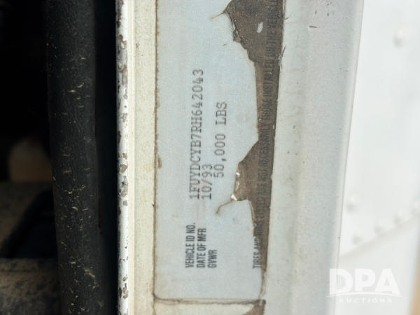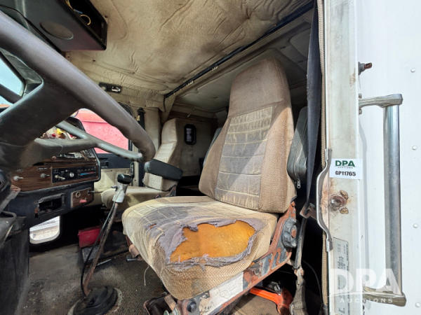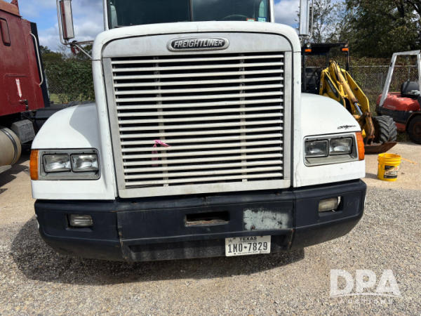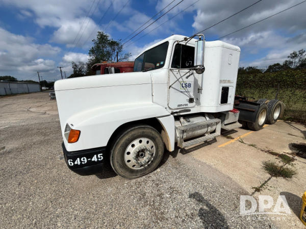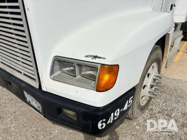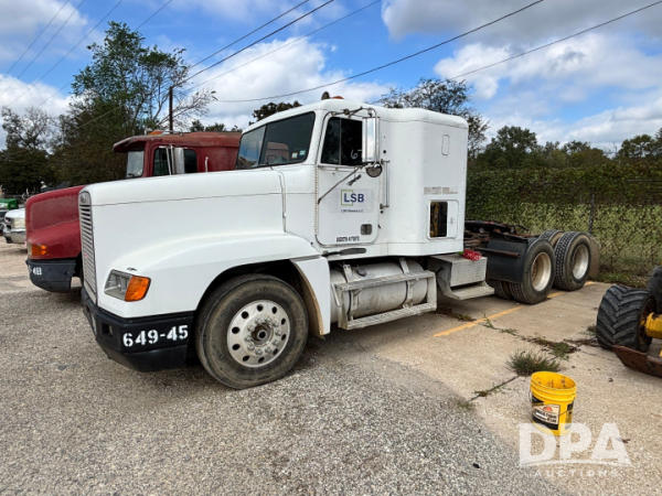 1994 Freightliner FLD120 Truck (GP11765, Unit 649-45), Cummins N14 diesel engine, Eaton Fuller 10 speed transmission, heat, Am/Fm radio, sleeper, tandem axle, air ride suspension, 5th wheel plate, dual fuel tanks, single exhaust, 295/75R22.5 tires, GVWR 50,000 pounds, shows 1,185,104 miles.