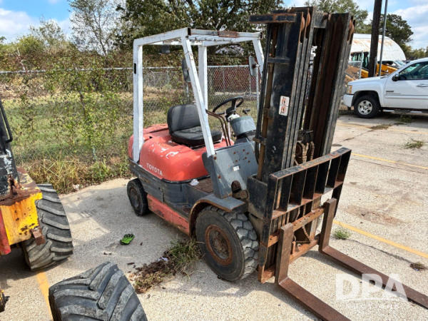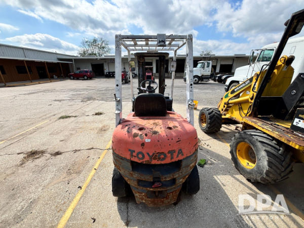 Toyota Forklift (GP11763, Unit 657-01), Toyota forklift, gas, forks, tilt, 7.00-12 front tires, 6.50-10/5.00 rear tires, shows 14,116 hours.