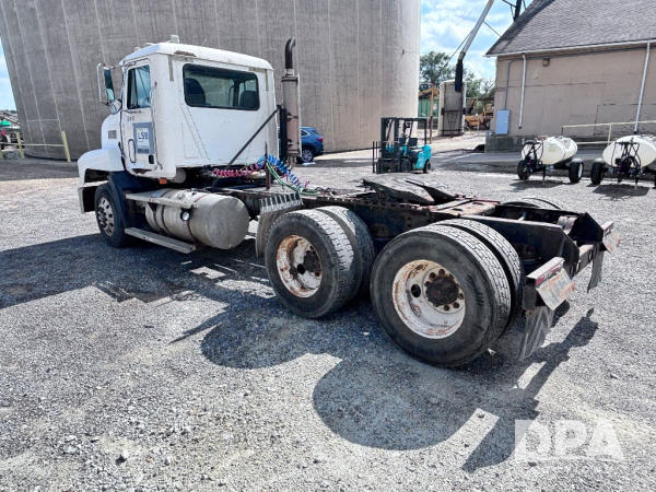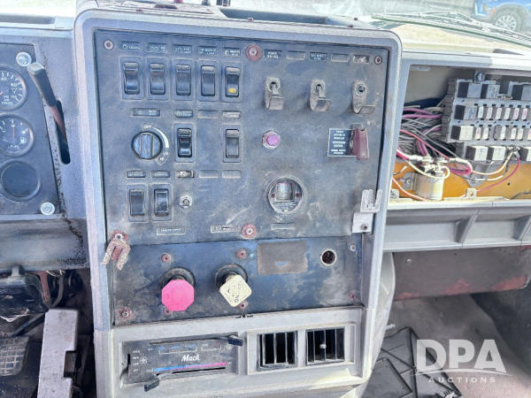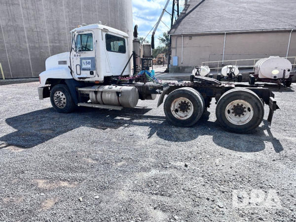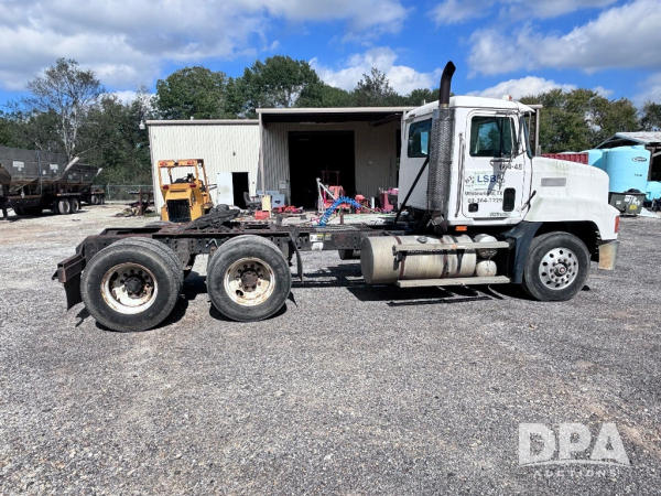 1993 Mack CH613 Day Cab Truck (GP11796, Unit 664-48), Mack E7-350 diesel engine, MaxiTorque 9 speed transmission, heat, Am/Fm radio, air ride cab, tandem axle, air ride suspension, 5th wheel plate, dual fuel tanks, single axle, 295/75R22.5 tires, shows 34,643 hours, shows 1,067,769 miles.