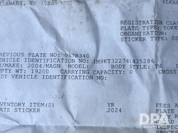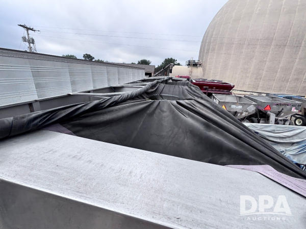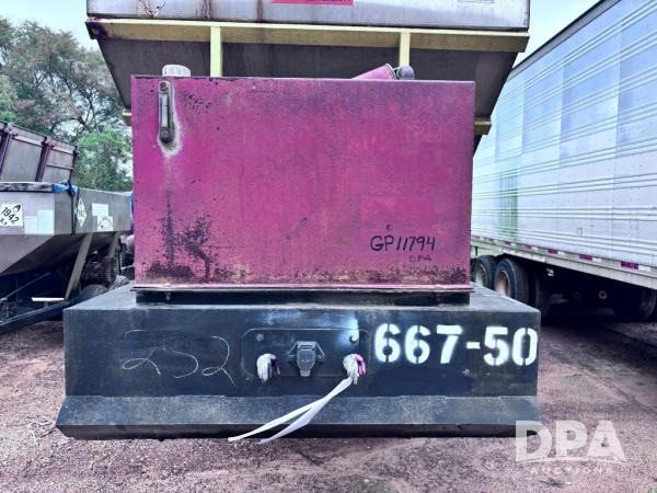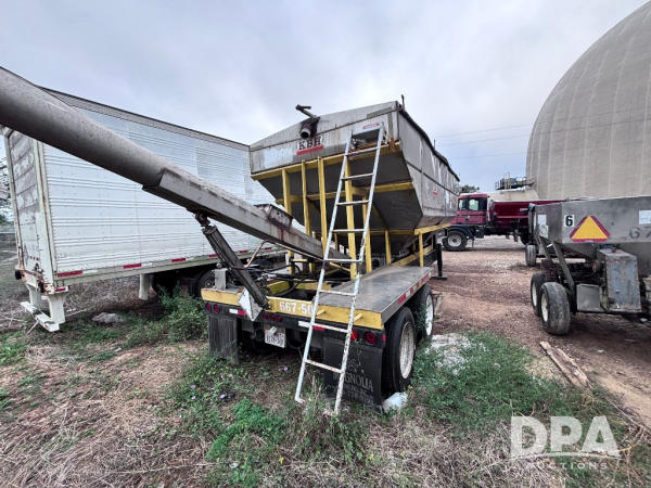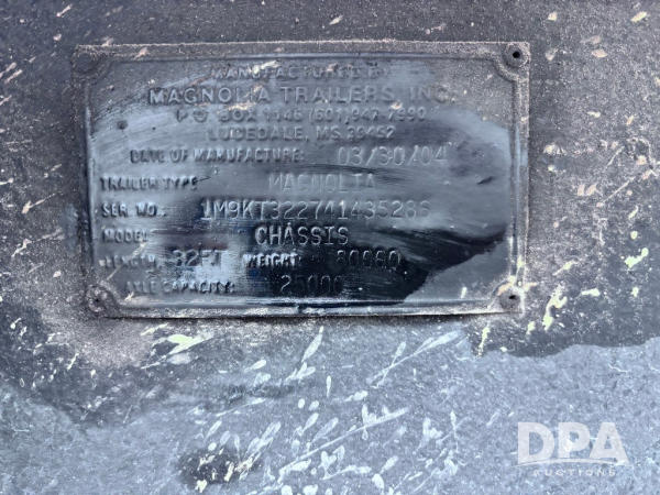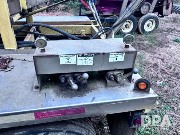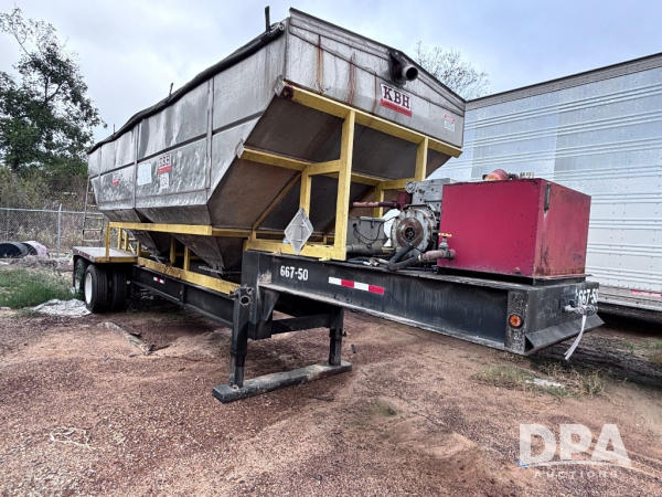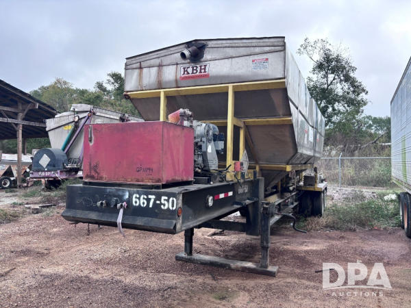 2004 Magnolia Dry Tender Trailer (GP11794, Unit 667-50), 2004 Magnolia dry tender trailer, tandem axle, spring suspension, 255/70R22.5 tires, KBH stainless steel dry tender box (S/N TT01698), diesel engine, hydraulic, rear discharge auger, tarp.
