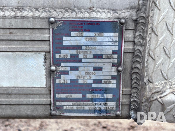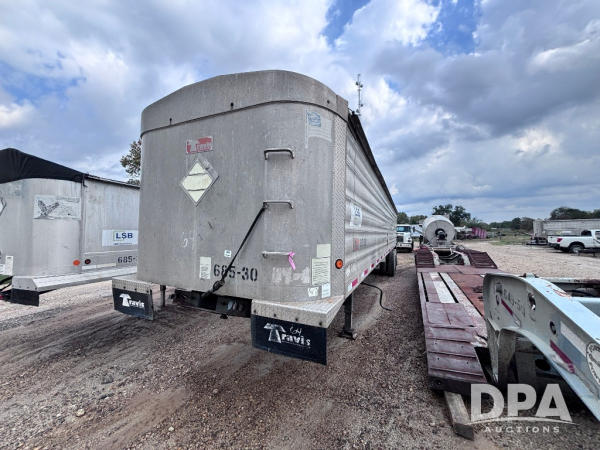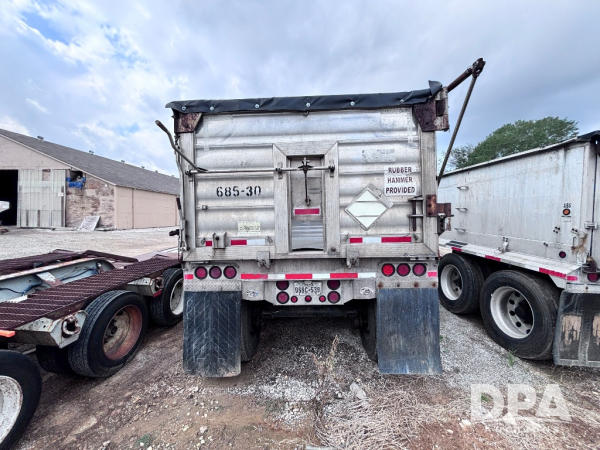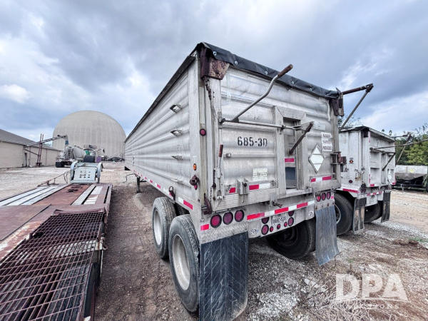 2006 Travis End Dump Trailer (GP11824, Unit 685-30), 2006 Travis end dump trailer, 39' length, Model 2006 39 FT Travis T/102, tandem axle, air ride suspension, 11R24.5 tires, tarp, poly lined, GVWR 68,000 pounds.