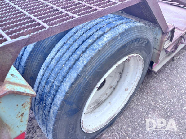 1998 Fontaine TB50NGB Lowboy Trailer (GP11825, Unit 649-50), 1998 Fontaine Model TB50NGB lowboy trailer, triple axle, spring suspension, approx. 24' well, GVWR 116,000 pounds, Wisconsin gas pony motor, 255/70R22.5 tires.