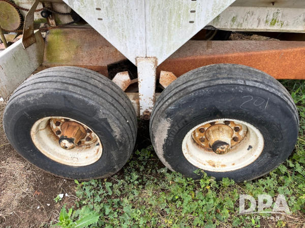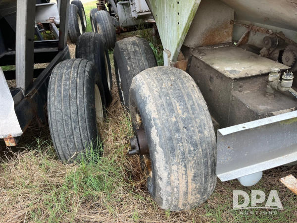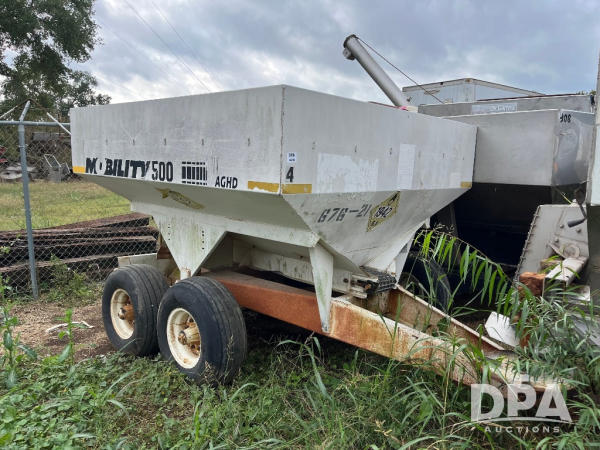 Mobility 500 Dry Spreader (JN3286, Unit 676-21), Mobility 500 pull type dry spreader, dual spinners, tandem axle, flotation tires.