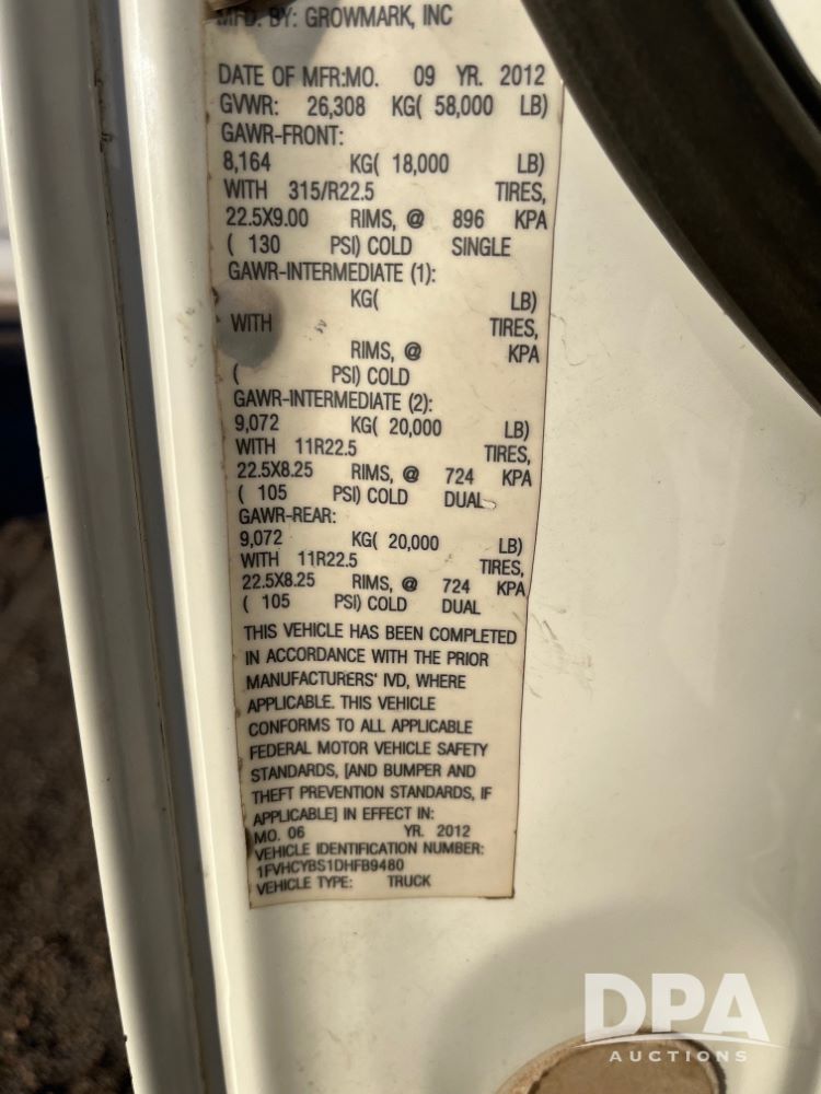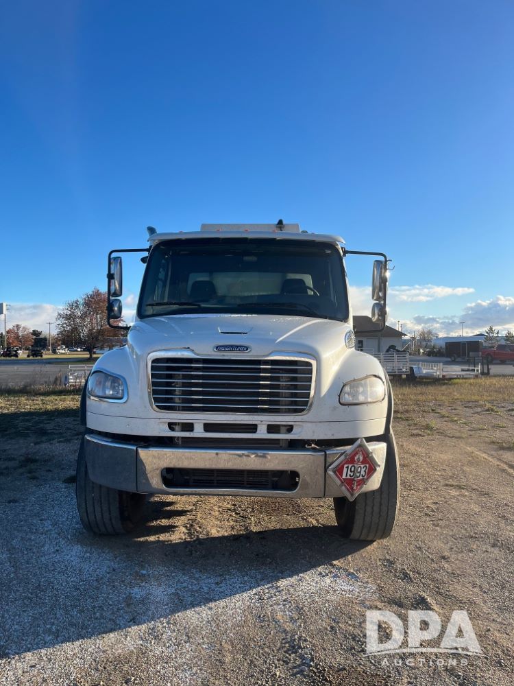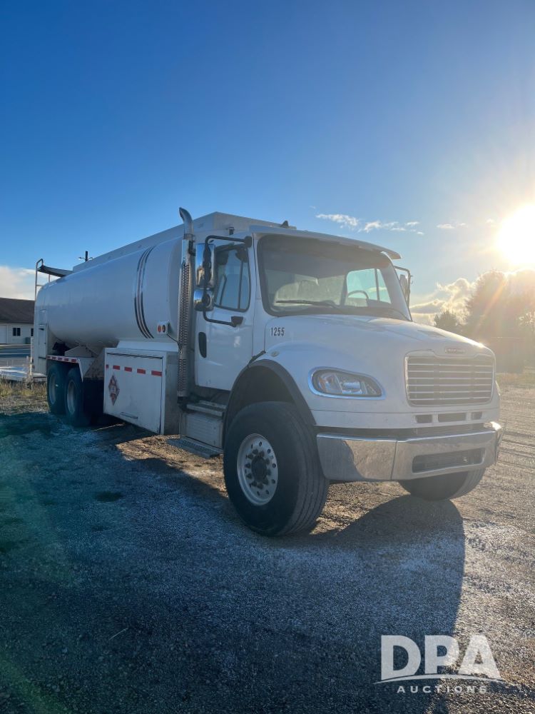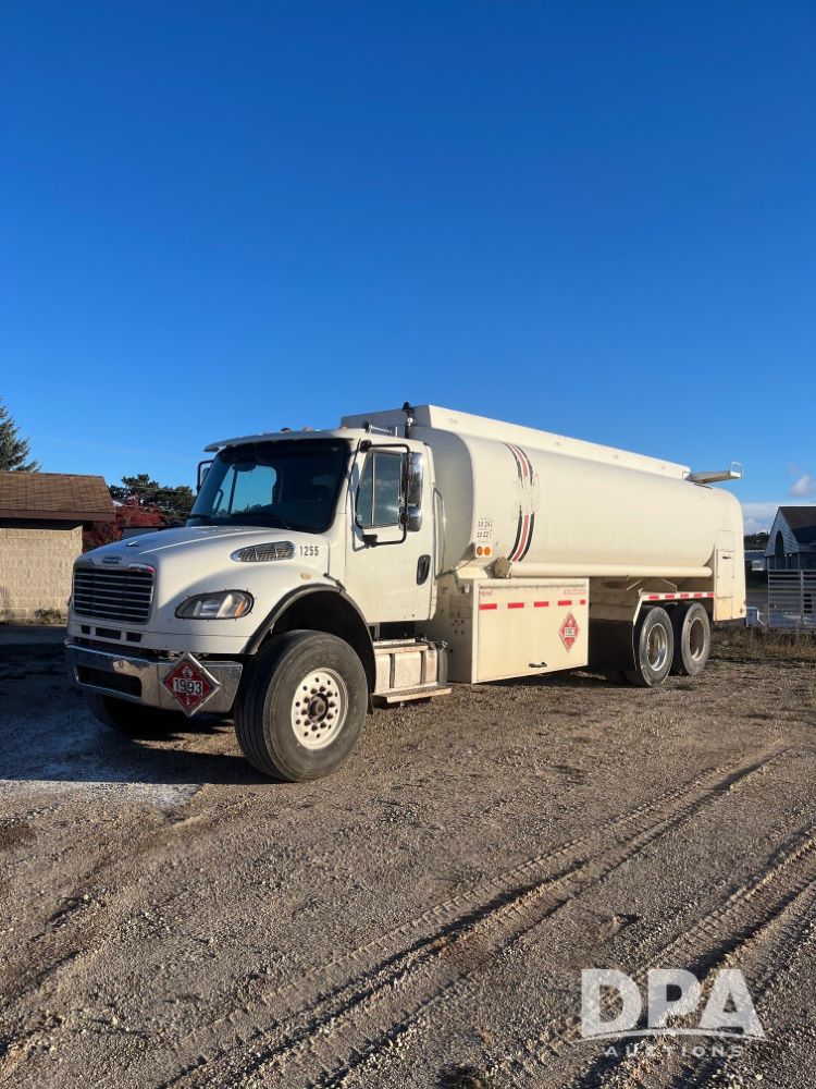 2013 Freightliner Fuel Delivery Truck (DR12679 Unit 1255), Cummins diesel engine, 10 speed transmission, tandem axle full screw, air ride suspension, 4200 gallon 4 compartment fuel body, dual metered hose reels, storage compartments, engine brake, heat/air conditioning, odometer reads 354,599 miles.