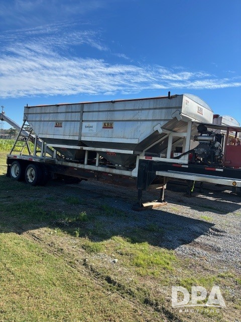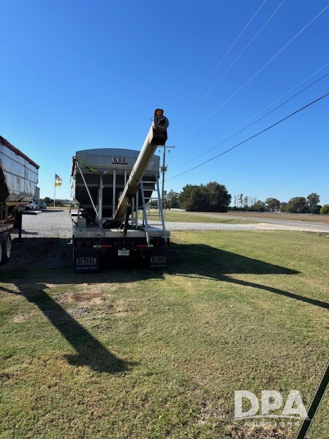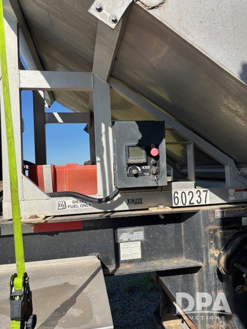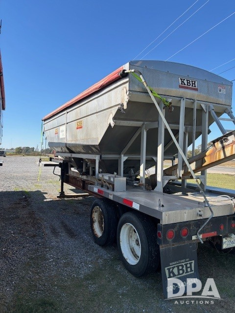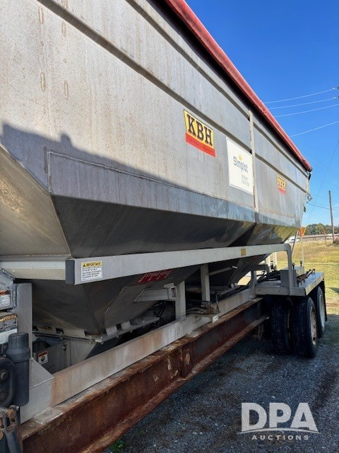 2016 KBH Dry Trailer (DR12673 Unit 23191/JDE 313505), 26 ton stainless steel hydraulic dry tender trailer, aluminum sub frame, self contained hydraulics w/diesel engine, rear discharge auger, roll over tarp, tandem axle, 255/70R22.5 tires.