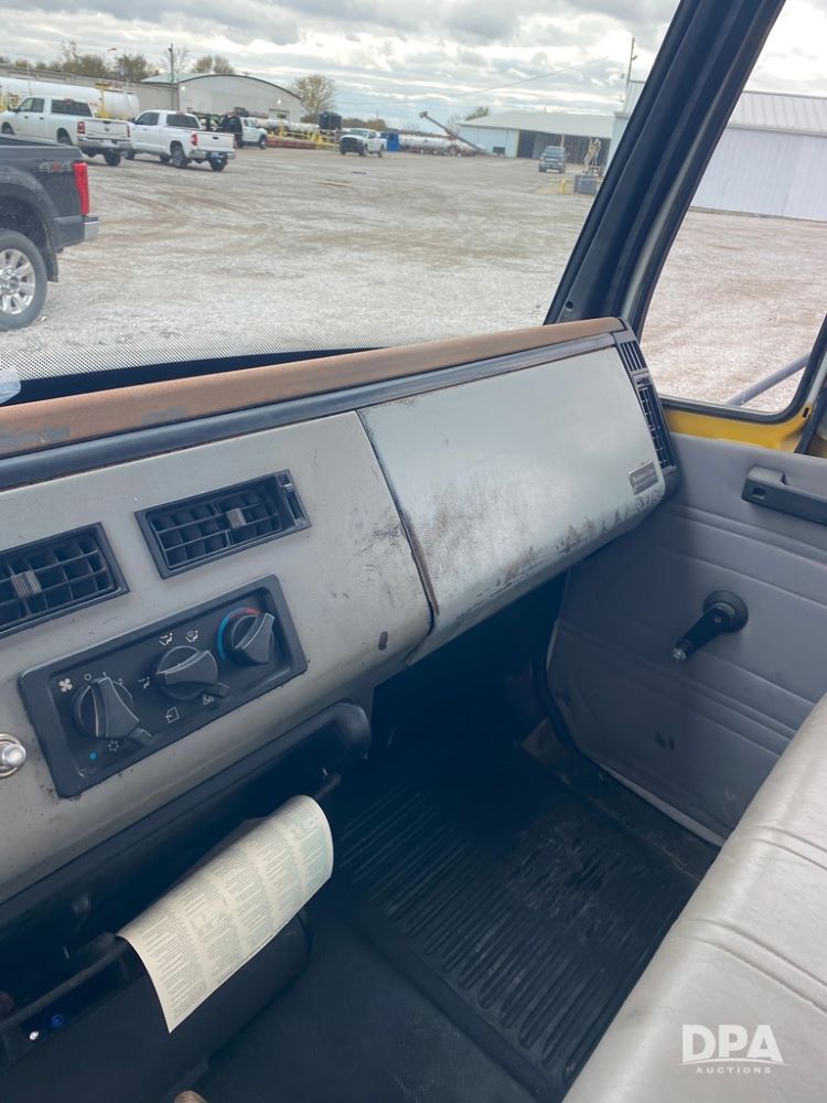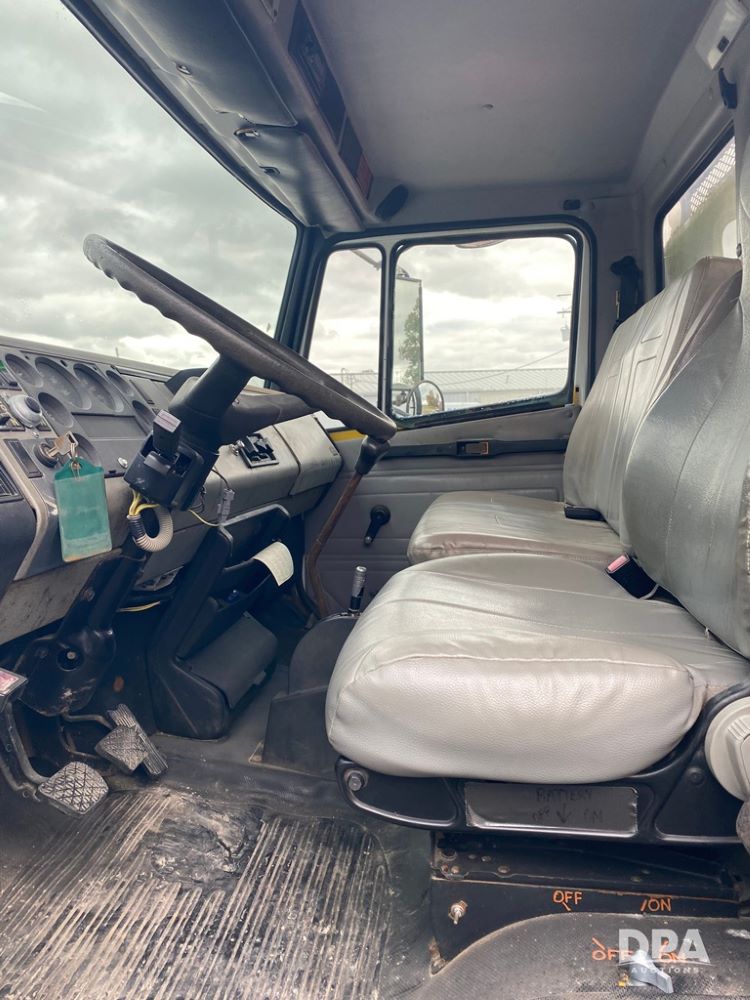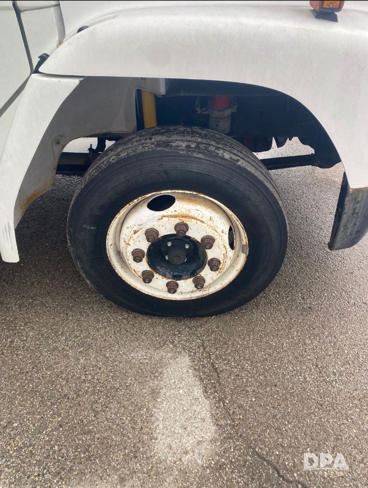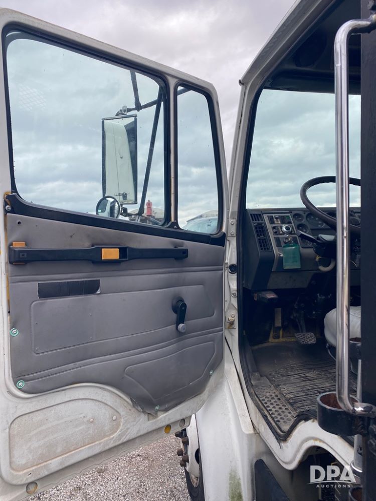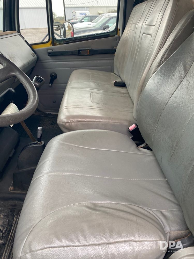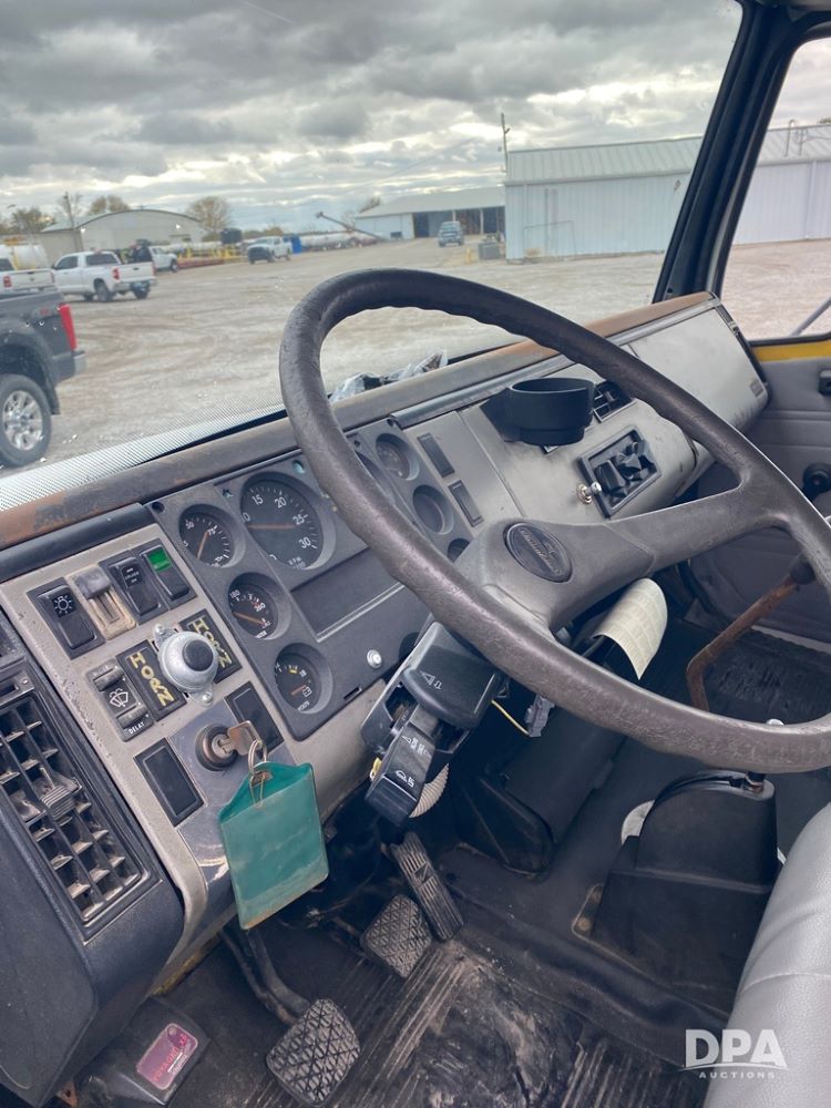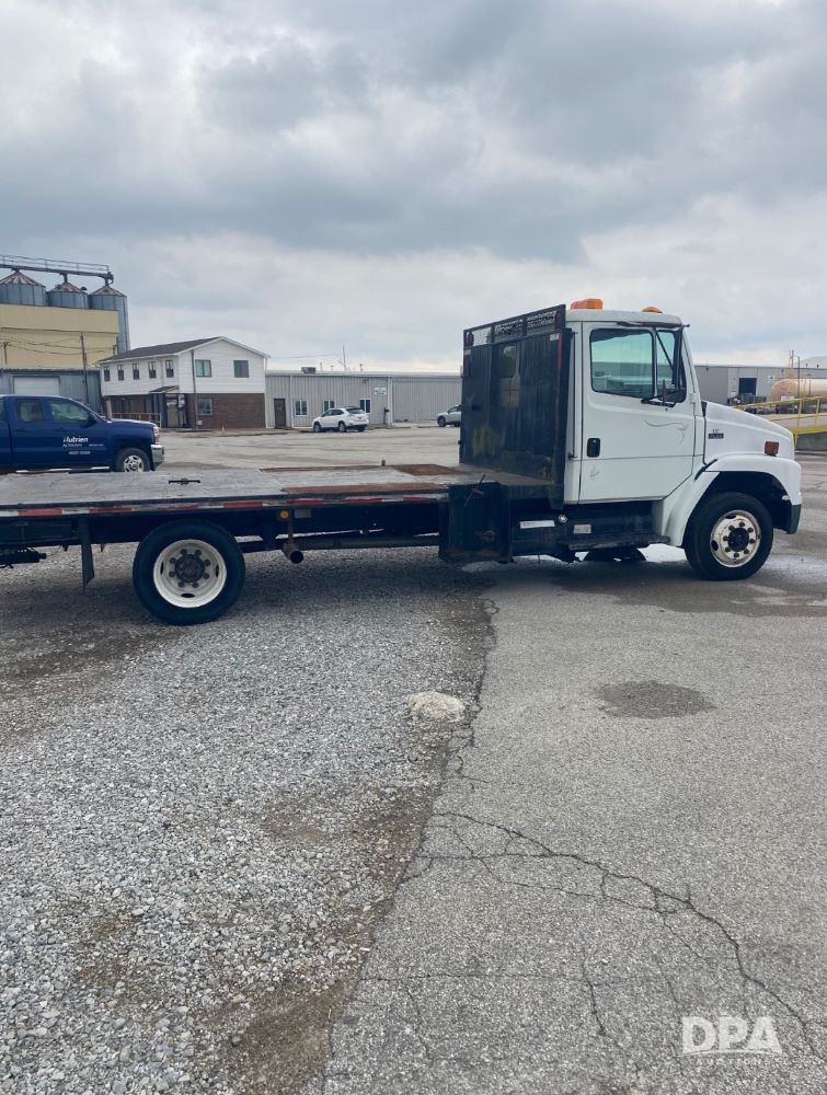 1999 Freightliner FL50 Flatbed Truck (PZ14169, Unit 21959), Cat diesel engine, 5 speed transmission, air conditioning, heat, Am/Fm radio, cruise control, dually, Steel flatbed, headache rack, 225/70R19.5 tires, shows 234,409 miles.
