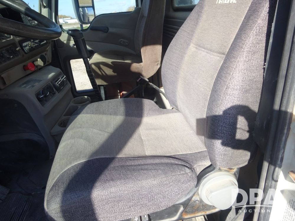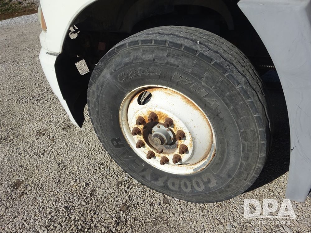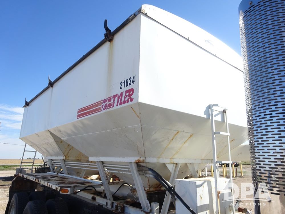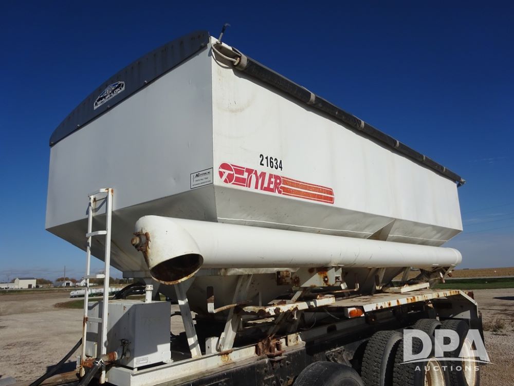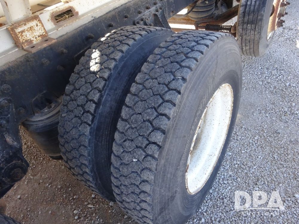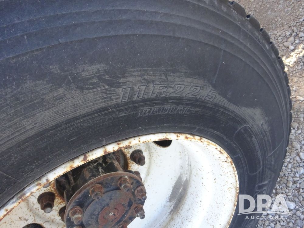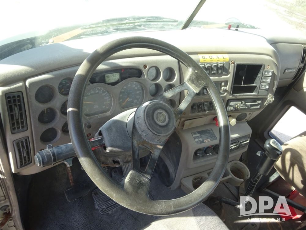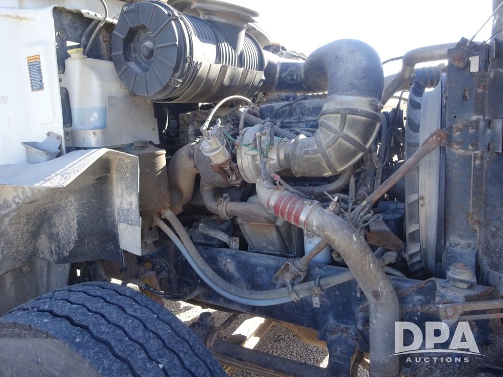 2004 Mack Vision Dry Tender Truck (PZ14165, Unit 17539), Mack diesel engine, Eaton Fuller 10 speed transmission, air conditioning, heat, Am/Fm radio, cruise control, tandem axle, full screw, air ride suspension, 3rd axle, Tyler 16 ton dry tender box (Unit 21634), side discharge auger, all hydraulic, roll over tarp, 315/80R22.5 front tires, 11R22.5 rear tires, 255/70R22.5 3rd axle tires, shows 461,262 miles.