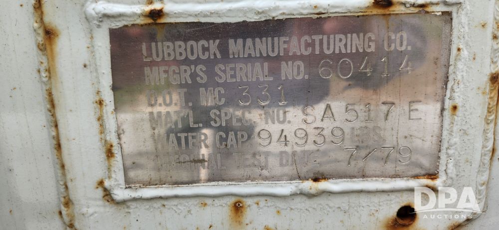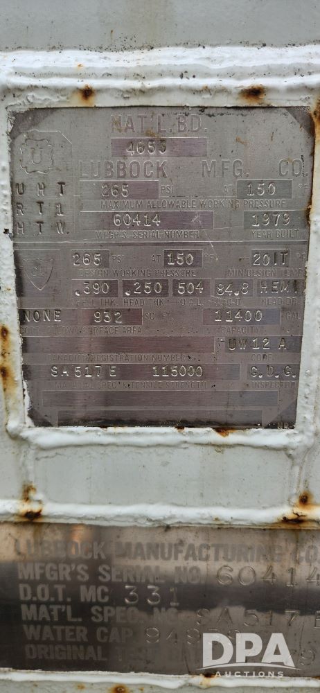 1979 Lubbock Tanker Trailer (LLD1470), propane tanker trailer, 11,400 gallon capacity, 265 psi, 2 new axles, spring ride.