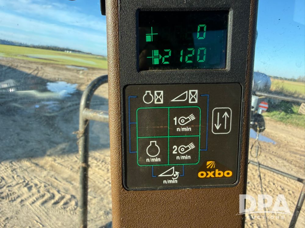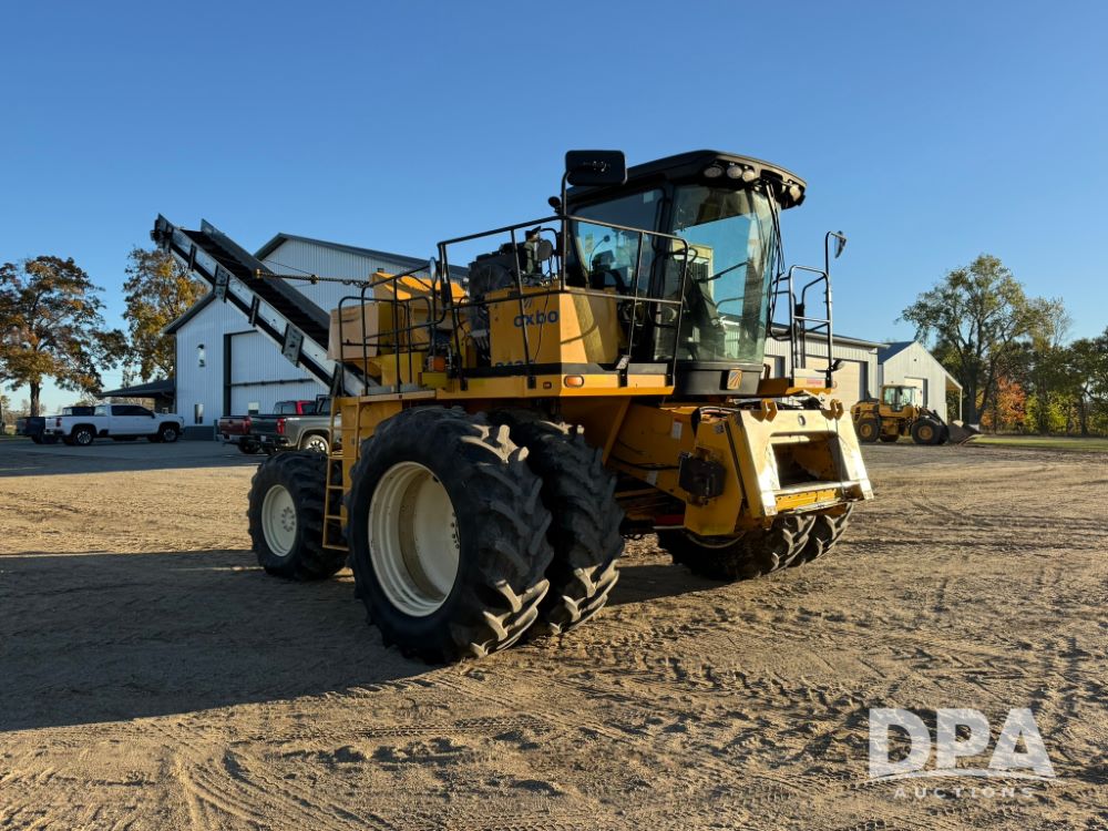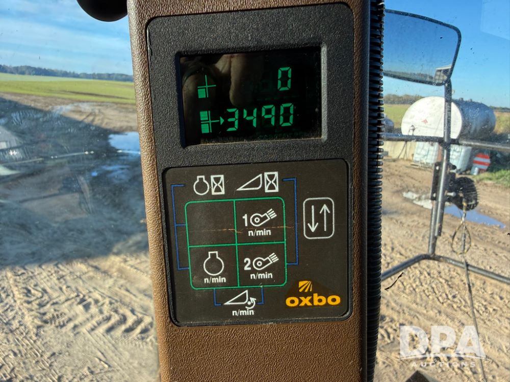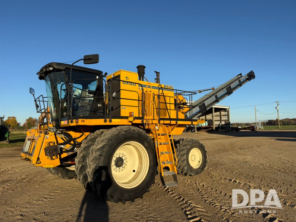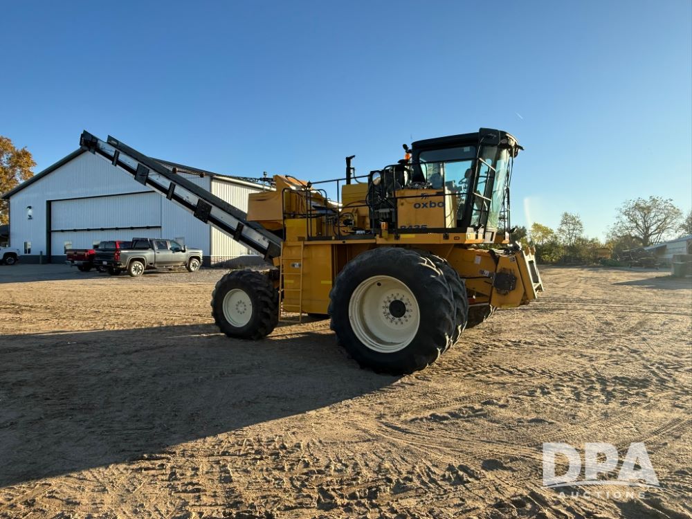 2012 Oxbo 8435 Seed Harvester (LT1449), Power tech plus John Deere 9.0L engine, 30ft rear elevator with rubber belt, LED light kit all around, 4WD, 20 rear John Deere suitcase weights, rear hitch and hydraulic hook ups for pulling dump cart, oscillating feeder house faceplate, faceplate for John Deere corn head, John Deere single point connection, reversing feeder house, wired for headlight control system, Voyager camera screen in cab, camera on rear elevator, 620/70R42 Firestone front dual tires, 600/65R28 Firestone rear tires loaded with beet juice.