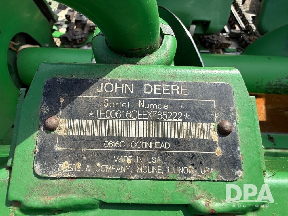 2014 John Deere 616C Corn Head (LT1550), wired for steer by stalk & headsight control, calmer deck plates, John Deere intermeshing knife rolls replaced last year, all gearboxes were replaced last year, new center auger bearing this year, all new chains this year, 1,500 acres ran through head this fall.