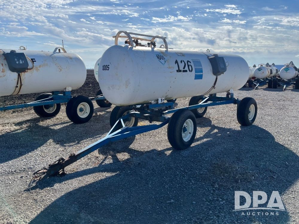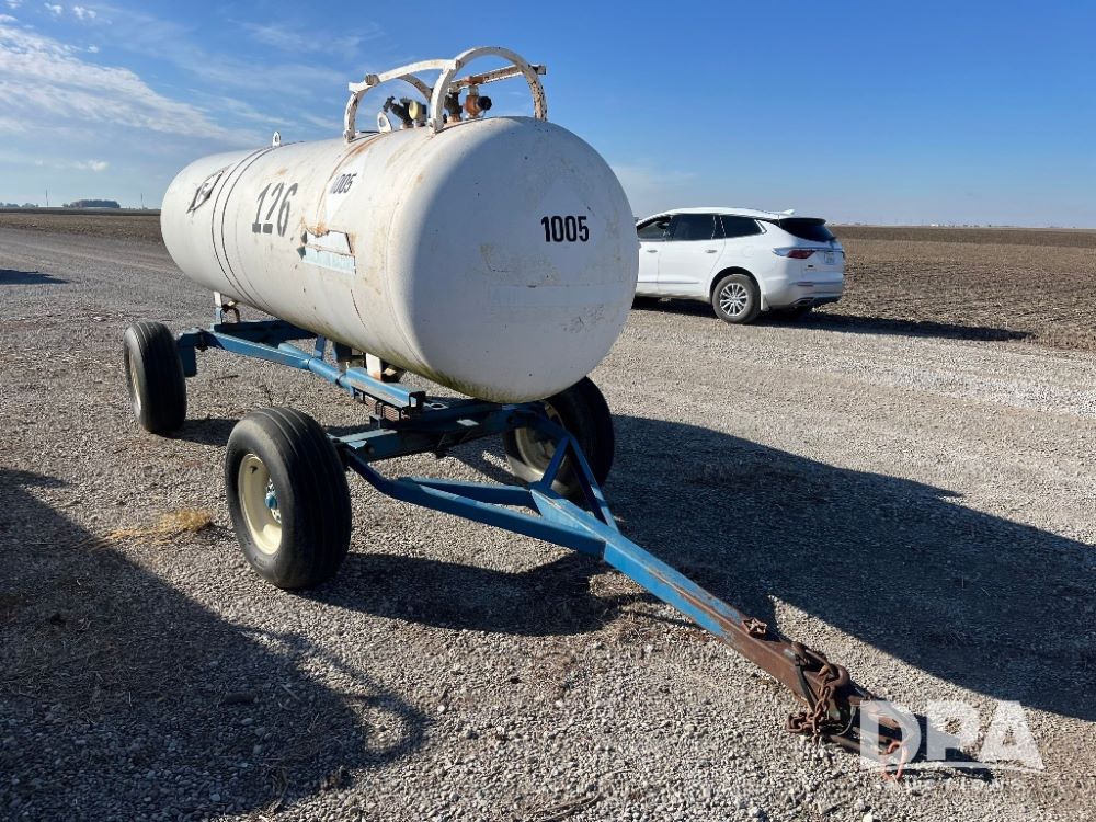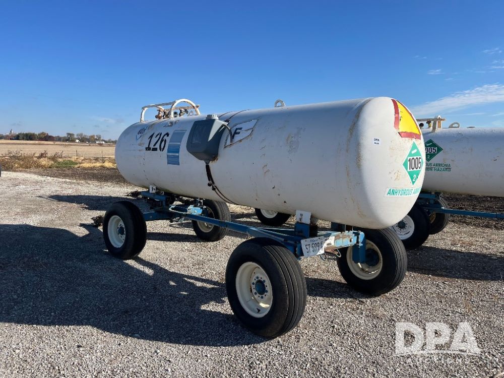 NH3 Nurse Tank (JN3337), 1,000 gallon NH3 nurse tank, top front fill, running gear, poly water tank, data plate, 11L-15 tires.