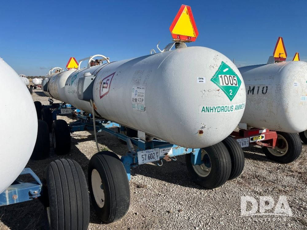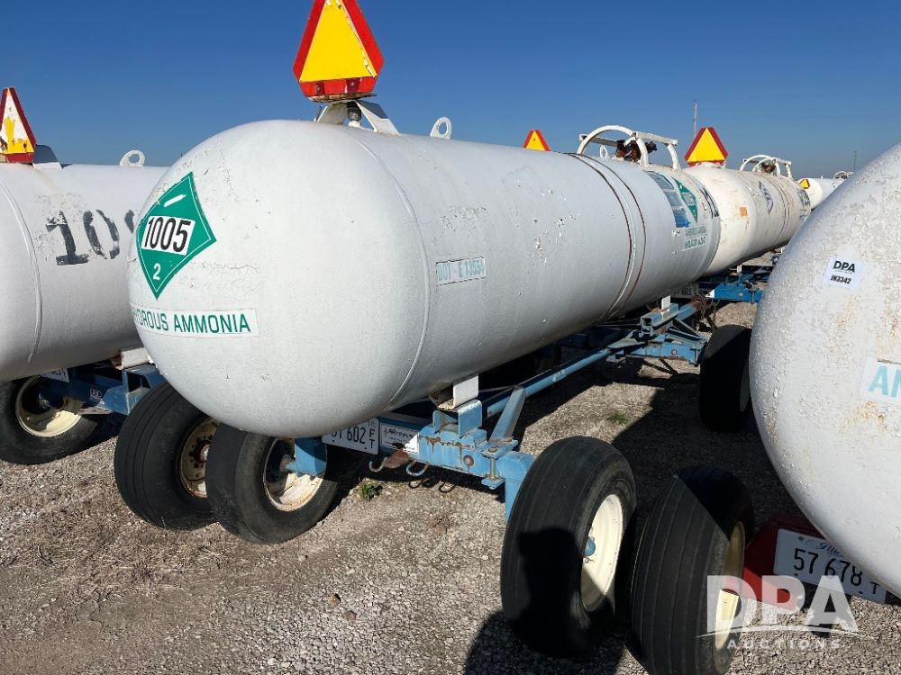 NH3 Nurse Tank (JN3341), Trinity 1,000 gallon NH3 nurse tank, top front fill, running gear, poly water tank, data plate, 11L-15 tires.