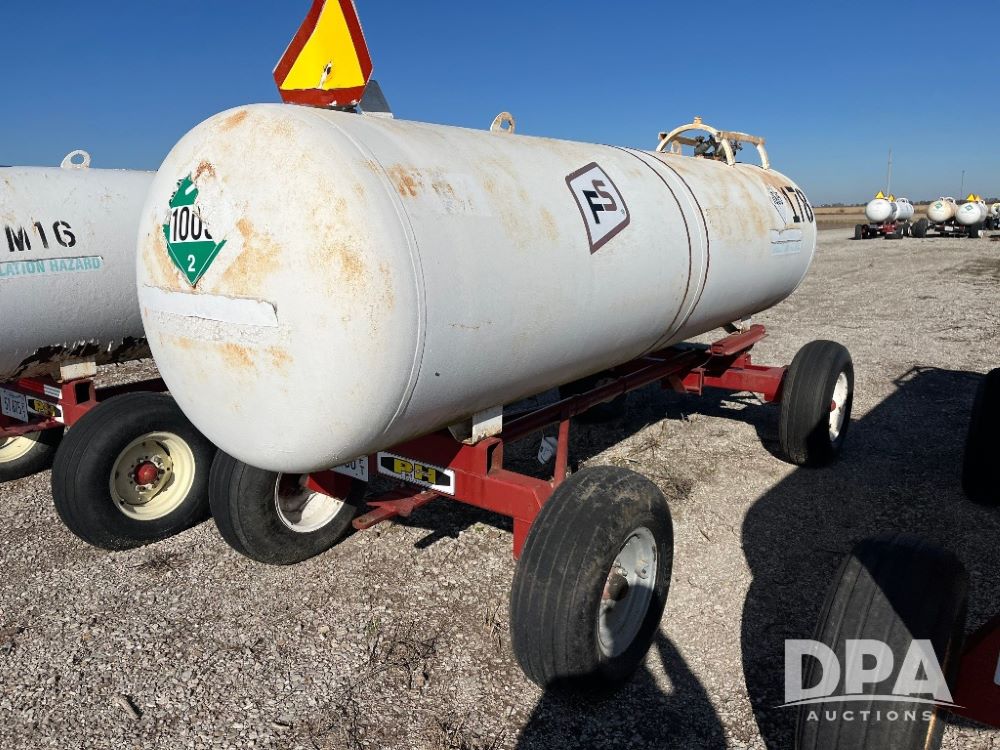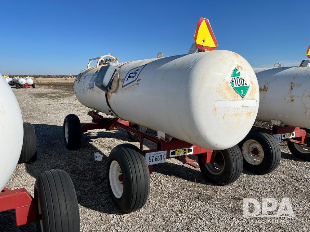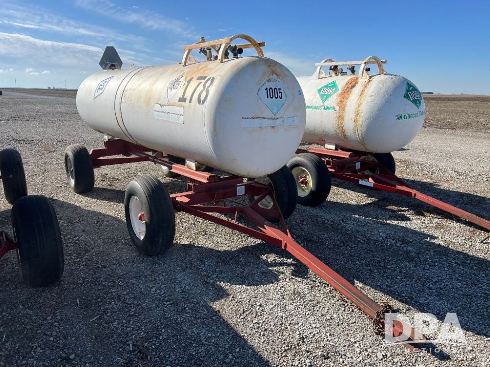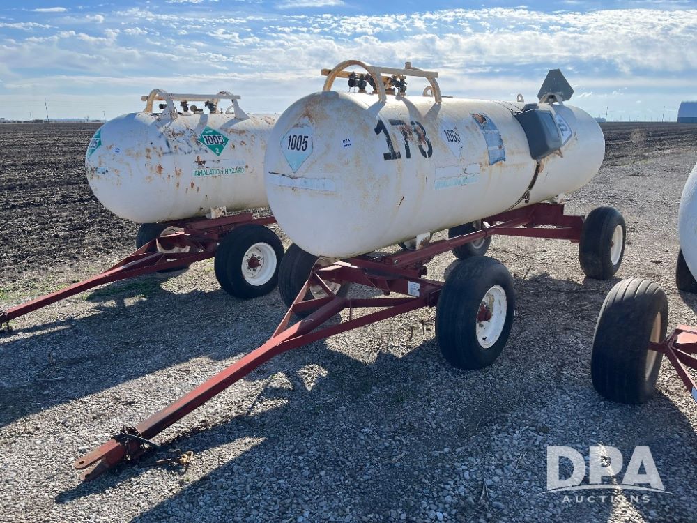 NH3 Nurse Tank (JN3348), 1,000 gallon NH3 nurse tank, top front fill, running gear, poly water tank, data plate, 11L-15 tires.