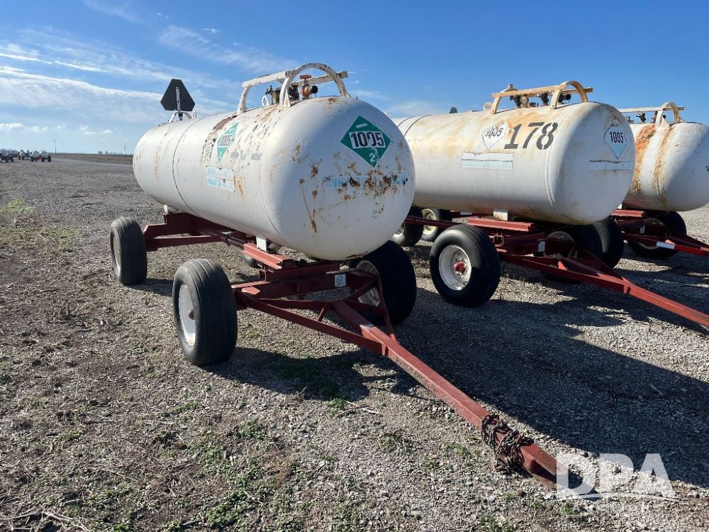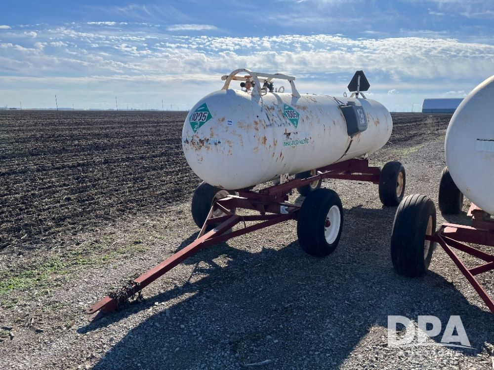 NH3 Nurse Tank (JN3349), 1,000 gallon NH3 nurse tank, top front fill, running gear, poly water tank, data plate, 11L-15 tires.
