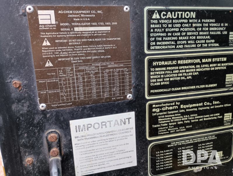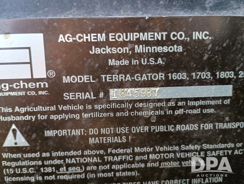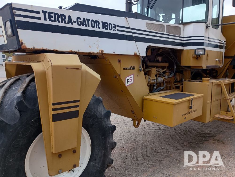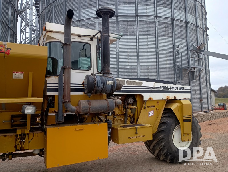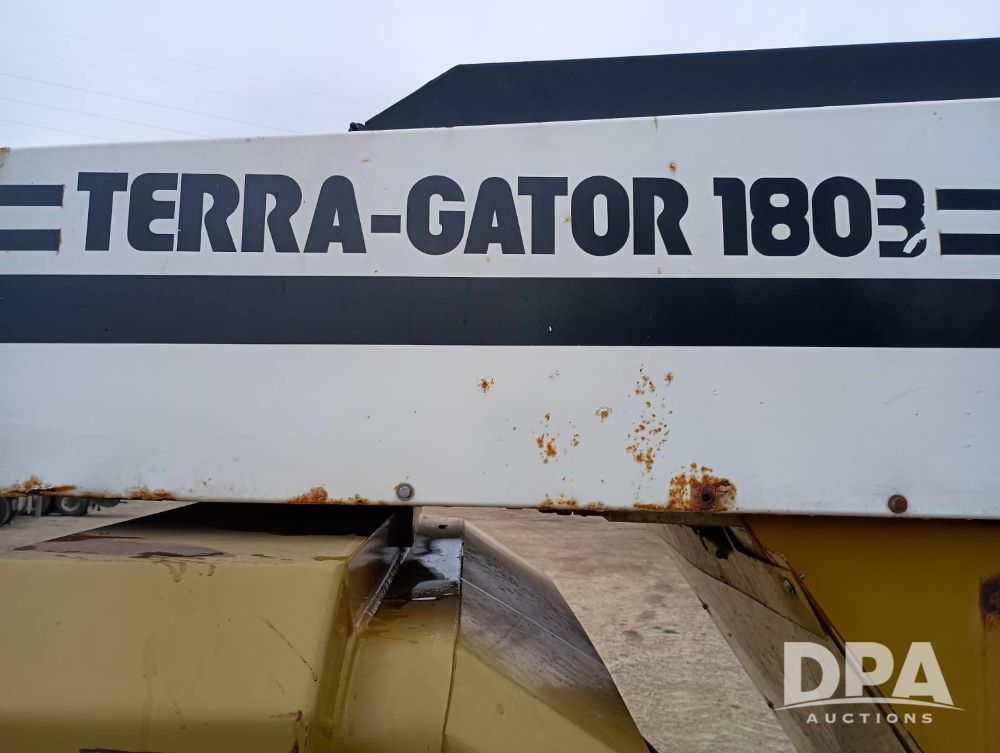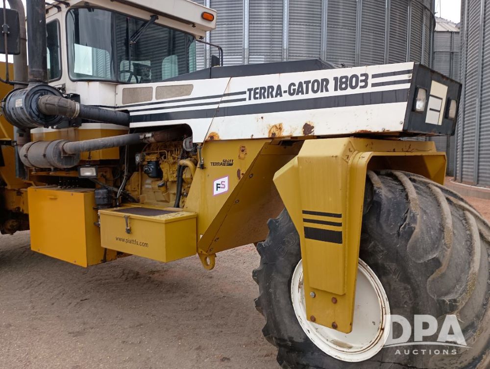 1997 Terra Gator 1803 Dry Spreader Machine (PD5342), John Deere diesel engine, Terra Shift transmission (new transmission 1000 hours ago), air conditioning, heat, AM/FM radio, New Leader 3020 G4 dry spreader box, Trimble light bar, Mark IV control monitor, good floater tires, 7,429 hours.