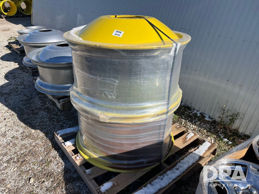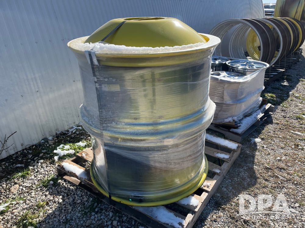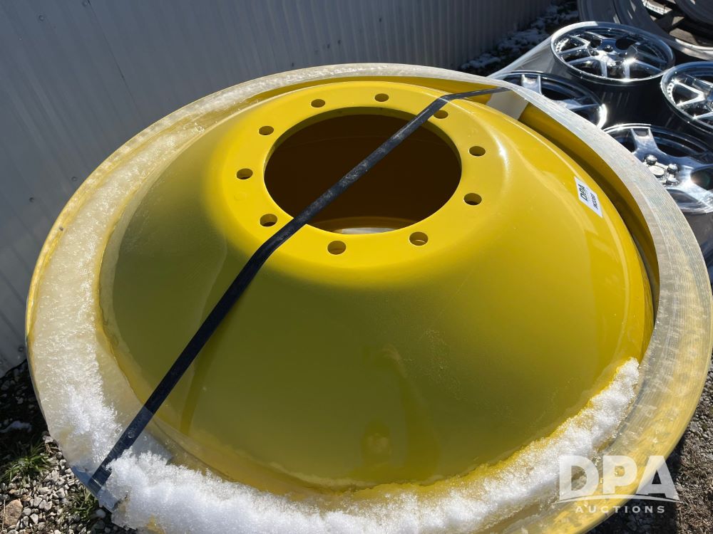 NEW (2) 18x38 Rims (JN3360), NEW (2) 18x38 ten hole JD Yellow (11" pilot hole).