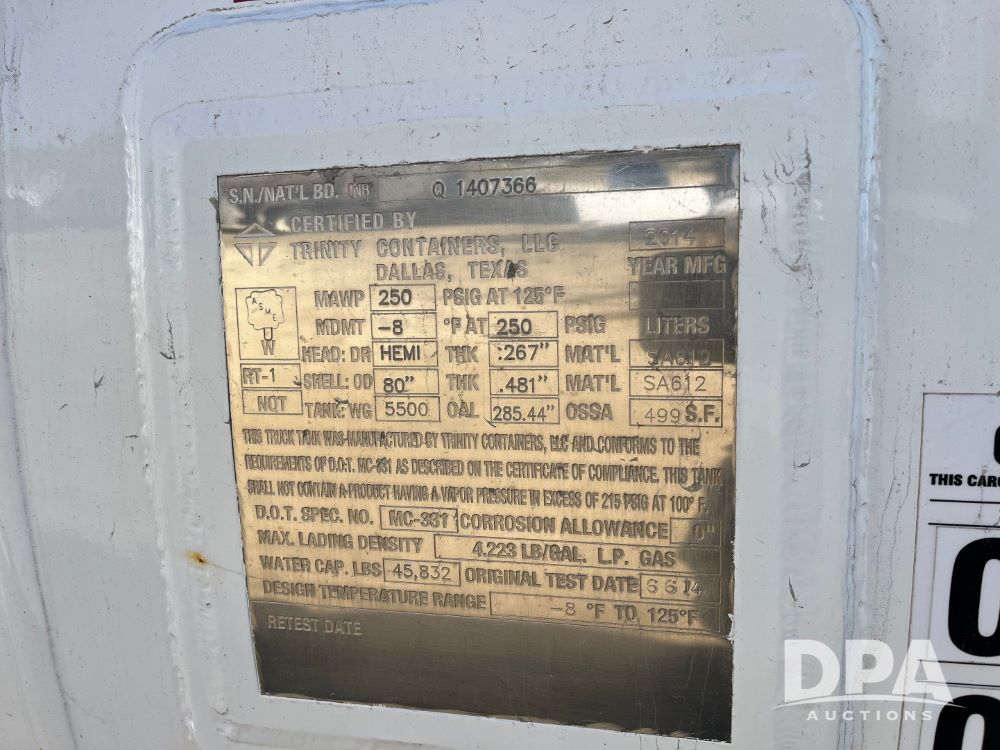 2015 Freightliner LP Truck (JN3387, Unit 1461), Cummins diesel engine, Allison automatic transmission, air conditioning, heat, Am/Fm radio, cruise control, power windows & locks, Digital TFT LCD monitor, tandem axle, full screw, air ride suspension, 2014 Trinity 5,500 gallon LP tank, MAWP 250, MDMT-8, Head: DR HEMI, THK .267", Shell: OD 80", THK .481", OAL 285.44", National Board # & S/N Q1407366, MEC Accu-Max tank volume gauge, LectroCount LCR-II meter, electric hose reel with hose, Load Locker aluminum cargo box, 245/65R22.5 front tires, aluminum rims, 11R22.5 rear tires, aluminum rims, shows 327,476 miles.