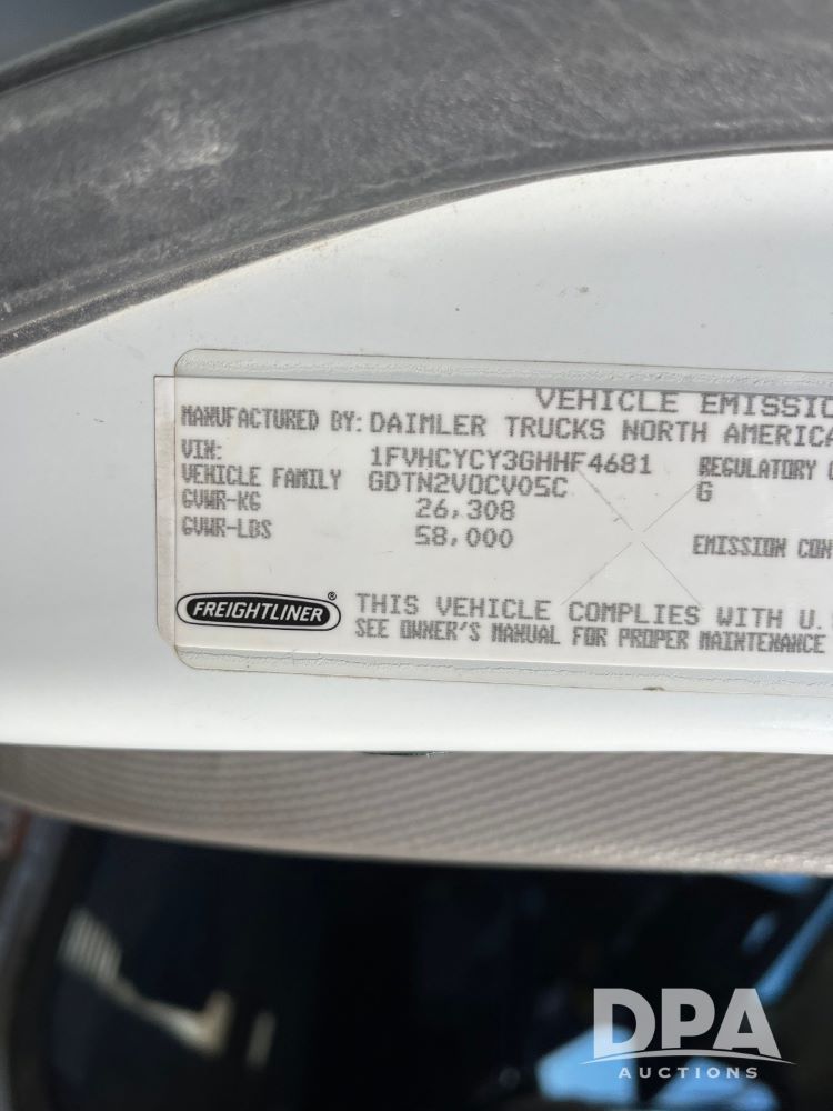 2016 Freightliner Petroleum Truck (JN3388, Unit 2374), Cummins diesel engine, Allison automatic transmission, air conditioning, heat, Am/Fm radio, cruise control, power windows & locks, tandem axle, full screw, air ride suspension, 2015 Almac Tank 4500 gallon 5 compartment (1000-1000-1000-1000-500), aluminum petroleum body (S/N 15-17550), 2 - LectroCount LCR-II meters, 2 - electric hose reels with hose, aluminum cargo box, 385/65R22.5 front tires, aluminum rims, 11R22.5 tires, shows 238,742 miles.