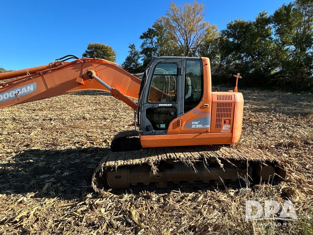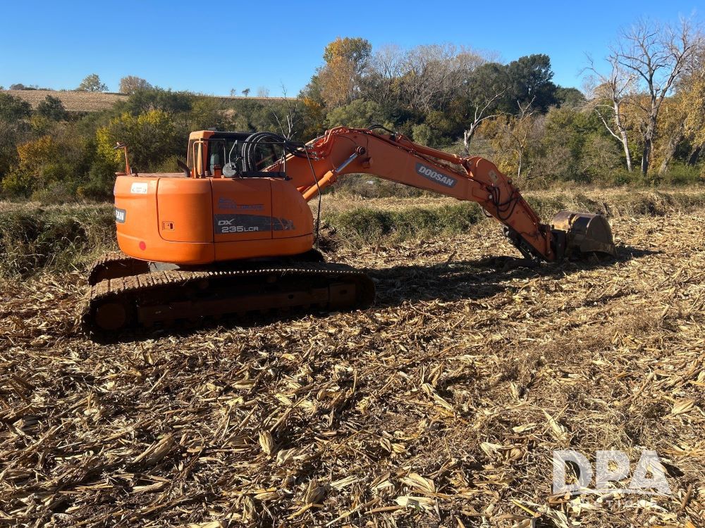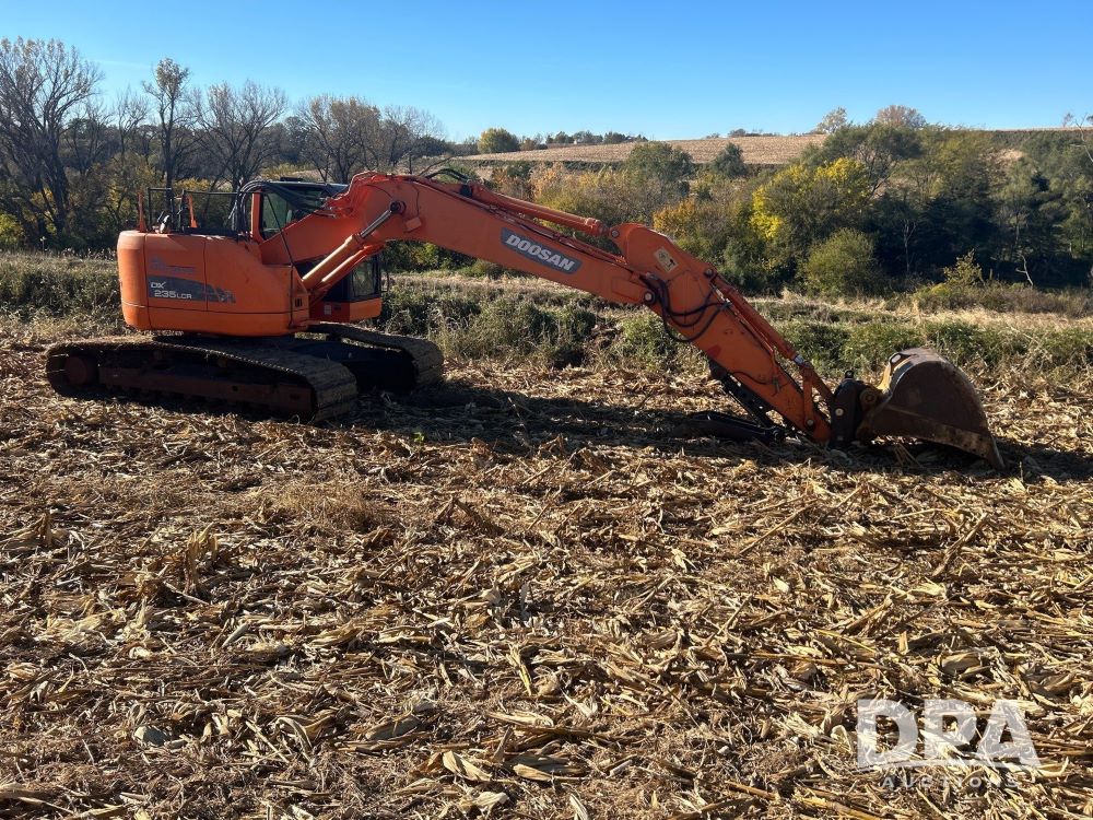 2014 Doosan DX235LCR Excavator (LS0485) 4 tier diesel engine, approx. 166 engine horsepower, cab heat and air-conditioning, quick coupler control, cat mfh12005 1.56 cubic yard bucket with hydraulic thumb, approximate operating weight 56,000 lbs, 5,815 hours.