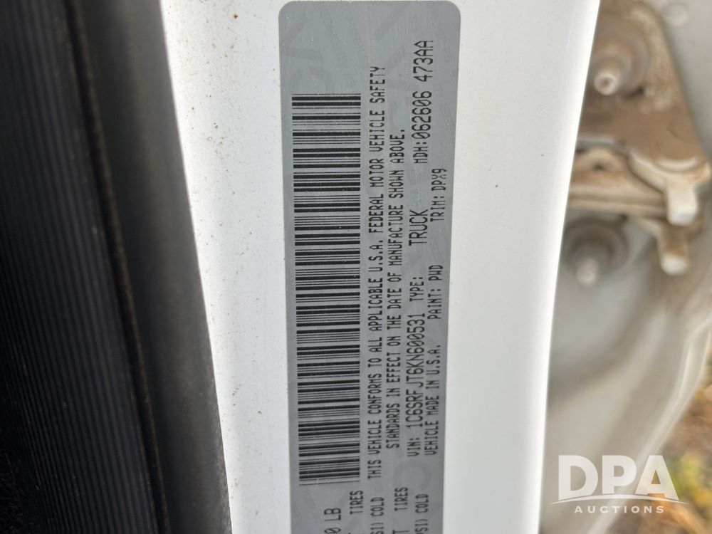 2019 RAM Laramie 1500 4x4 Pickup (GP12067), 4 door, Hemi 5.7L V8 gas engine, automatic transmission, heat, air conditioning, Am/Fm radio, leather interior, power windows, locks and mirrors, touch screen, cruise control, running boards, tow package, bed liner, 275/55R20 tires, shows 216,560 miles.