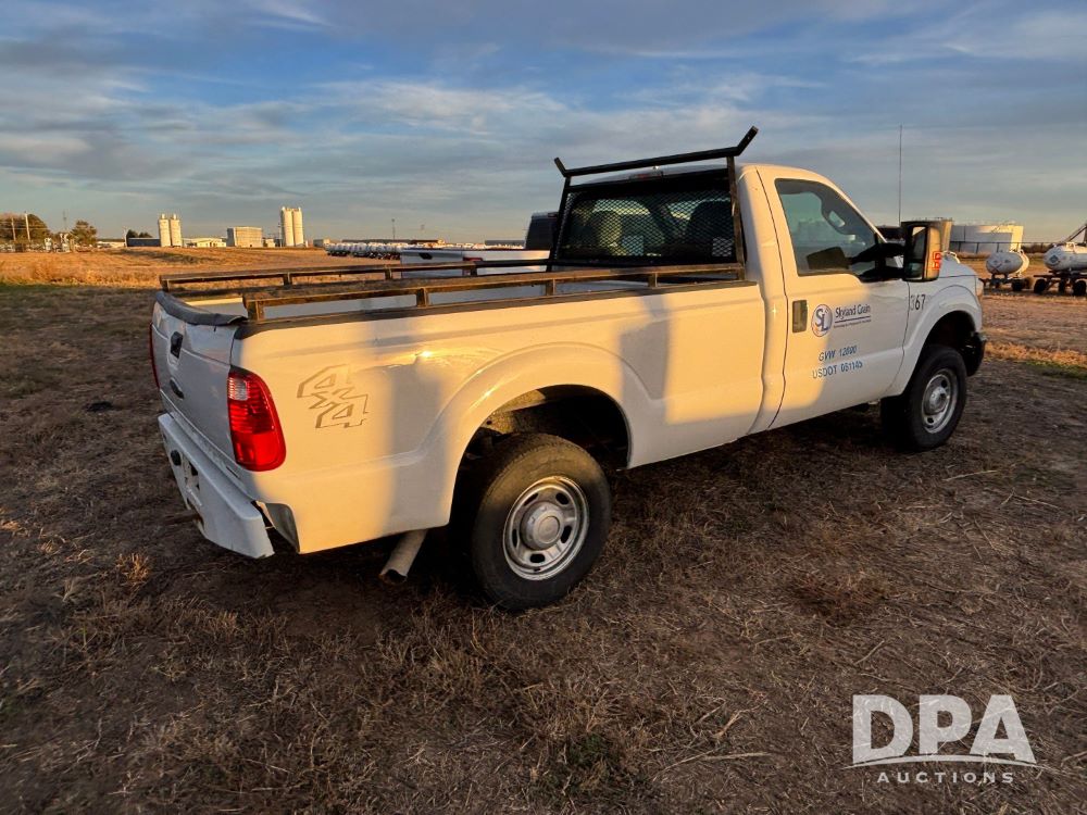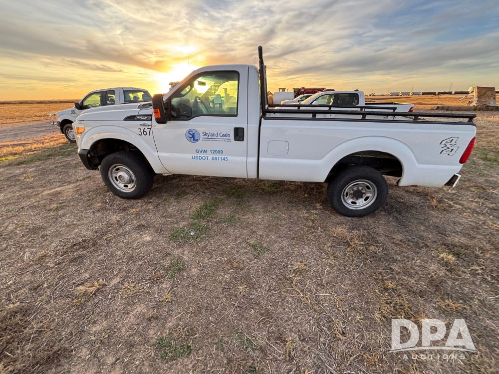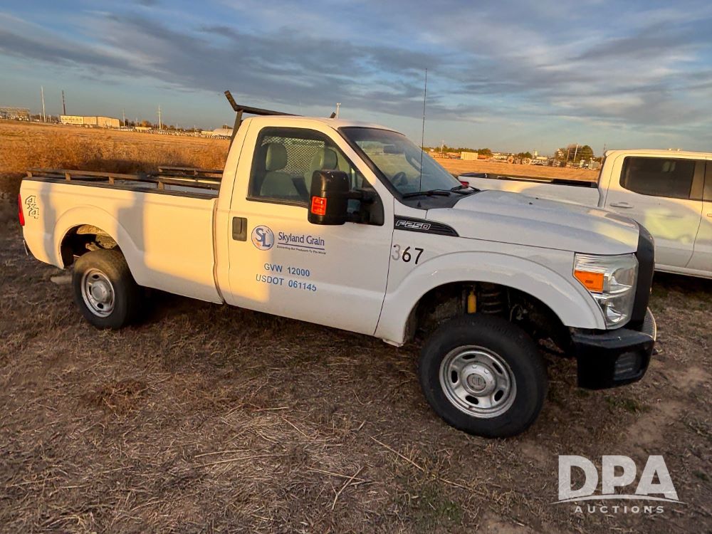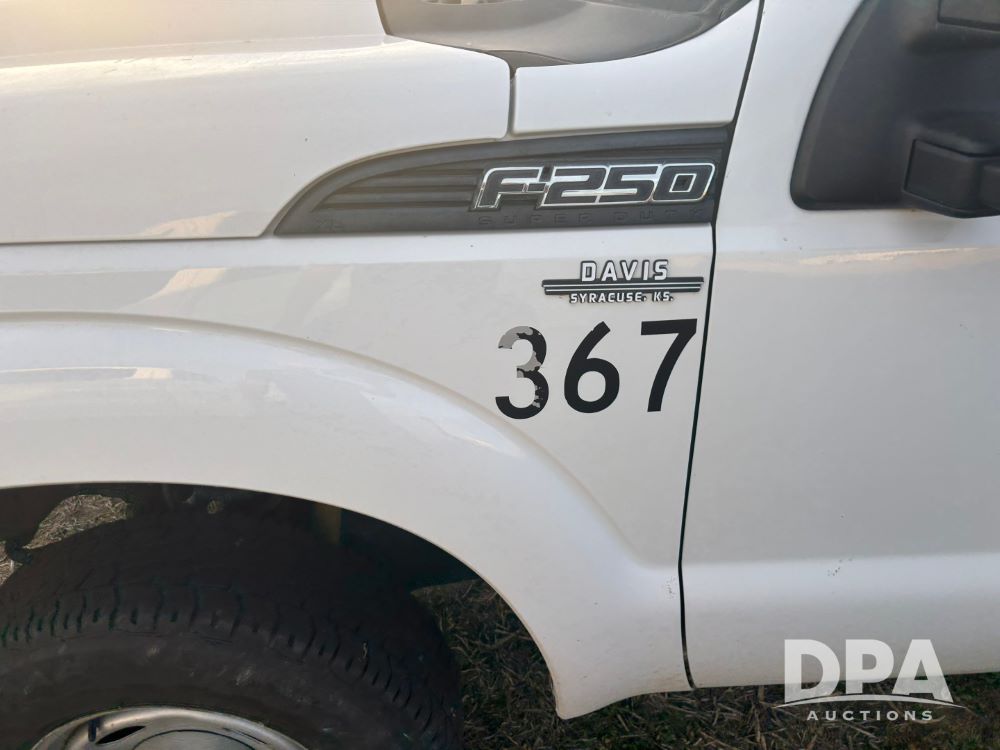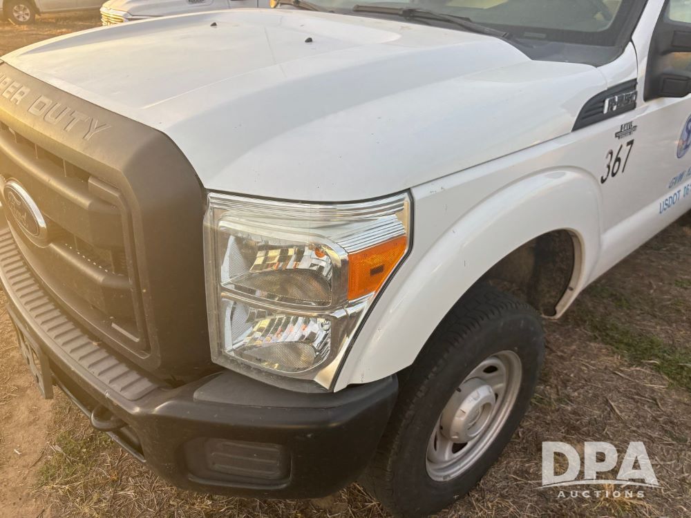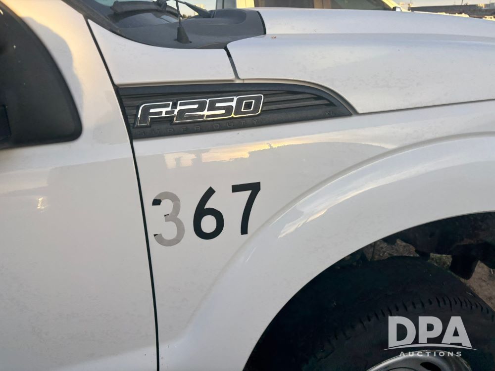 2013 Ford F-250 Super Duty 4x4 Pickup (GP12065, Unit 367), regular cab, gas engine, automatic transmission, heat, air conditioning, Am/Fm radio, power windows, locks and mirrors, Brute II ag bumper, LT245/75R17 tires, shows 139,523 miles.