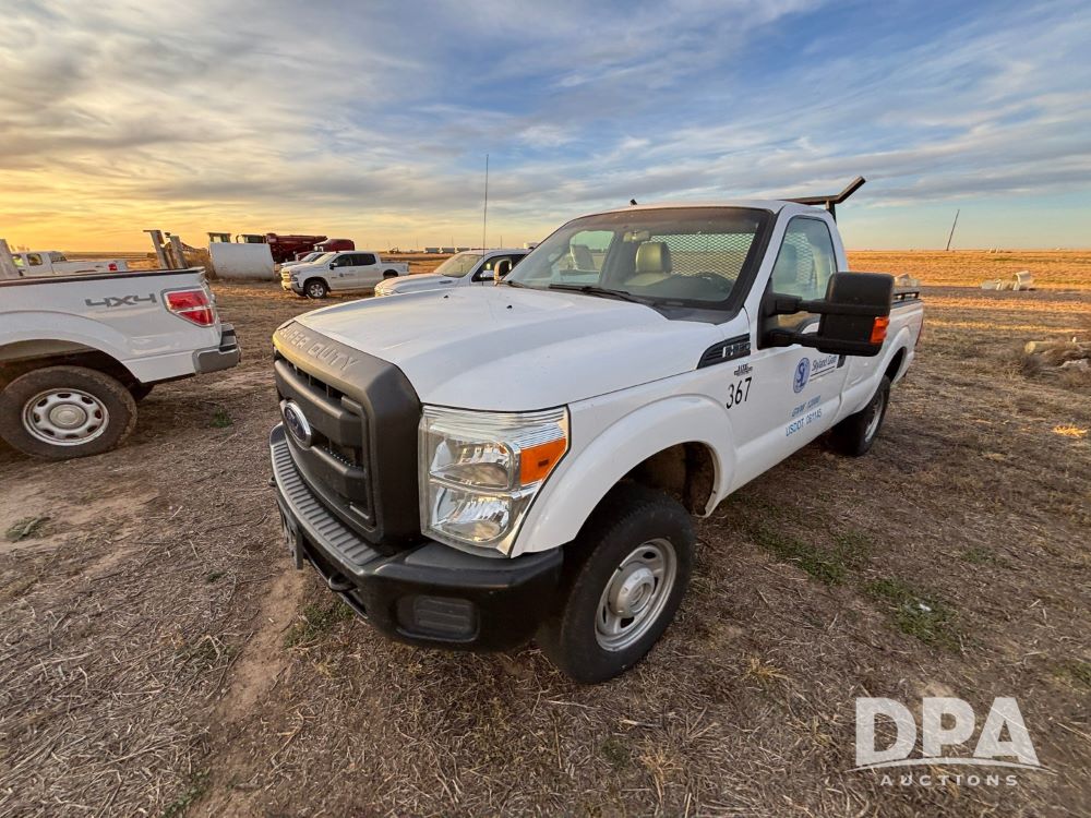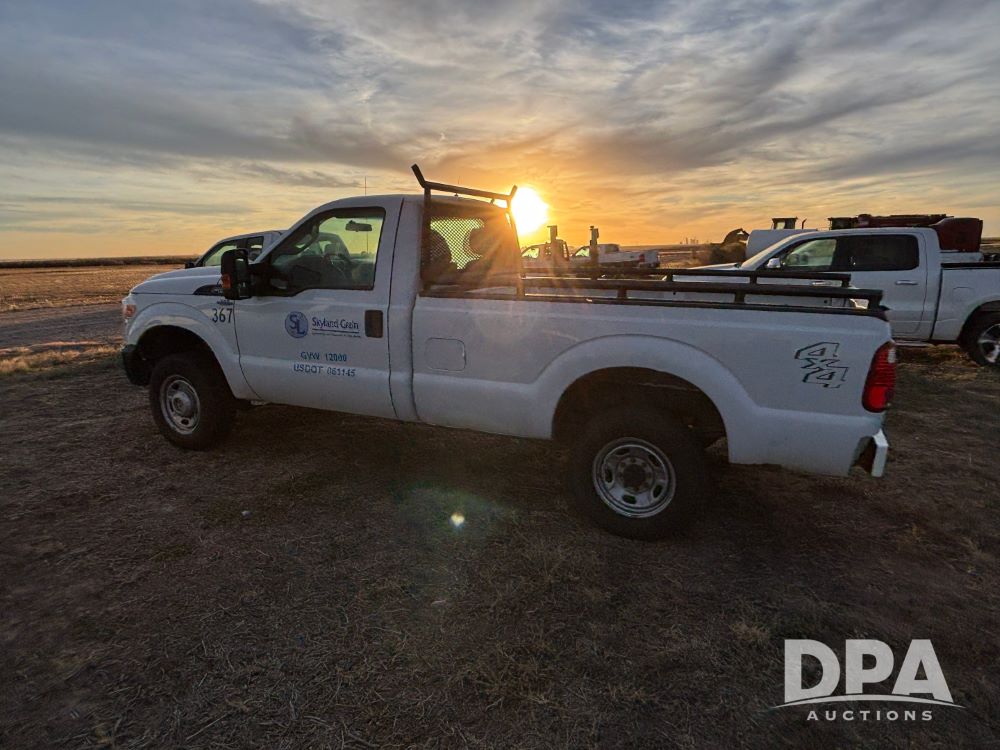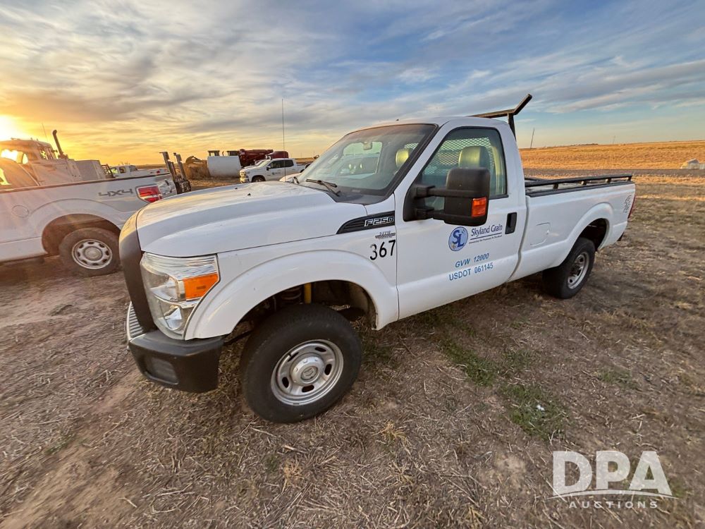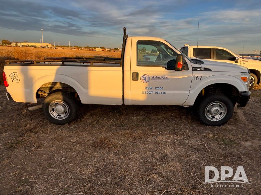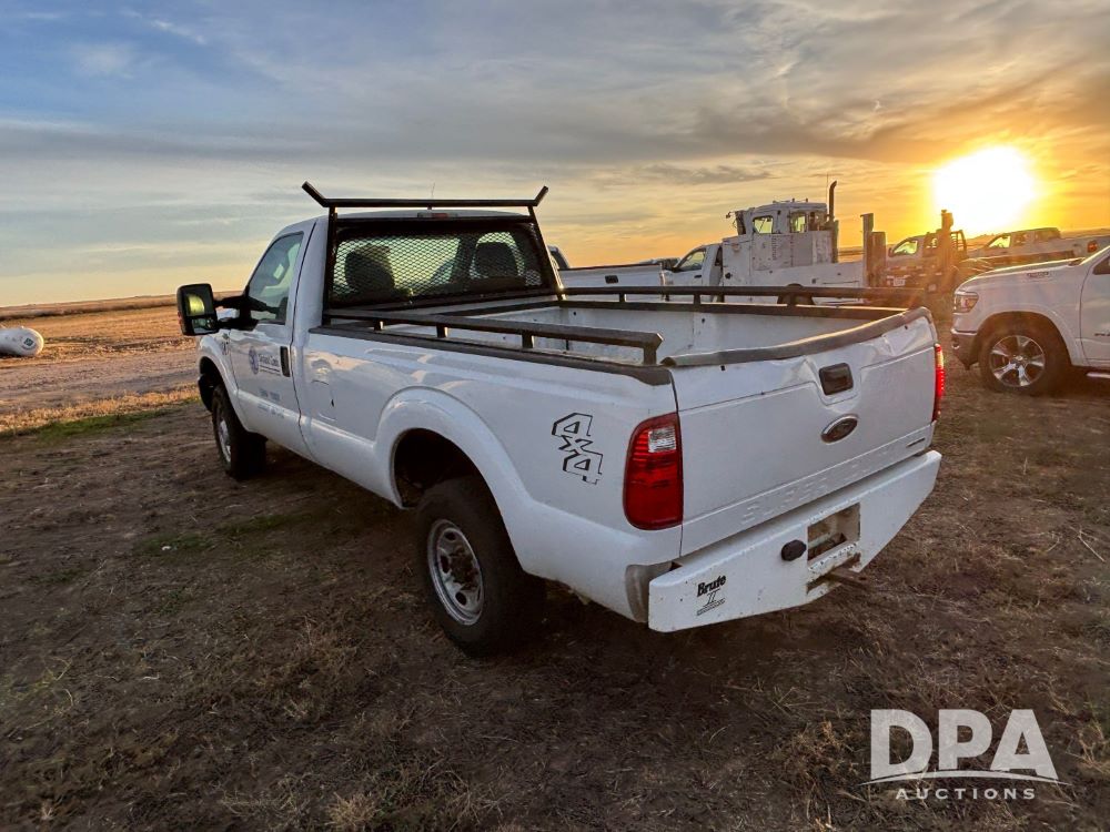 2013 Ford F-250 Super Duty 4x4 Pickup (GP12065, Unit 367), regular cab, gas engine, automatic transmission, heat, air conditioning, Am/Fm radio, power windows, locks and mirrors, Brute II ag bumper, LT245/75R17 tires, shows 139,523 miles.