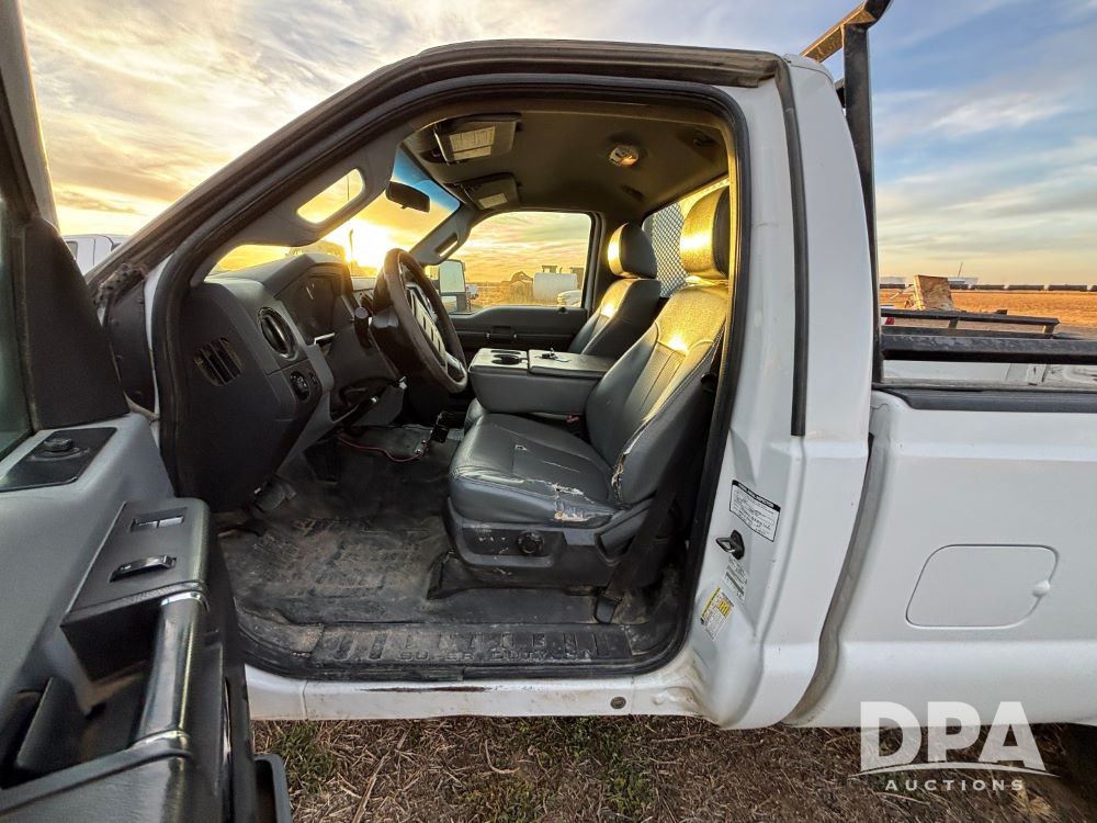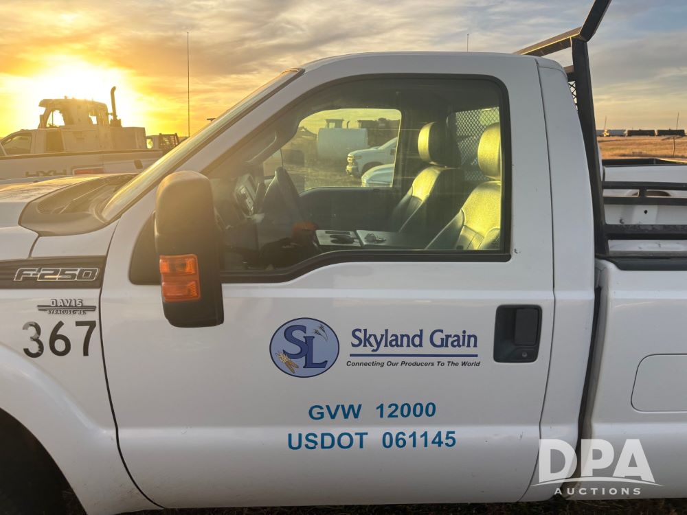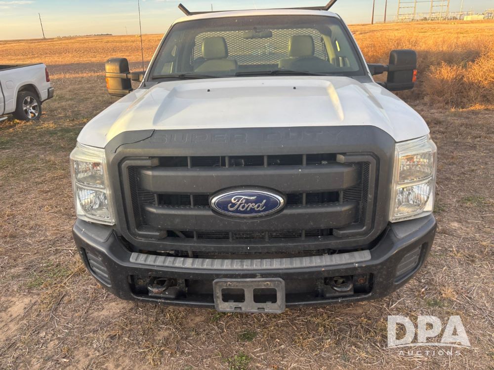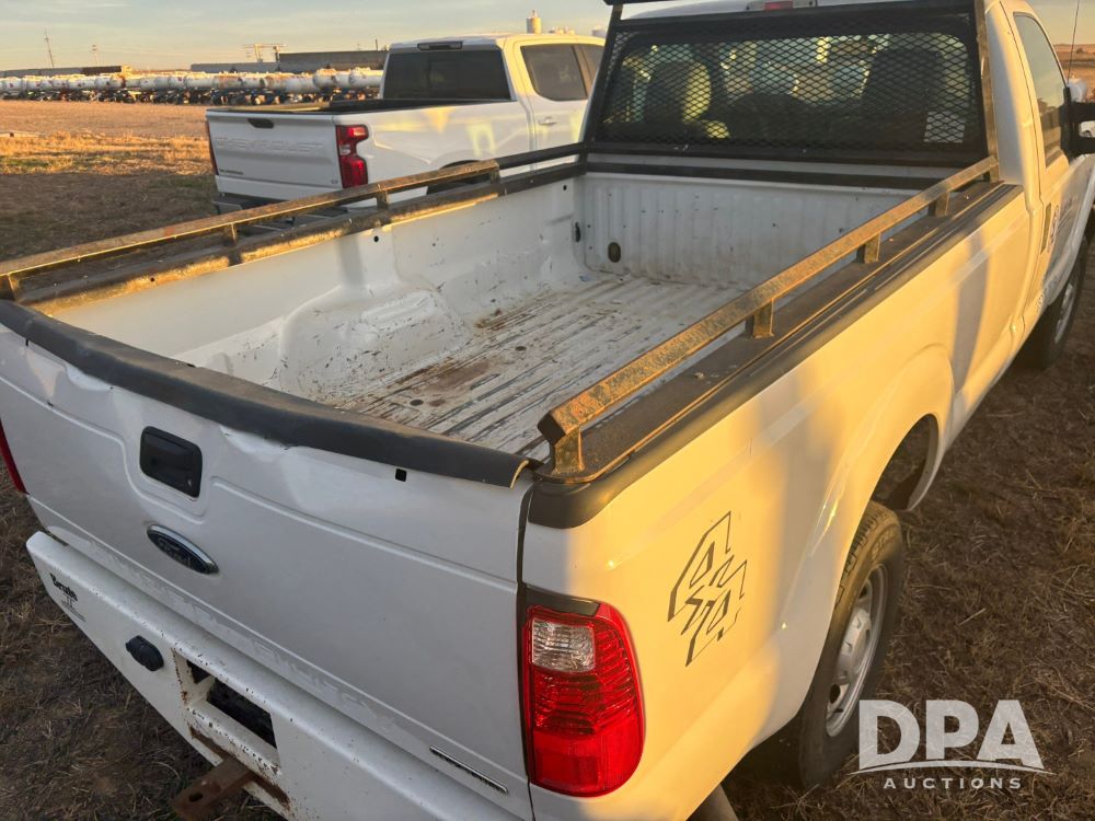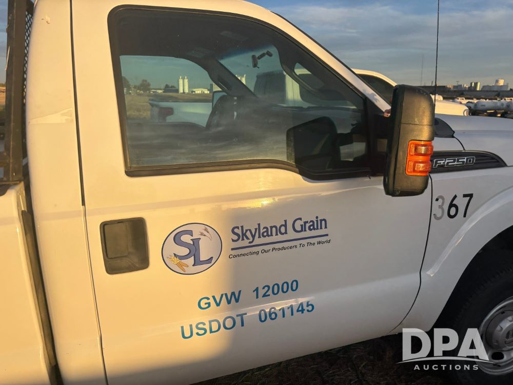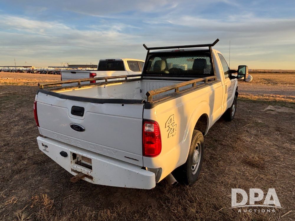 2013 Ford F-250 Super Duty 4x4 Pickup (GP12065, Unit 367), regular cab, gas engine, automatic transmission, heat, air conditioning, Am/Fm radio, power windows, locks and mirrors, Brute II ag bumper, LT245/75R17 tires, shows 139,523 miles.