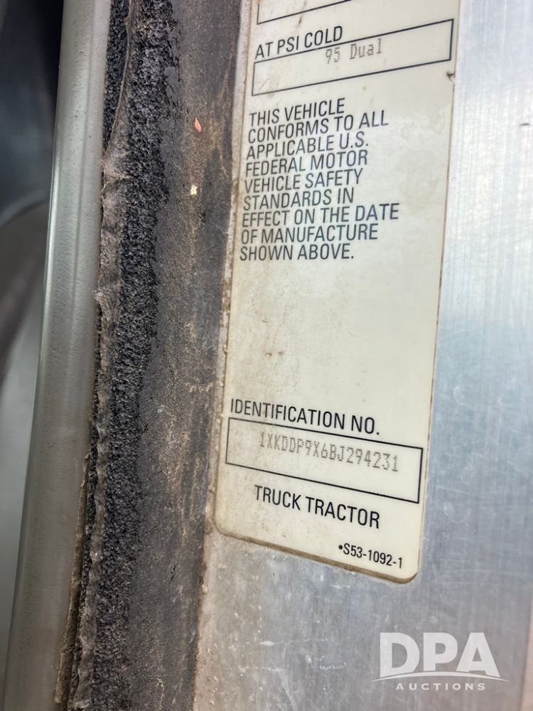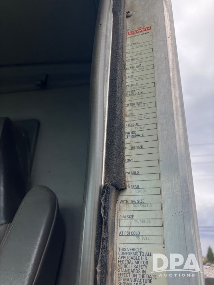 2011 Kenworth T800 Truck (PZ14182, Unit 36825), Paccar diesel engine, Eaton Fuller 10 speed transmission, air conditioning, heat, Am/Fm CD radio, cruise control, engine brake, tandem axle, full screw, 285/75R24.5 tires, aluminum rims, shows 317,903 miles.