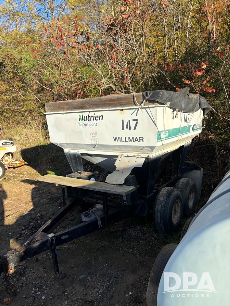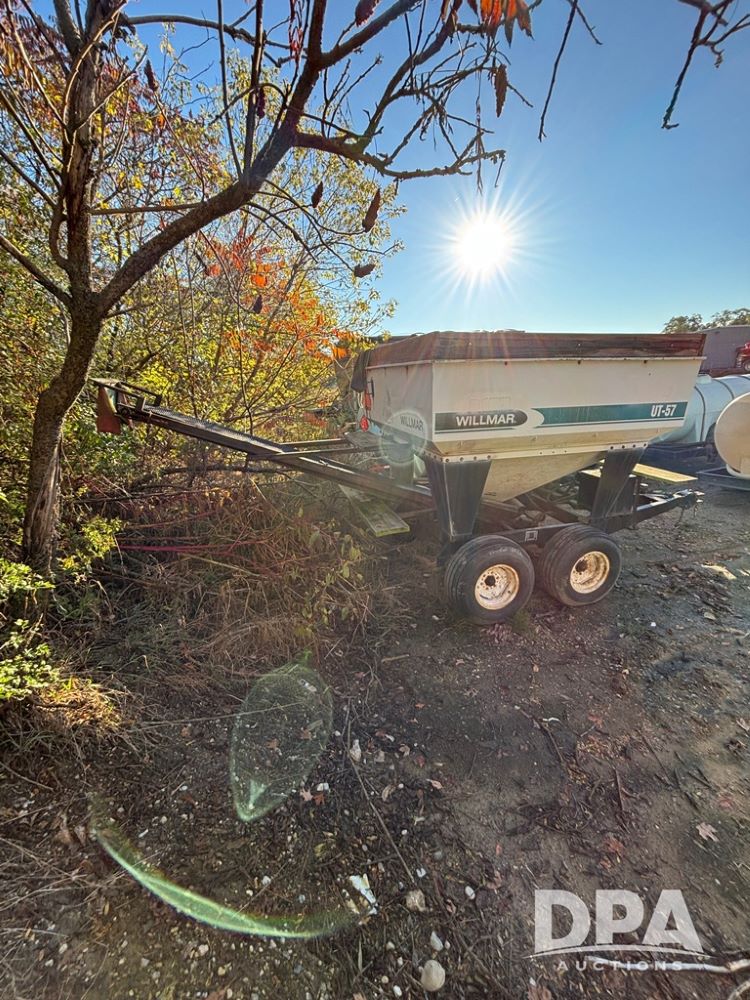 1995 Willmar Dry Tender (PZ14185, Unit 103147), 1995 Willmar UT-57 dry tender box, rear discharge conveyor, Kohler electric start gas engine, tarp, tandem axle gear, 11L-15 flotation tires.