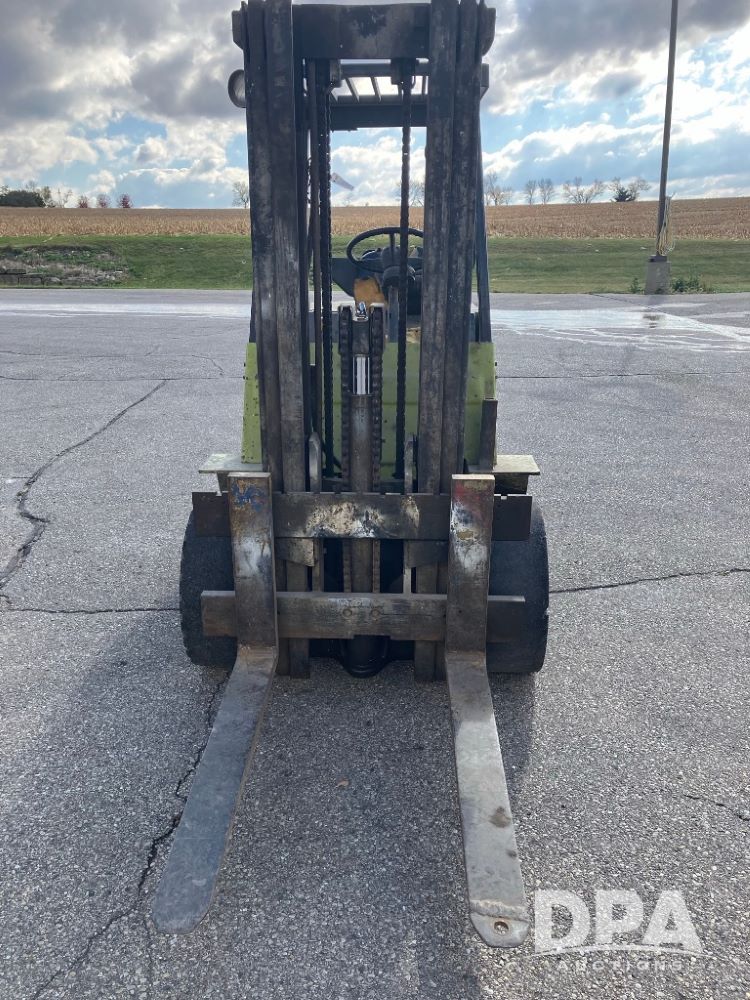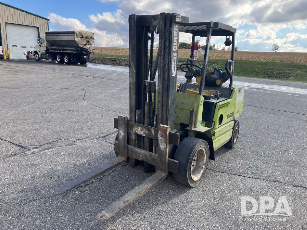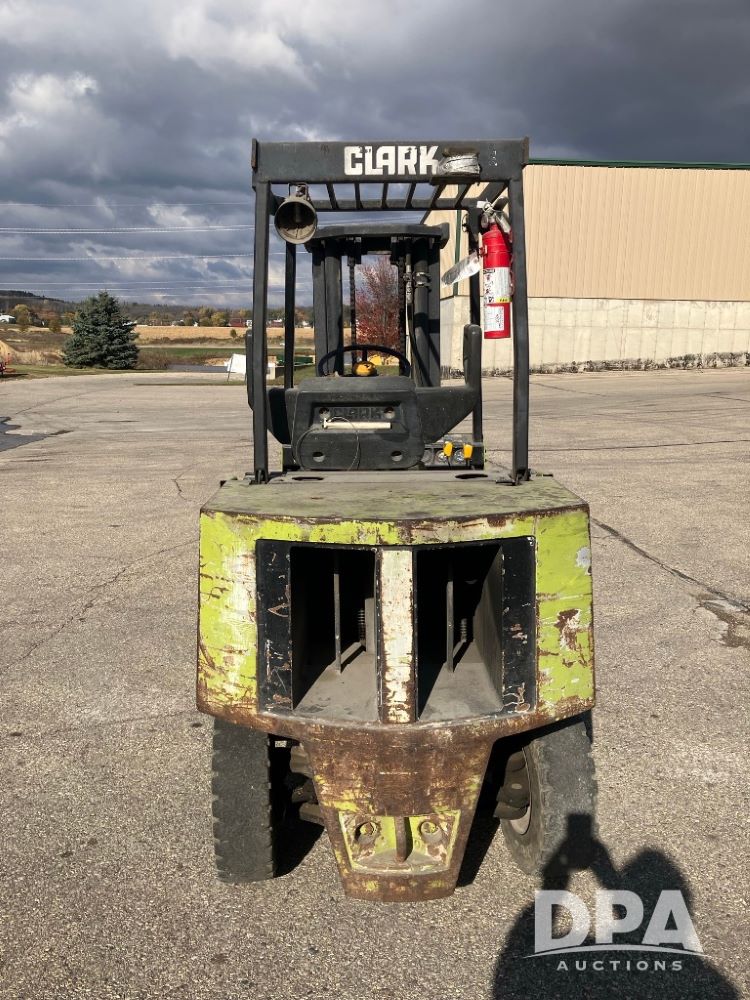 1993 Clark GPX30 Forklift (NP6209, Unit 3012), 1993 Clark Model GPX30 forklift, In-line 4 cylinder gas engine, auto trans, forks, 650-10 rear tires, 4,900 pound capacity, weight 9,721 pounds, shows 5,945 hours.