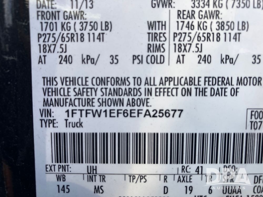 2014 Ford F-150 XLT 4x4 Pickup (NP6257, Unit 5475), 4 door, 5.0L V8 gas engine, automatic transmission, heat, air conditioning, Am/Fm radio, cloth interior, running boards, tow package, soft box cover, shows 323,560 miles.
