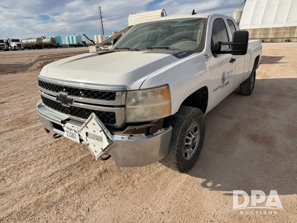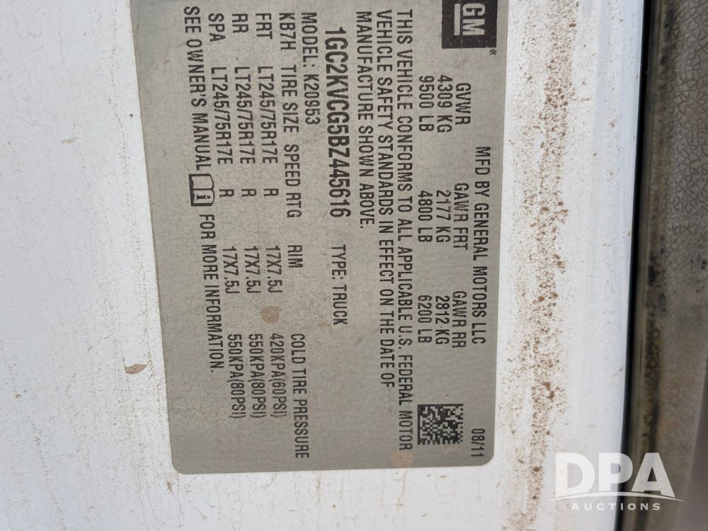 2011 Chevrolet Silverado 2500HD 4x4 Pickup (GP12106, Unit 1111), gas engine, automatic transmission, heat, Am/Fm radio, power windows, locks and mirrors, cruise control, tow package, LT265/71R17 tires, bed liner, shows 206,675 miles.